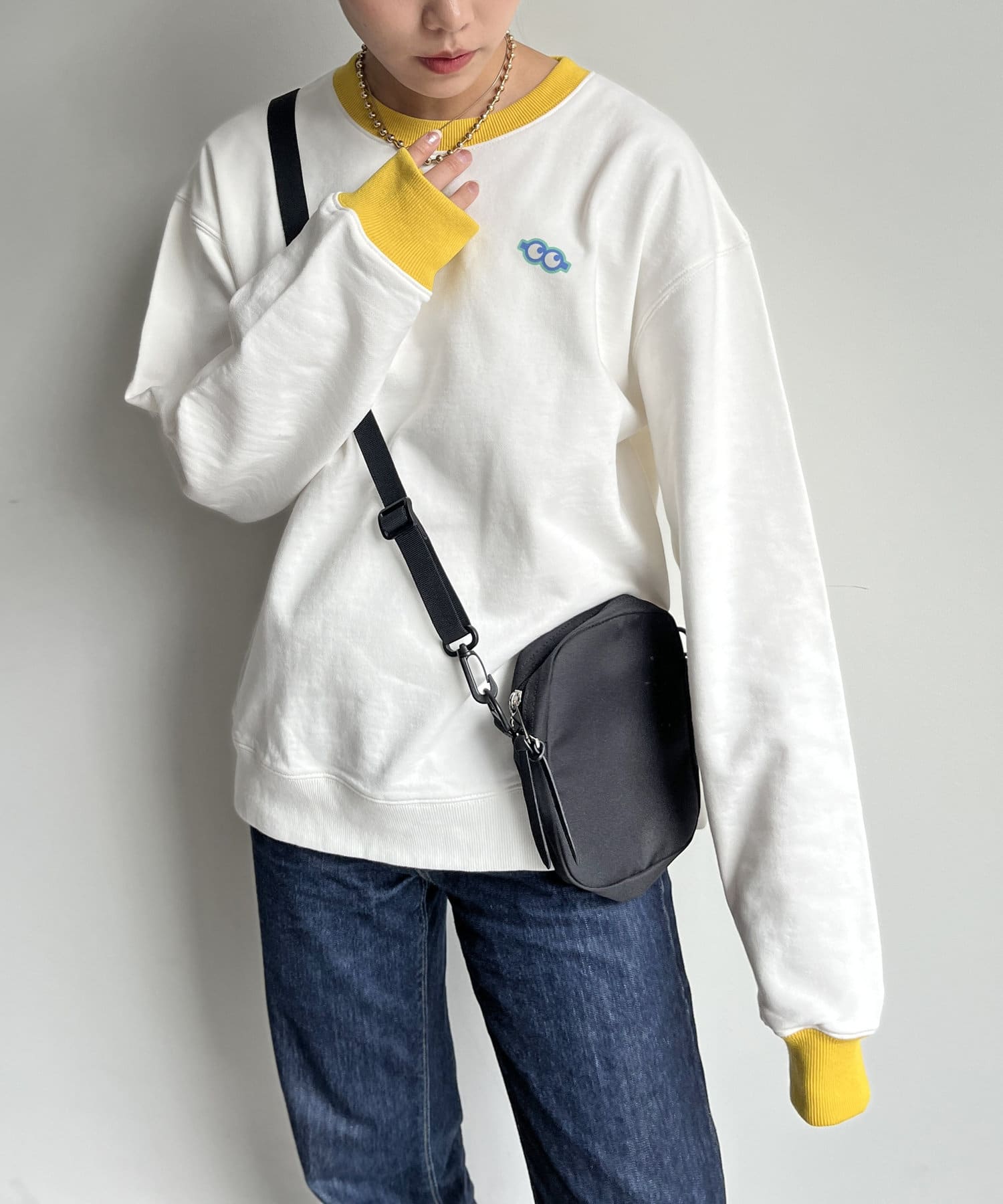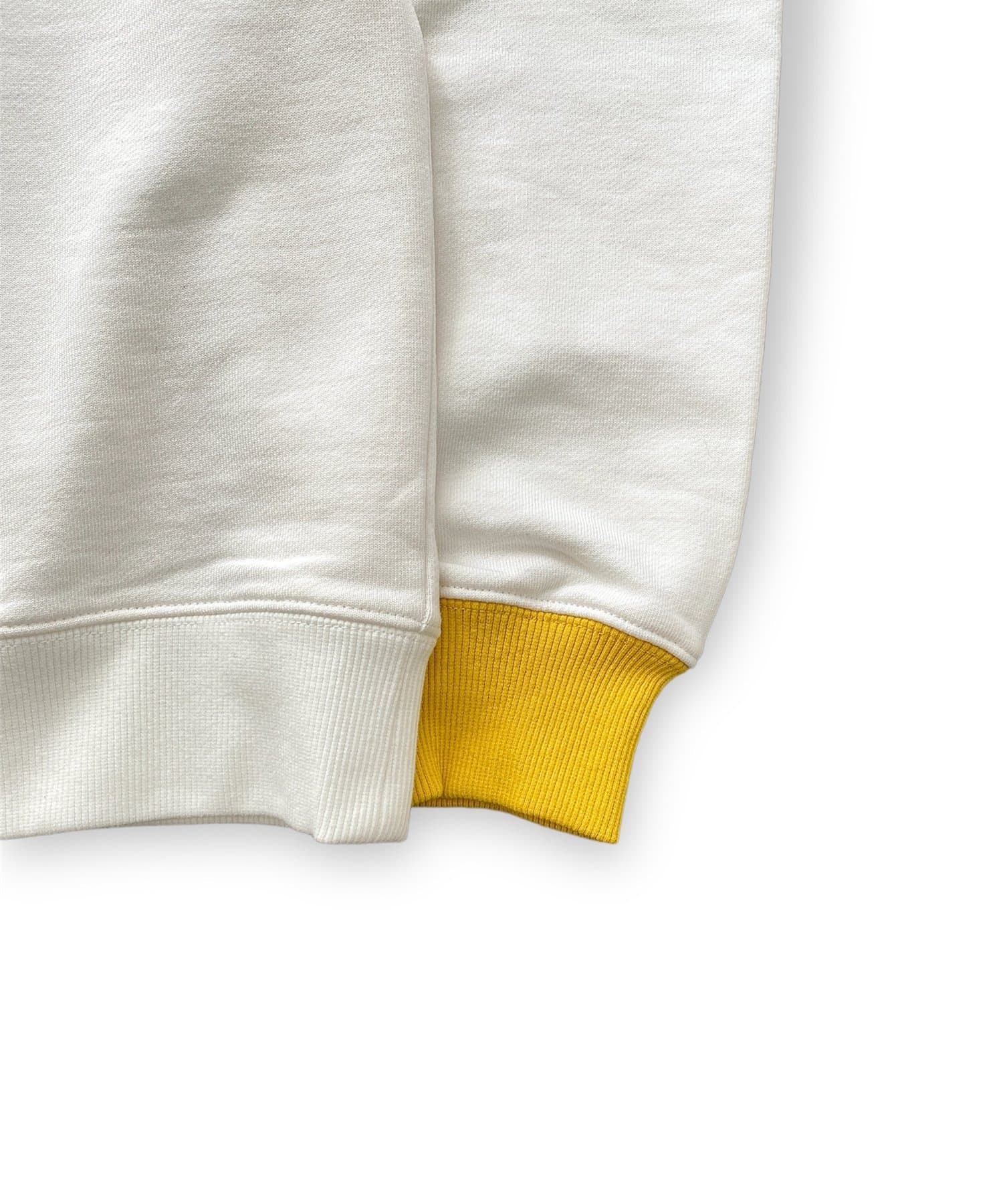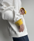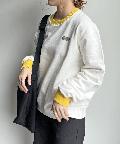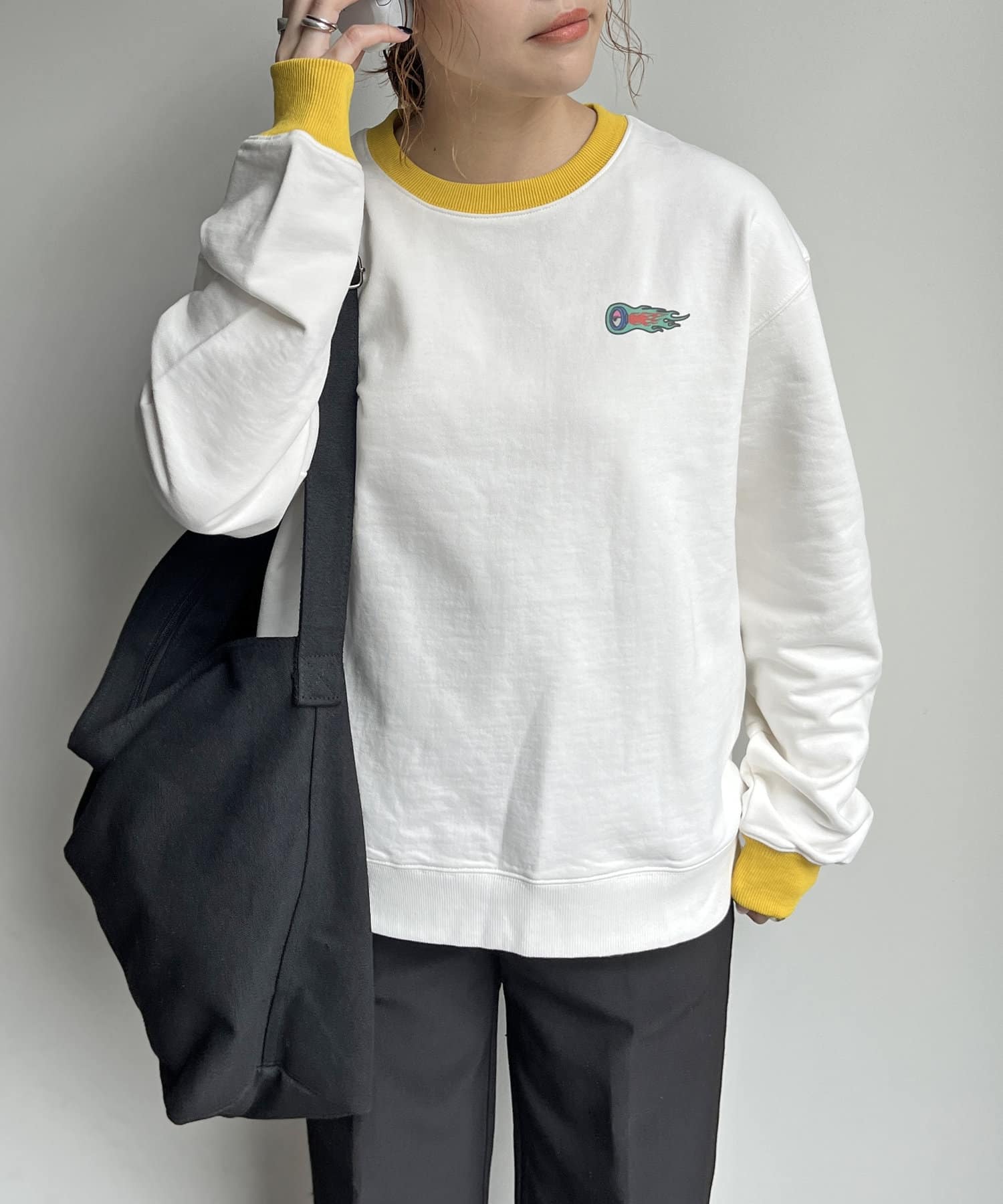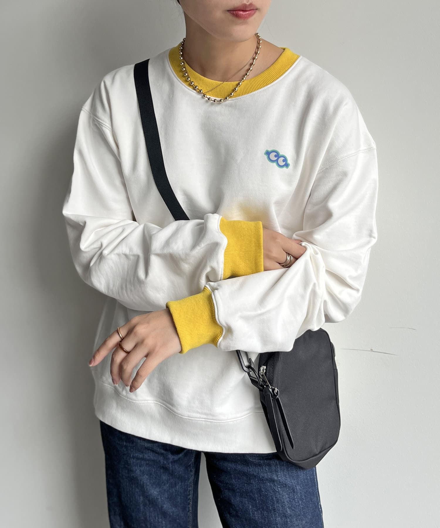 ややゆったりとしたスウェットにイエローの配色がアクセントになるスウェット。
