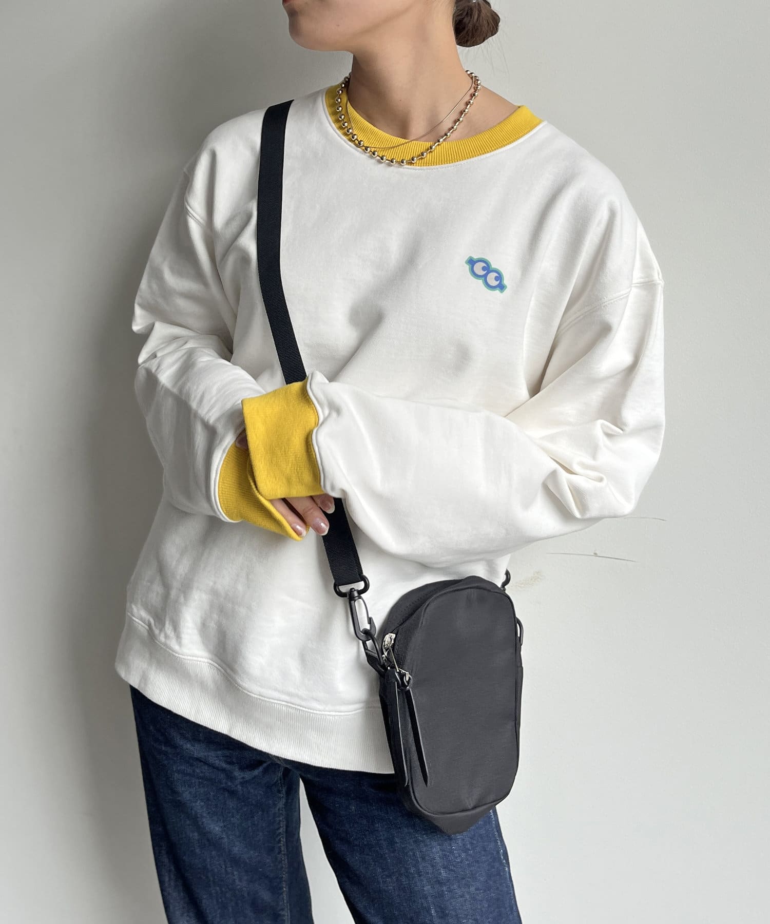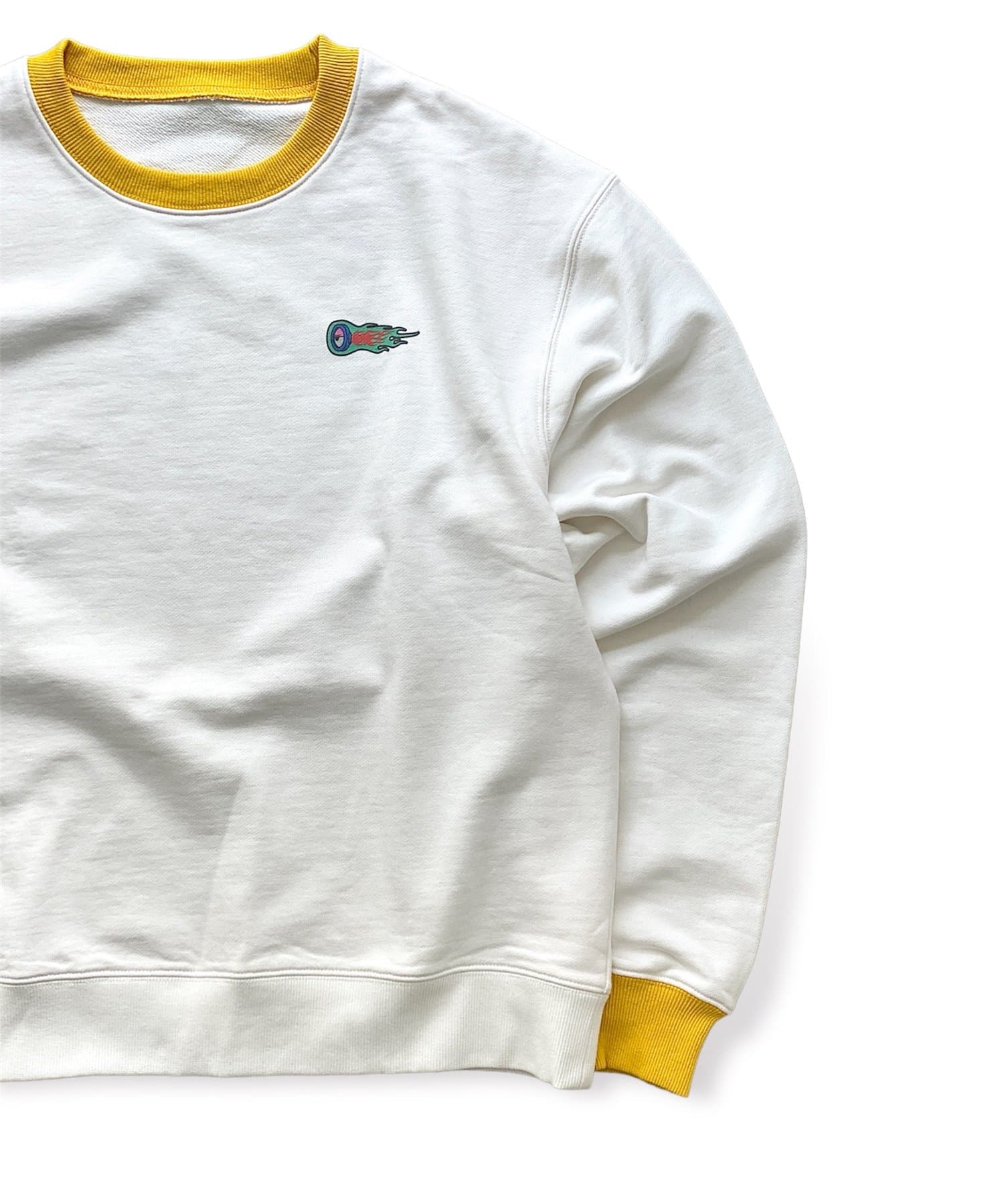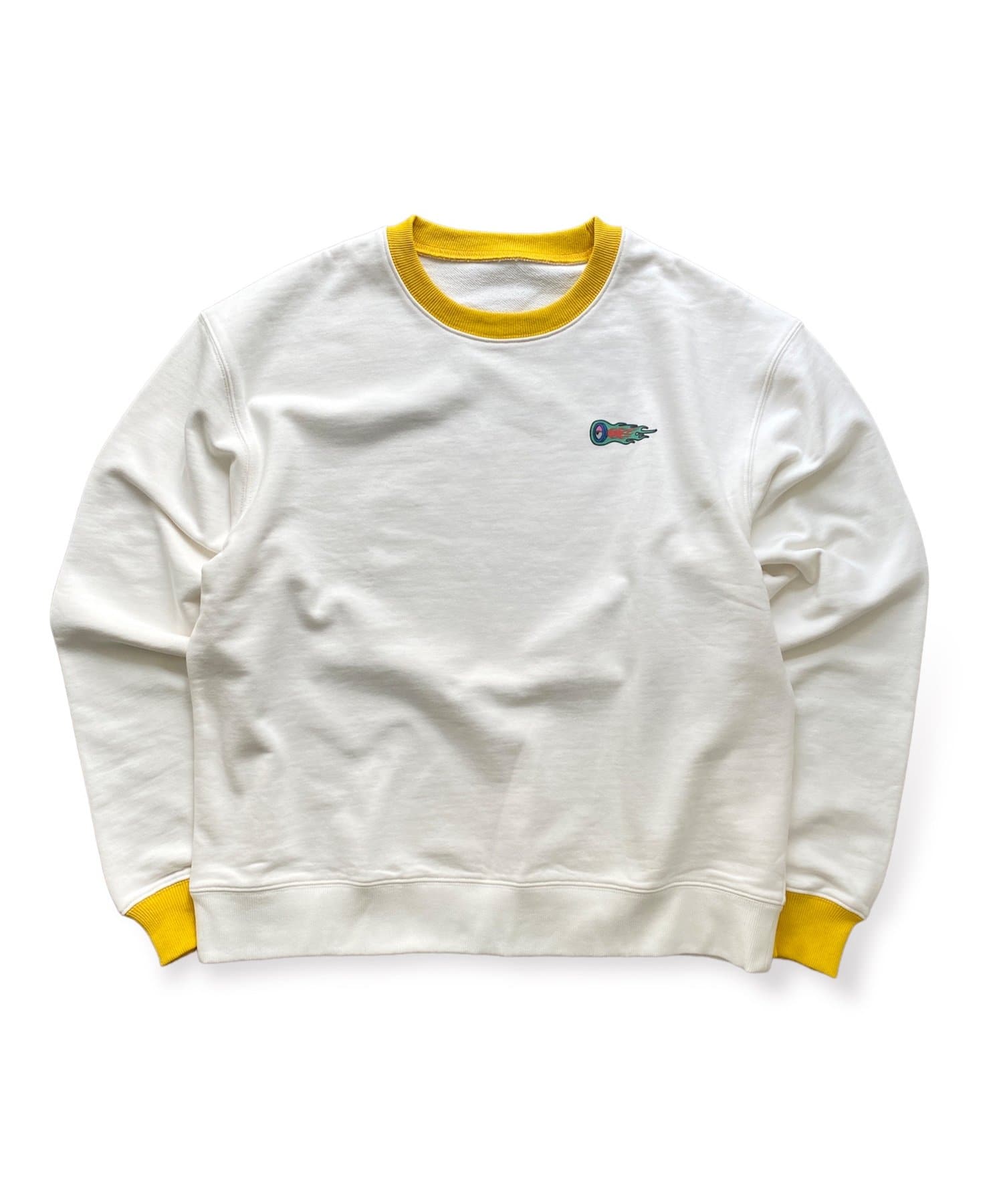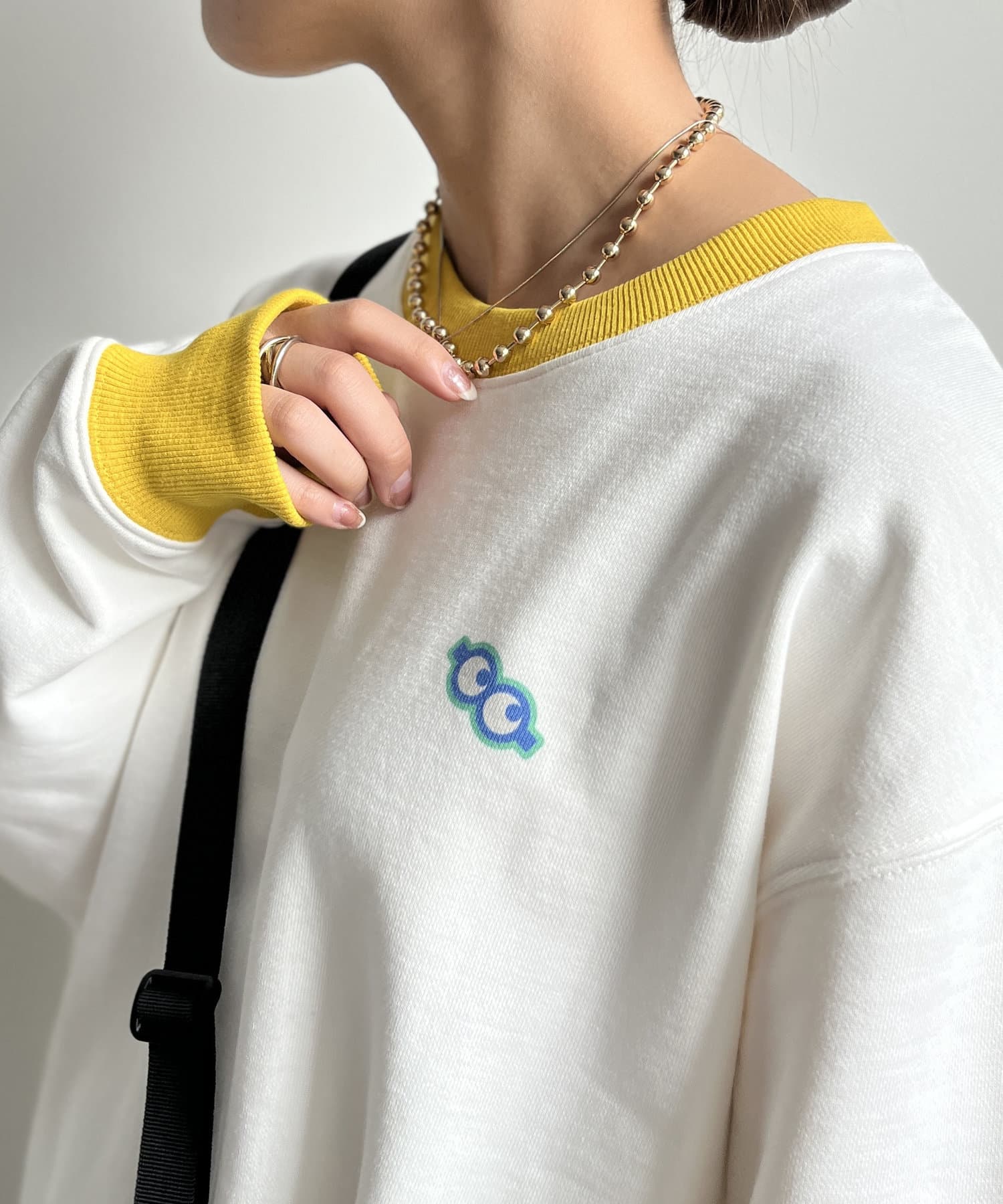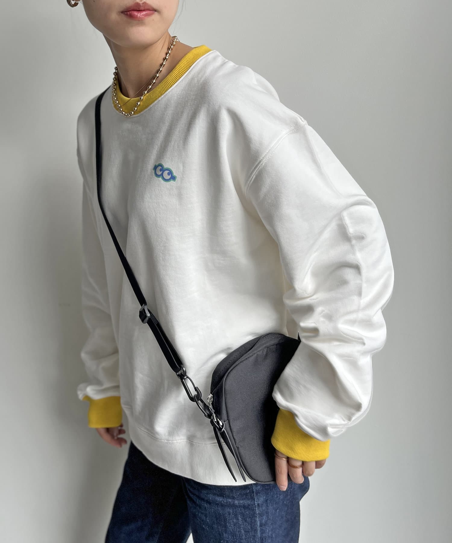 ややゆったりとしたスウェットにイエローの配色がアクセントになるスウェット。