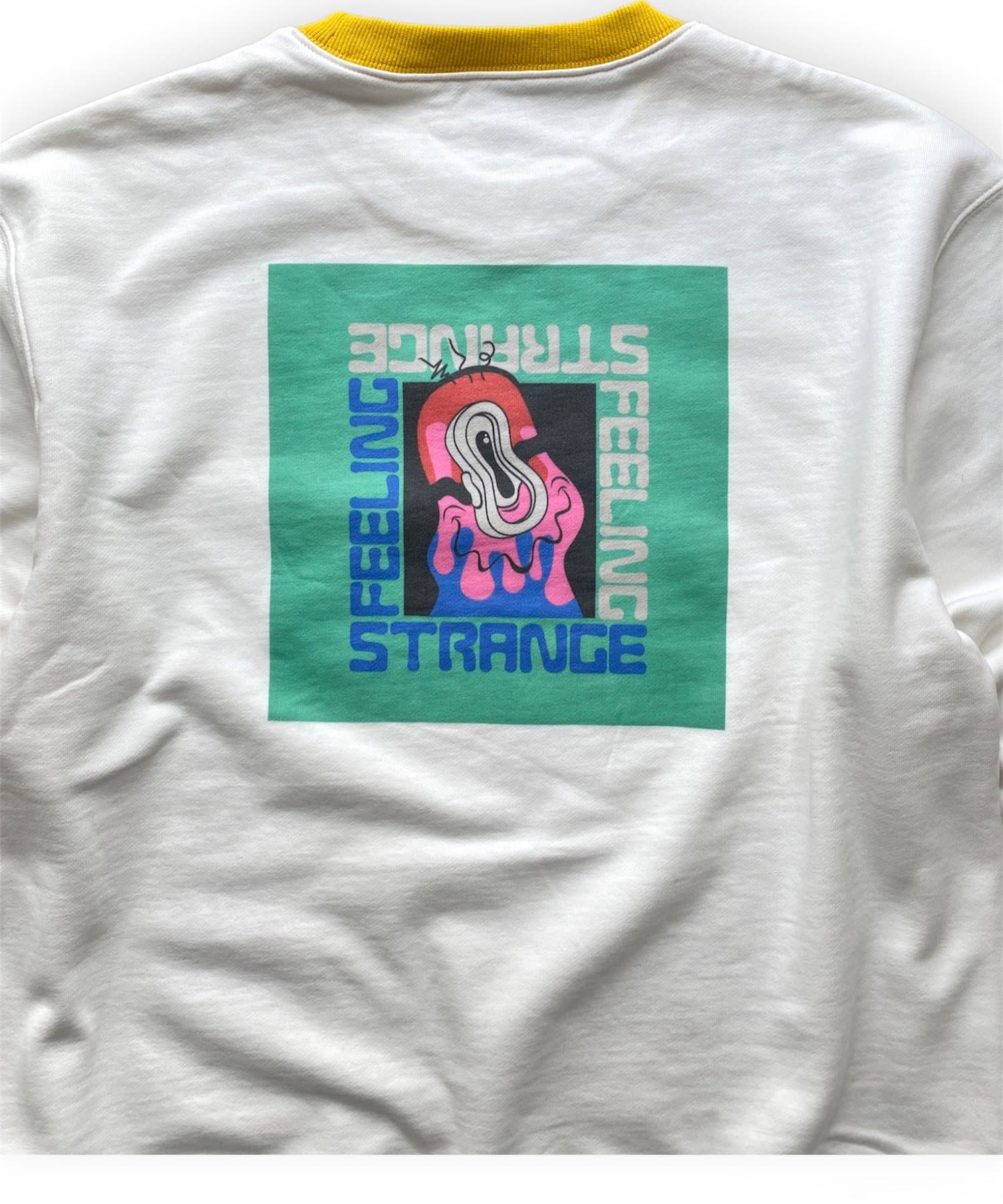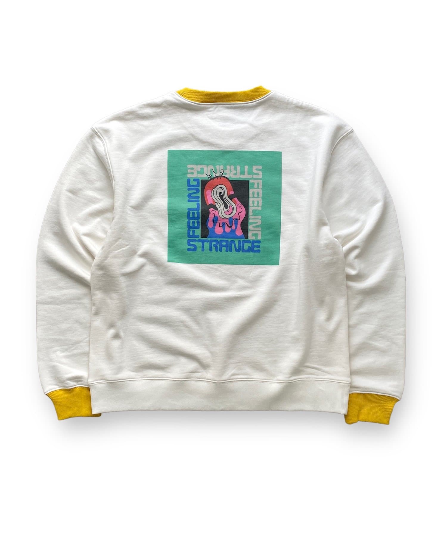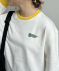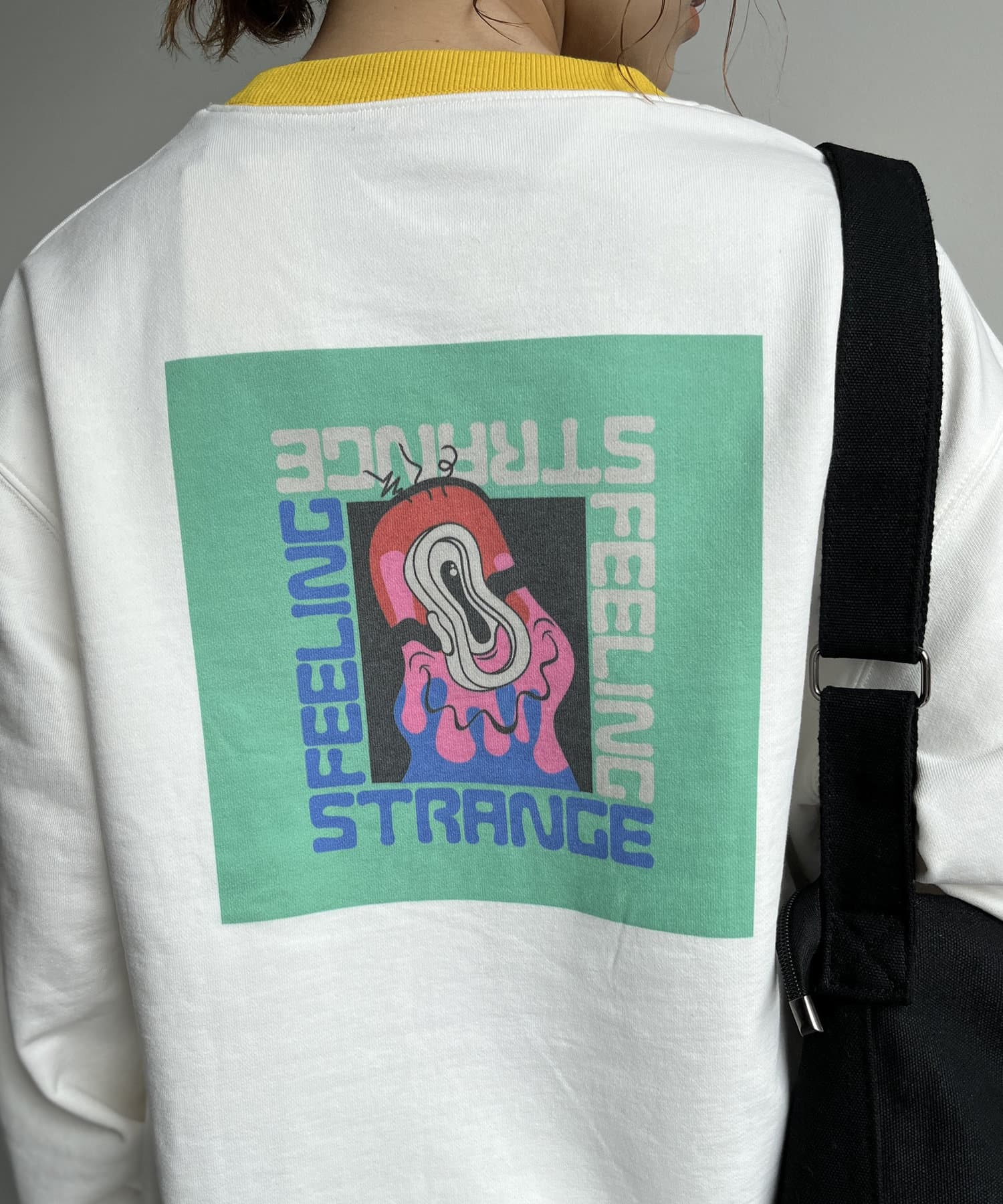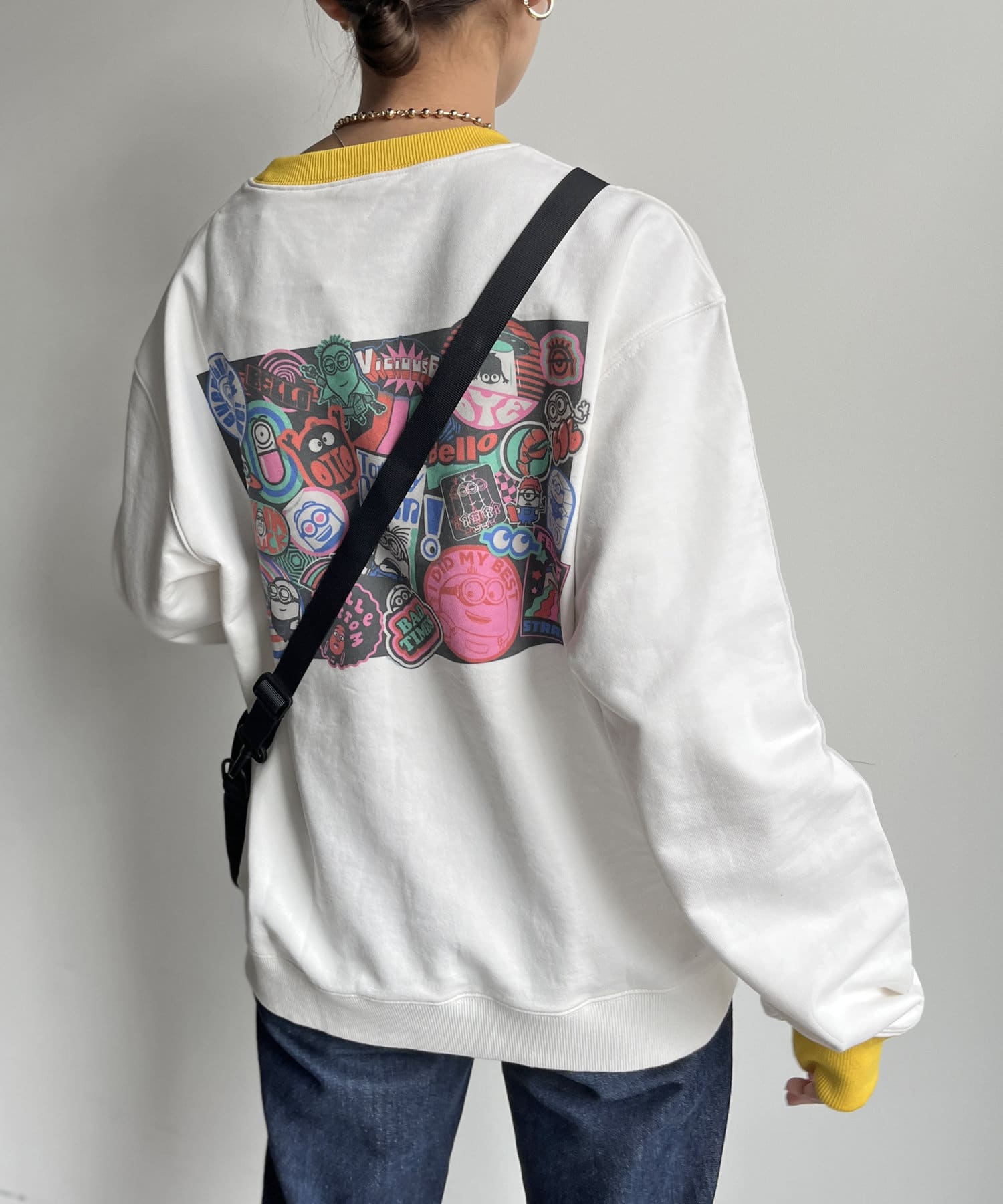 ややゆったりとしたスウェットにイエローの配色がアクセントになるスウェット。