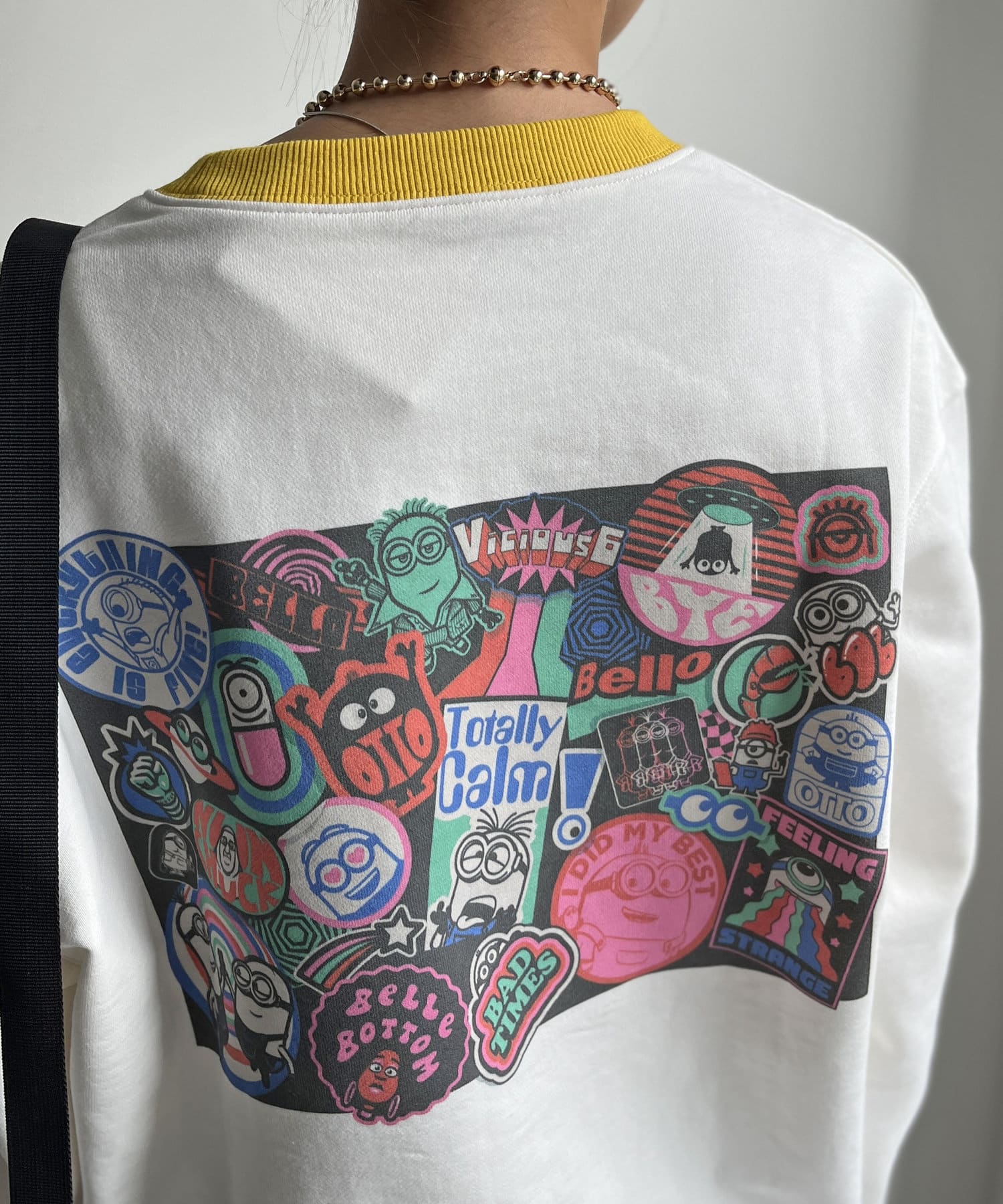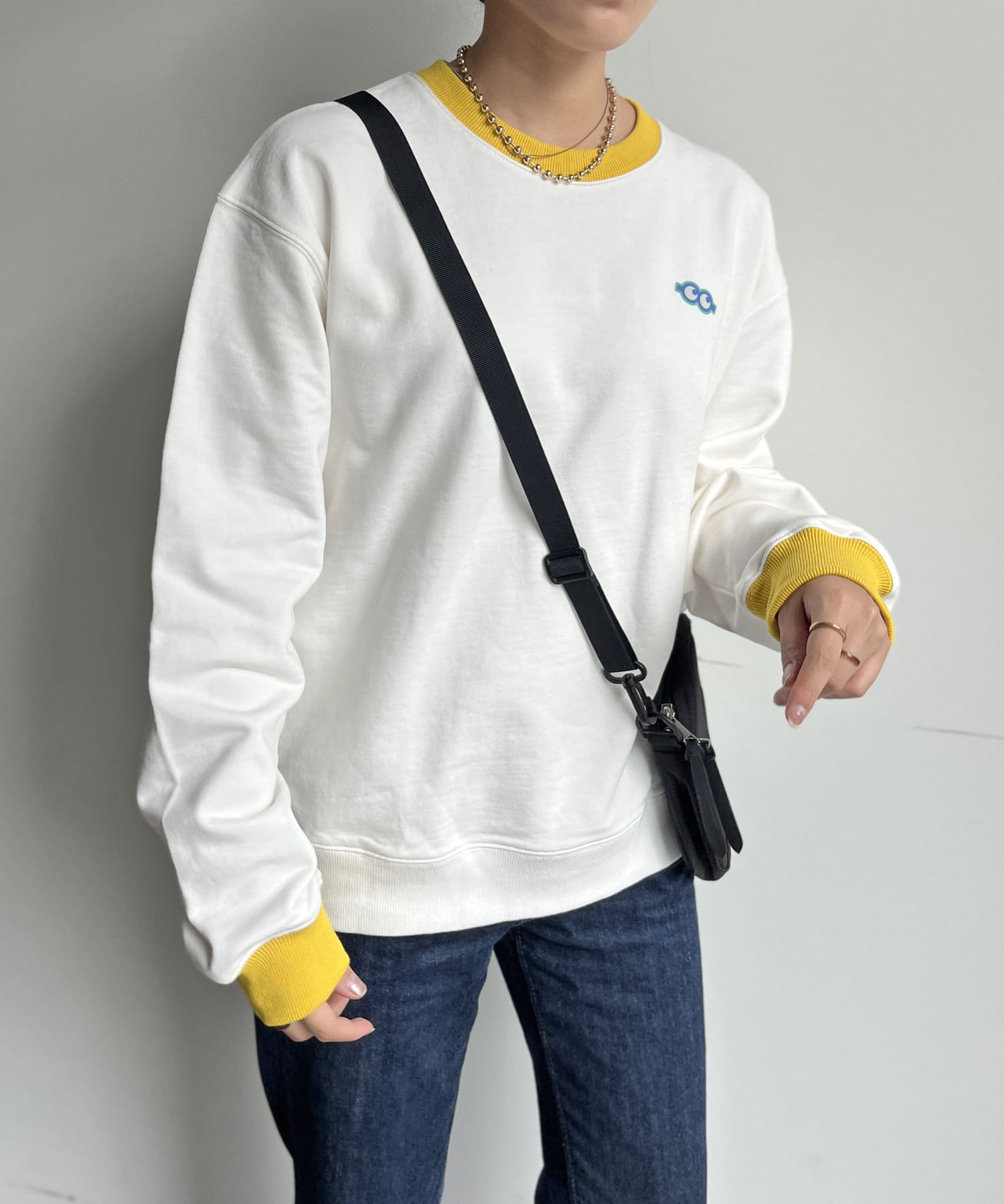 ミニオンのプリントと配色切り替えがポイントのスウェット