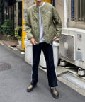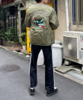 背中の大胆な刺繍で他に差をつけるミリタリージャケットです。軽量でライトアウターとしても活躍します。