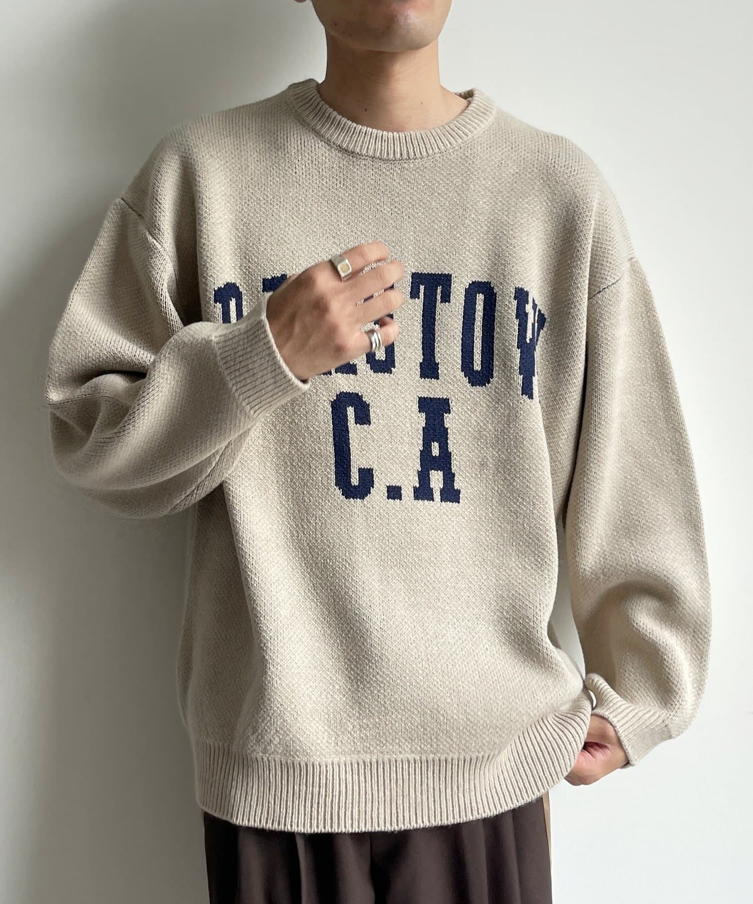 カレッジロゴクルーネックニット