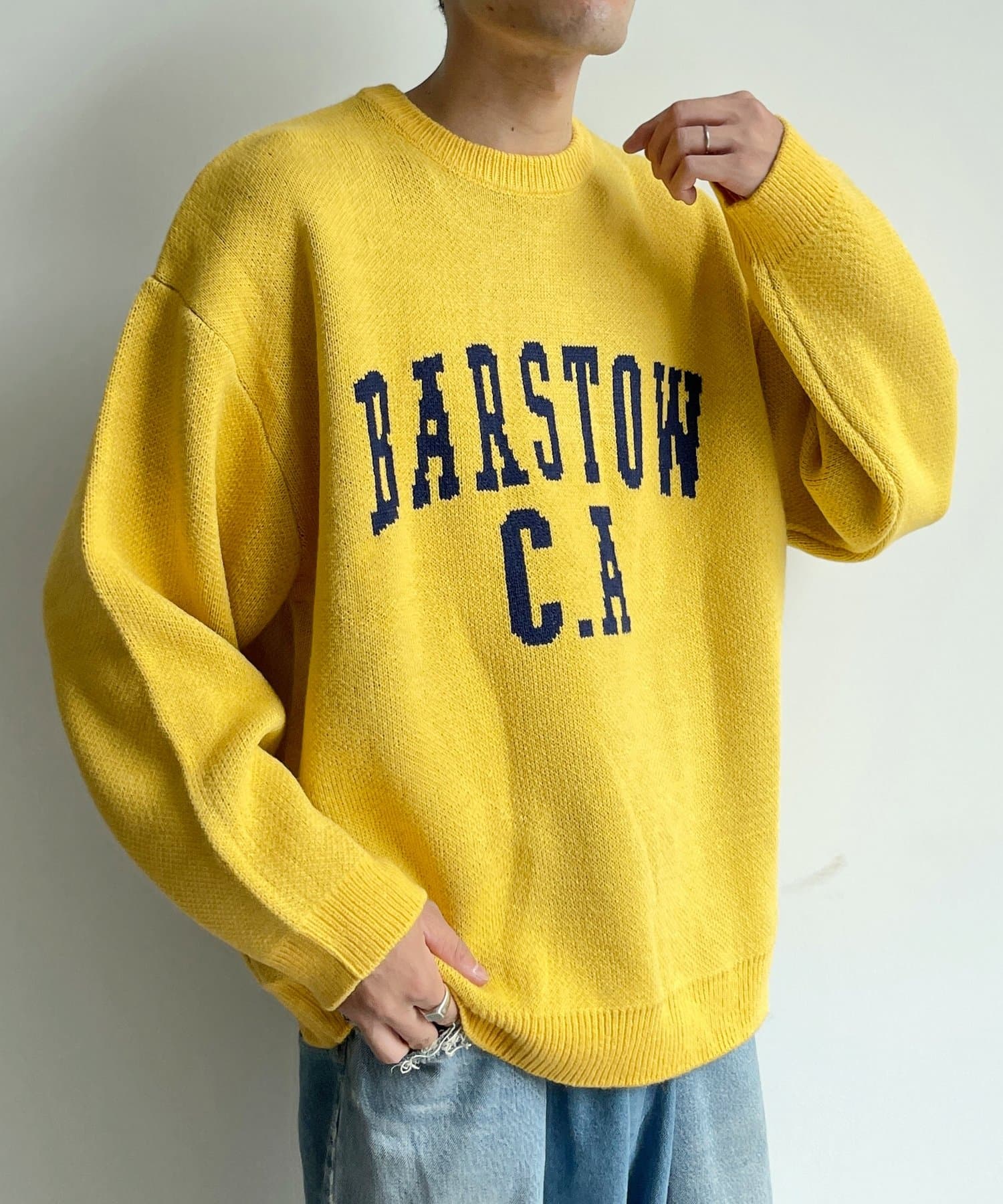 前後に異なるカレッジロゴを施した大人っぽく着れるクルーニットが登場!、後ろには大きく描かれたロゴデザインもポイントに。シンプルすぎず、海外の学生が着てそうな古着っぽいテイストも合わせた、魅力な1枚となっています。身幅・肩幅にゆとりを持たせて、トレンドのビッグシルエット / オーバーサイズが特徴的で、一枚で着てもかっこよく決まります。柔らかく、ボリューム感のあるシルエットが楽しめる1着です。
