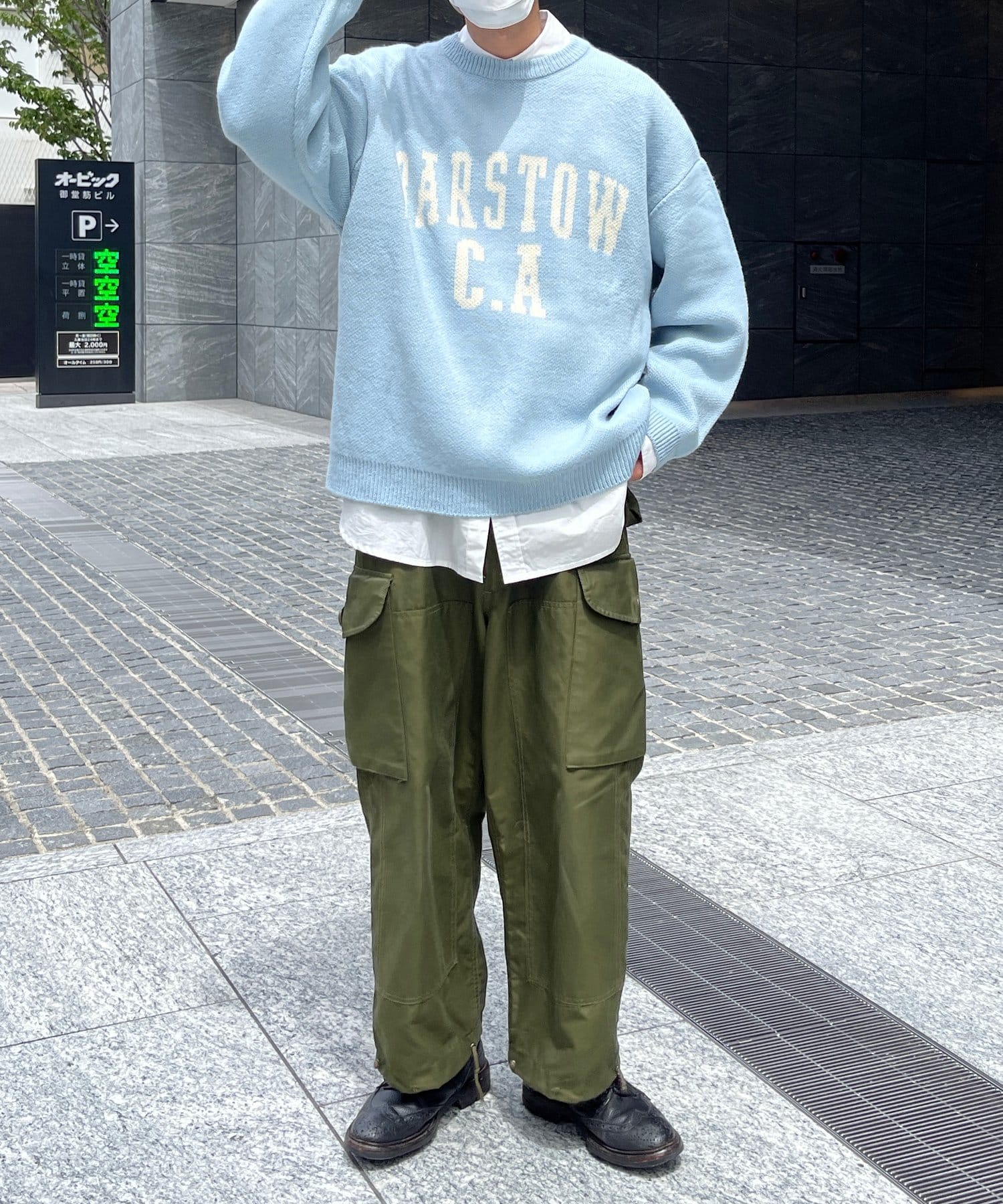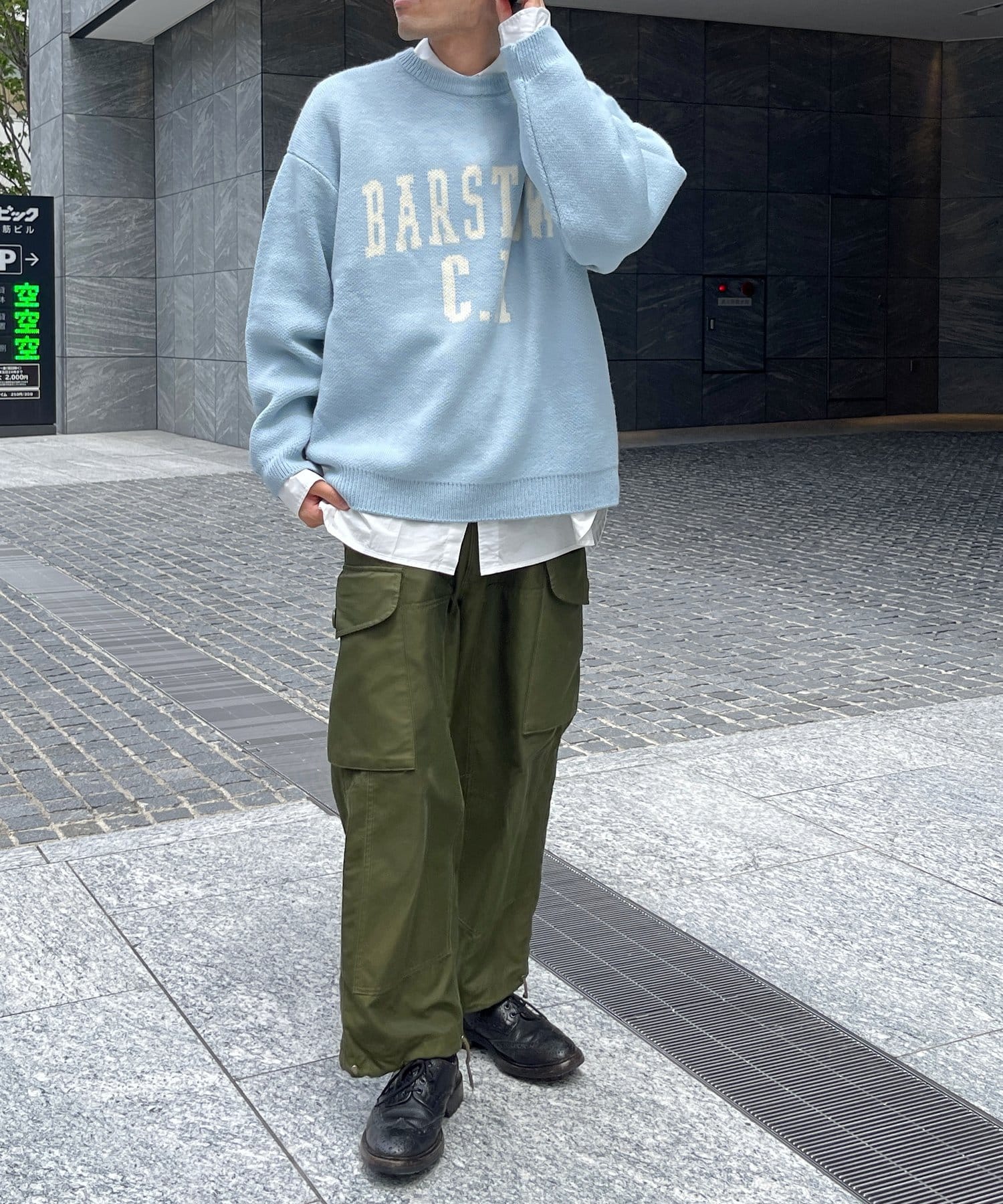 トレンド感溢れるカーゴパンツとのコーディネートがおすすめ。デニムやチノパンとも相性良く、ワイドパンツと合わせたストリートスタイルにも◉女性の方は、ゆるっとしたオーバーサイズのクルーネックニットに、フレアスカート、チェックスカートと合わせてフェミニンにまとめても◎ワイドパンツ、カーゴパンツでトレンドコーデにも。メンズ、レディース問わず着用できるユニセックスデザインとなっております。