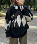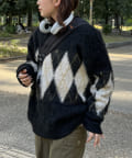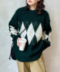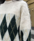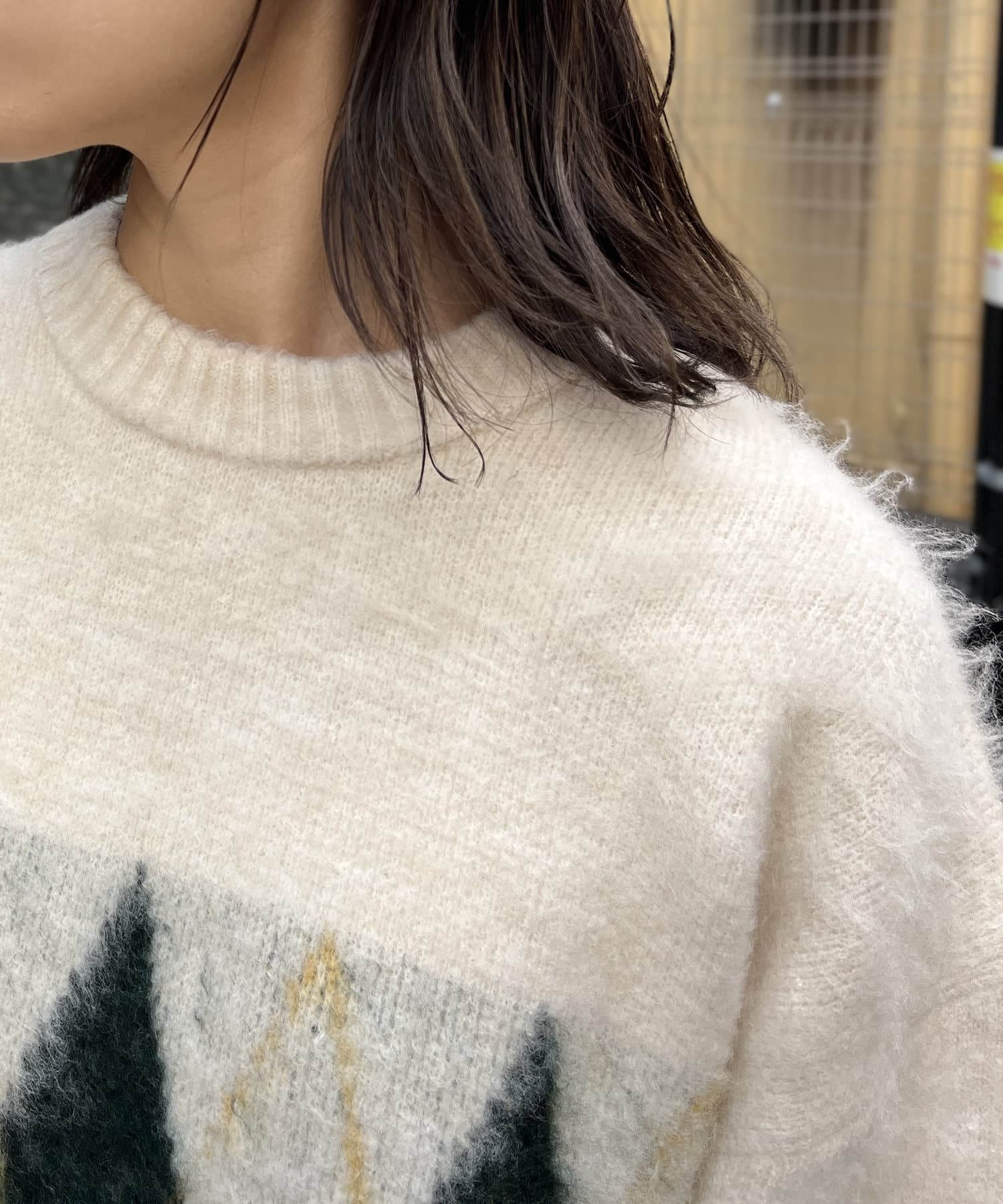 【ユニセックス】アーガイル起毛ニットプルオーバー