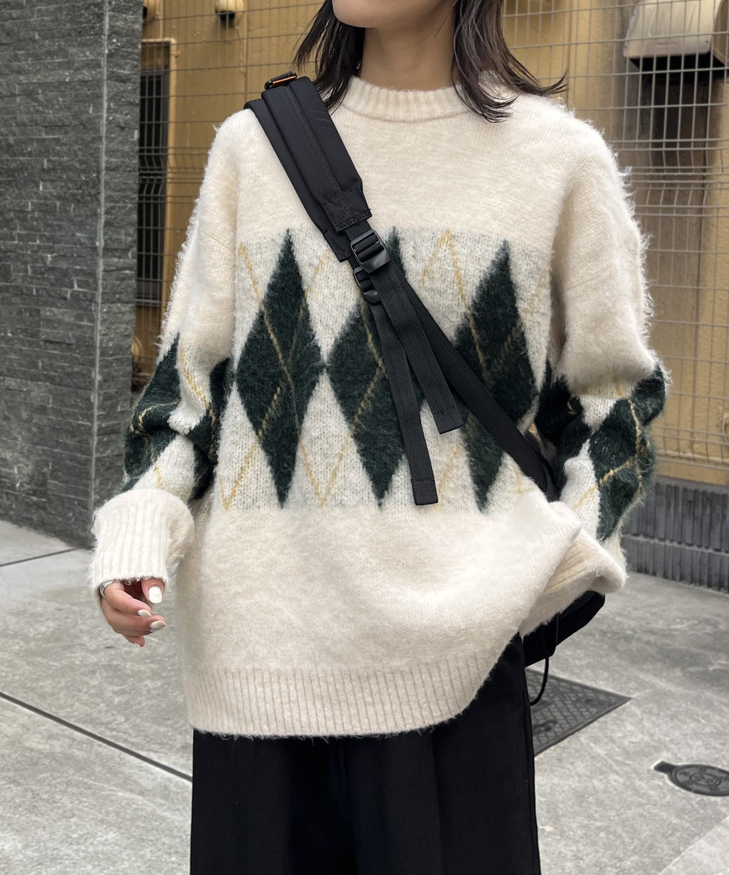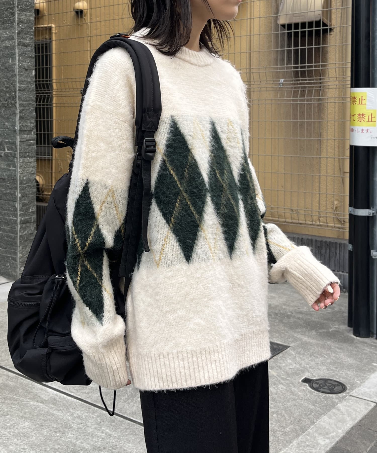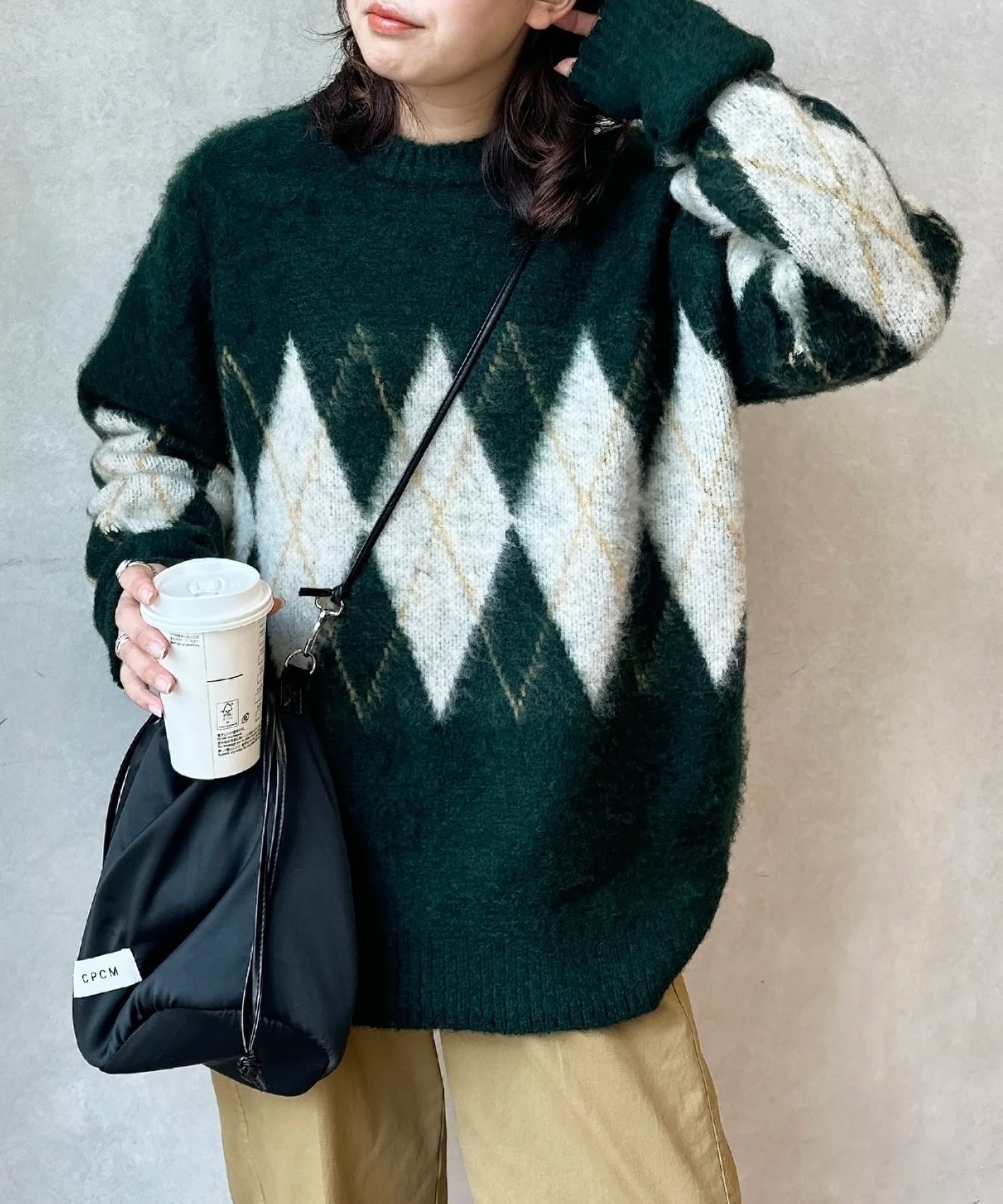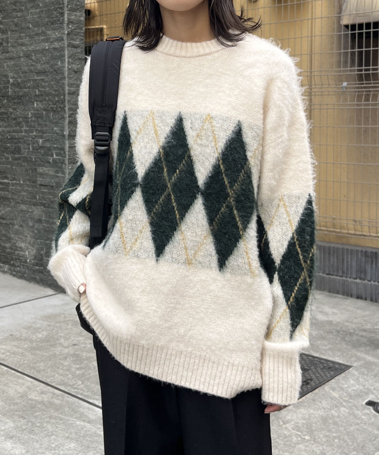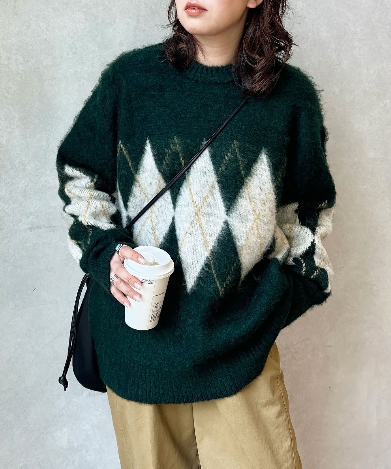 秋冬の定番になりつつあるアーガイルニットは1枚は持っておきたいアイテムです。