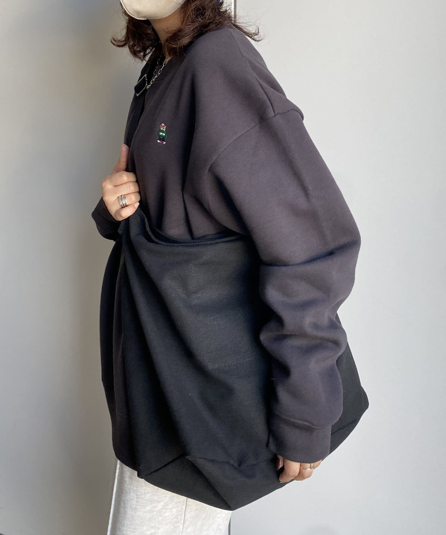 左胸に施したクマの刺繍が1ポイントアクセントとして映えるデザイン。