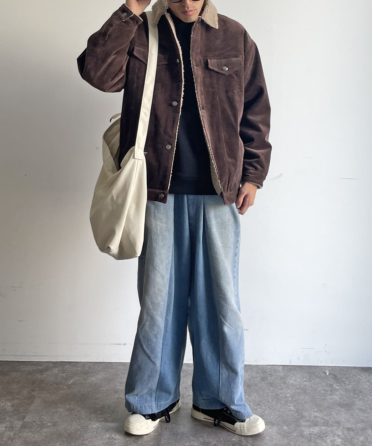 ・秋冬定番素材のコーデュロイで暖かみをプラス