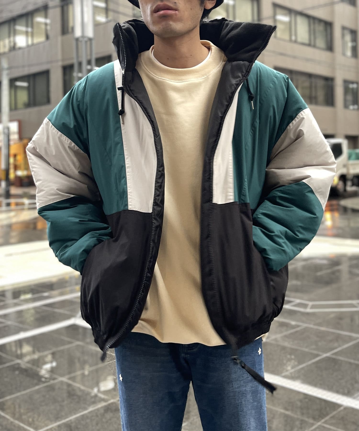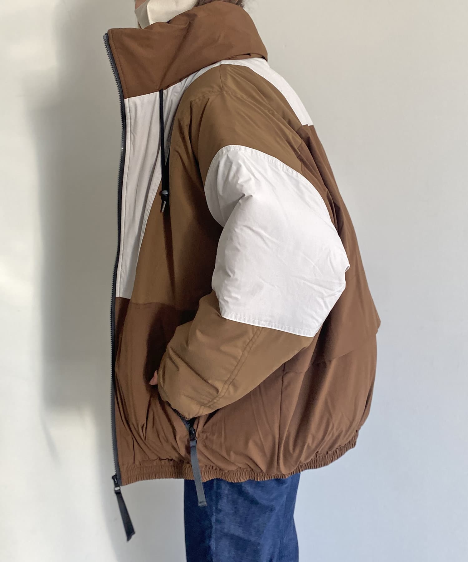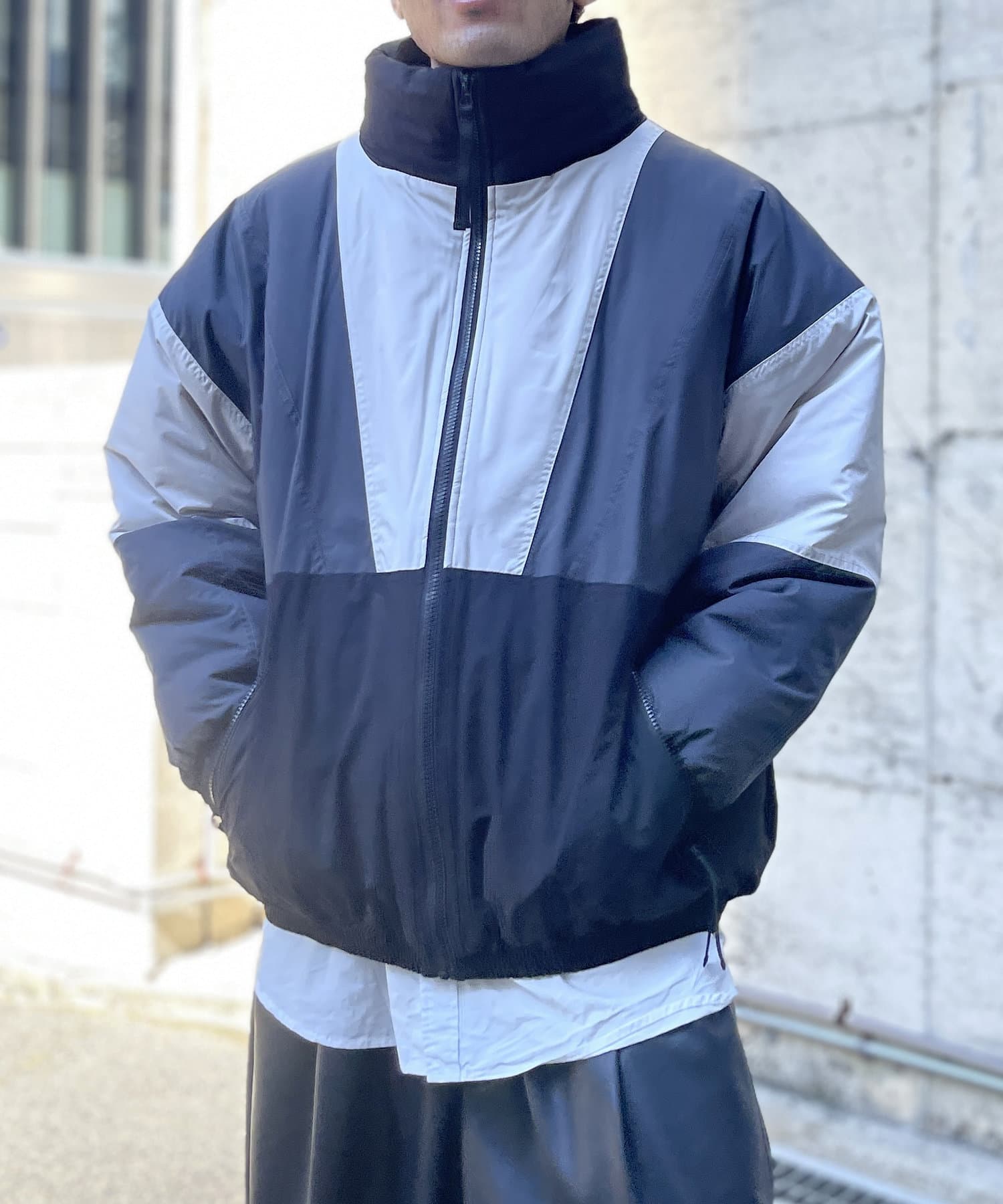 ほど良いオーバーサイズなドロップショルダーとビッグシルエットが、アウターとしての存在感を発揮してくれます。配色デザインがスポーティー感があり、ボトムはアデニムやカーゴパンツはもちろんの事、トレンドのフレアパンツやトラックパンツとの相性の良い1着となっています。カットソーやシャツの上に羽織るシンプルな着こなしから、ビッグシルエットのサイズ感を活かしたレイヤードスタイルもおすすめ。