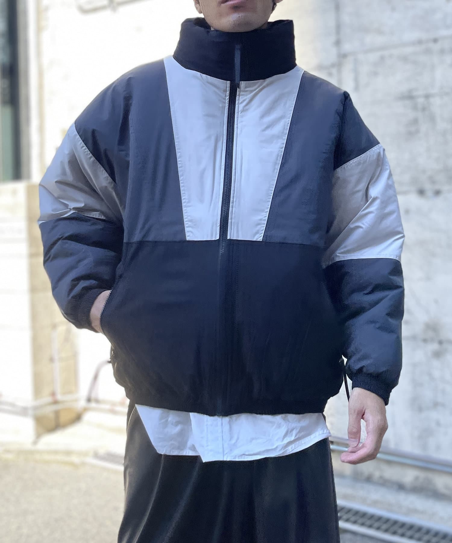 配色切り替えのデザインがスポーティーな印象を与えてくれ、中綿でしっかり暖かくアウターとしての機能も発揮してくれる万能アウターです。