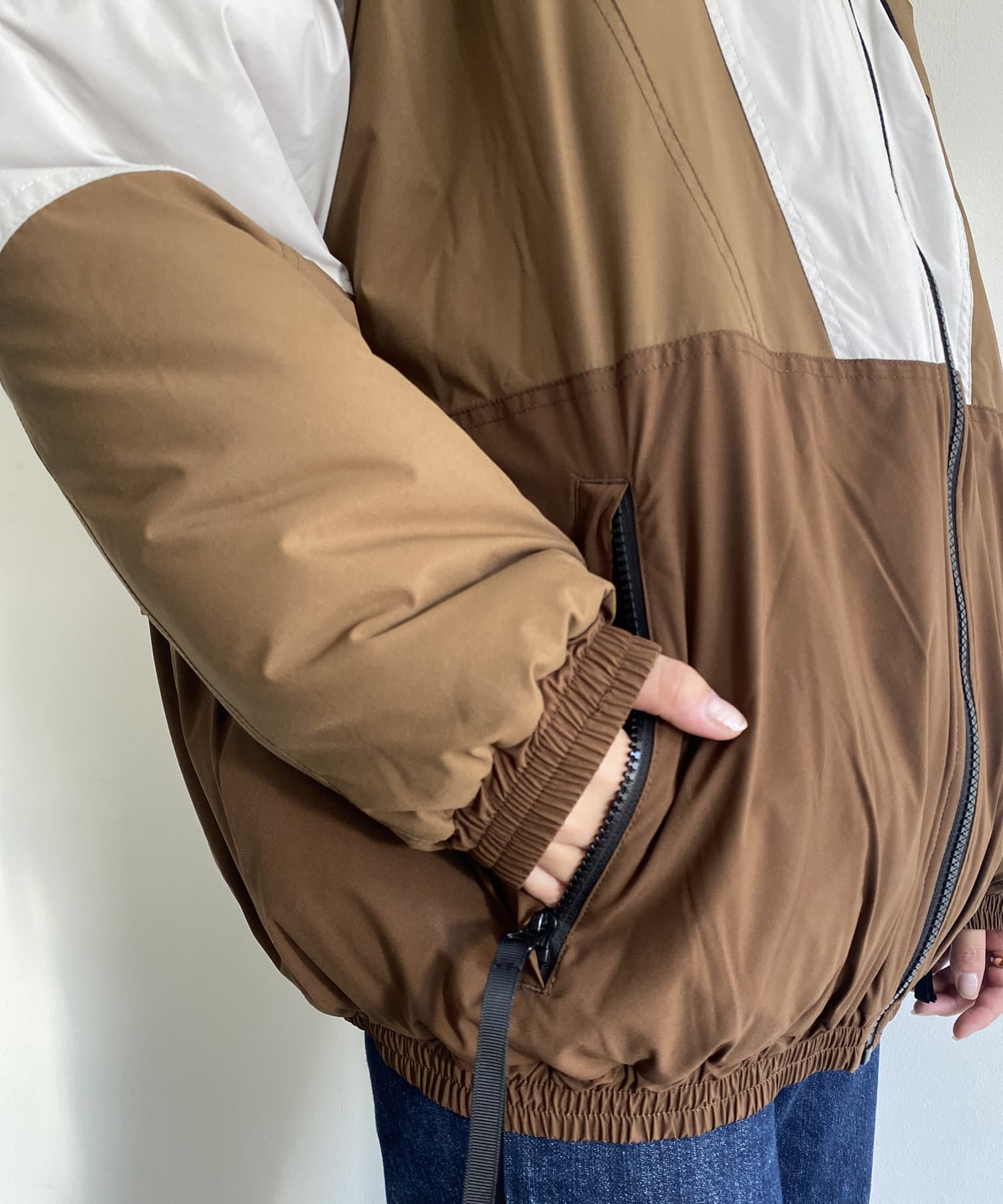 やわらかい中綿素材を使用したスポーティな切替ブルゾン
