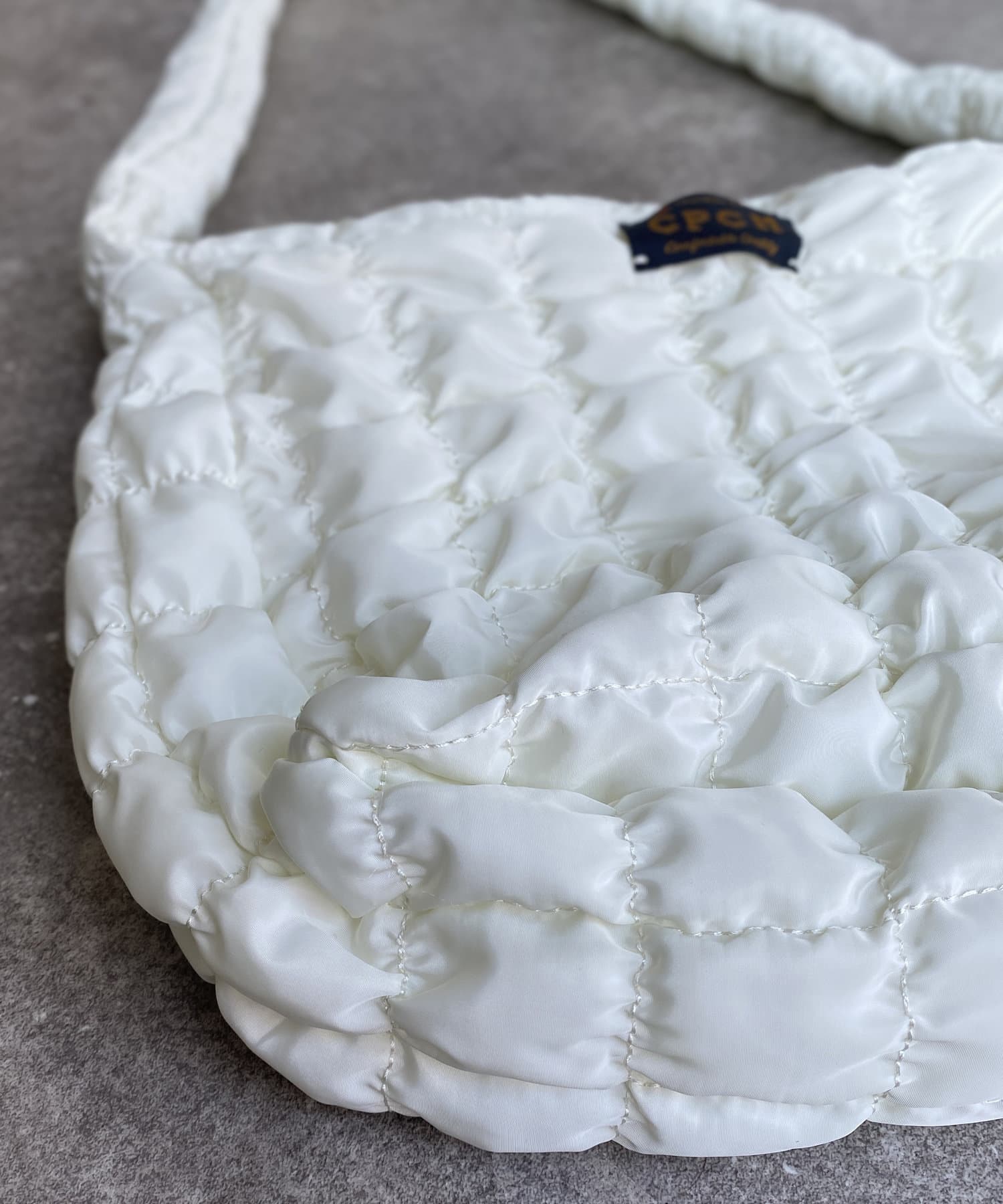 クシュっとしたポップコーンのような凹凸がスタイリングのポイントになるショルダーバッグ。