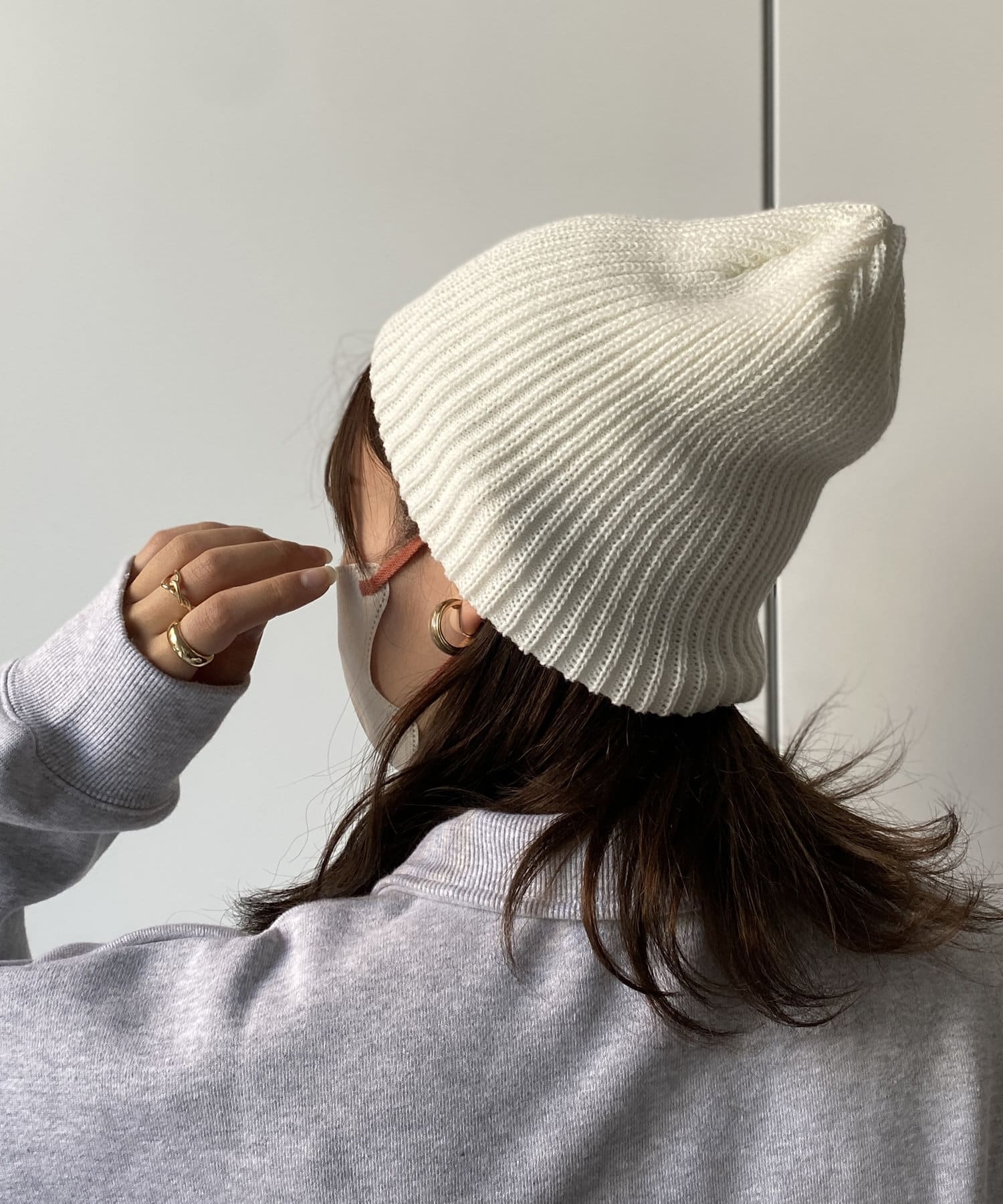 程よく肉厚な素材で、秋冬に向けて保温性もあり、柔らかく快適に着用できます。ベーシックな形とデザインなので、日々のワードローブの中に馴染みやすく、ヘビーローテーションしてもらえます。また、深めに被ることでストリート感も演出してくれ、どのスタイリングにも合わせやすいおすすめニットキャップです。