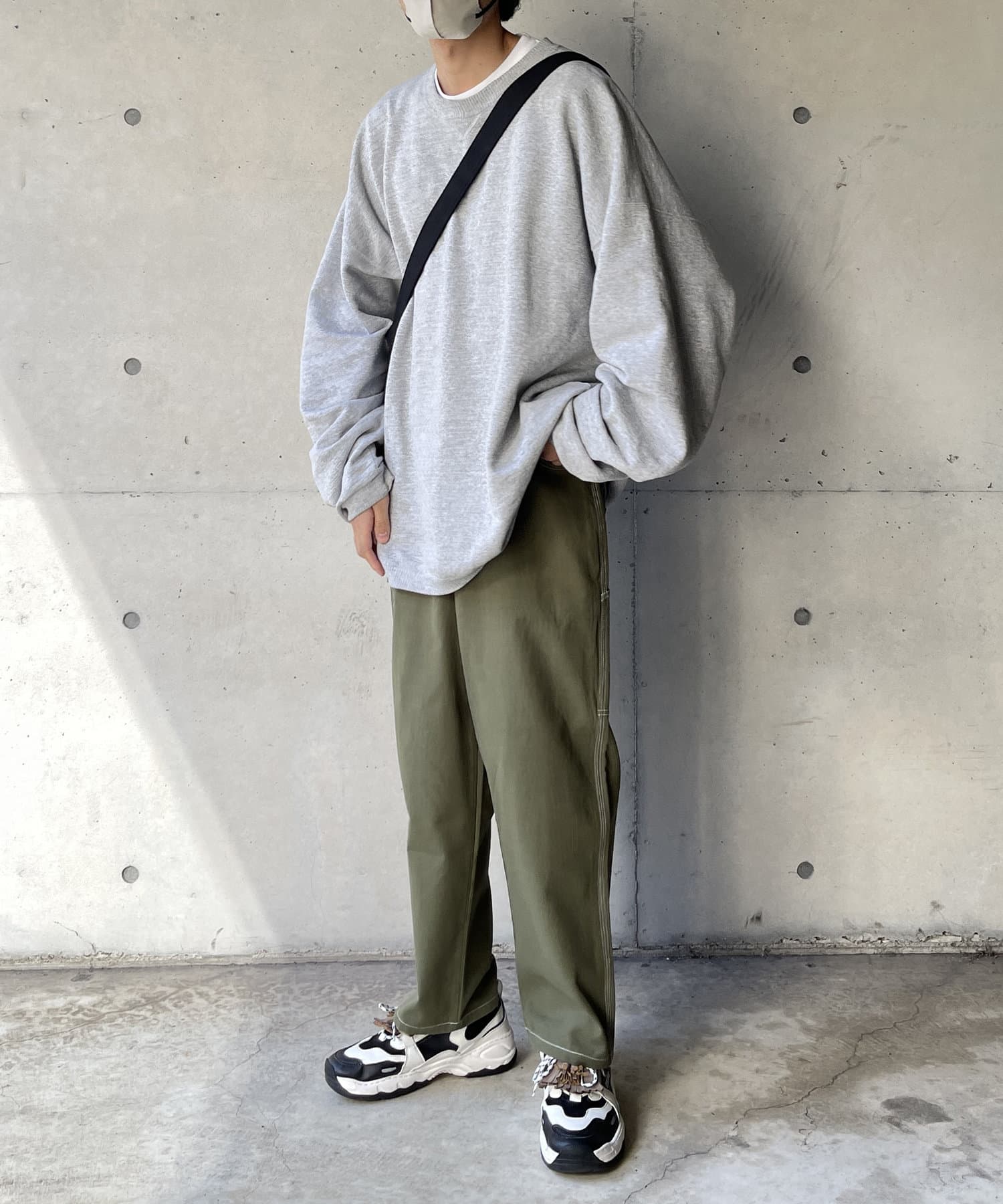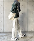 1枚でデザイン性のあるパンツなので、シンプルなアイテムと好相性です。