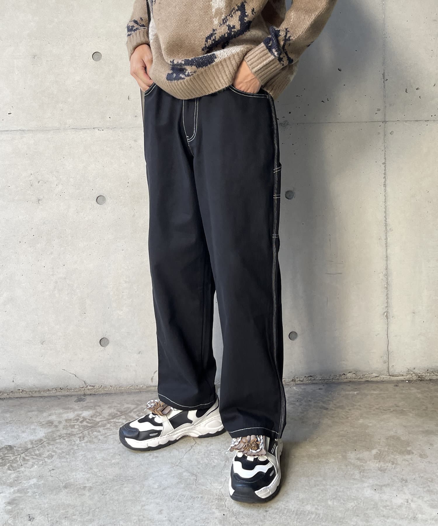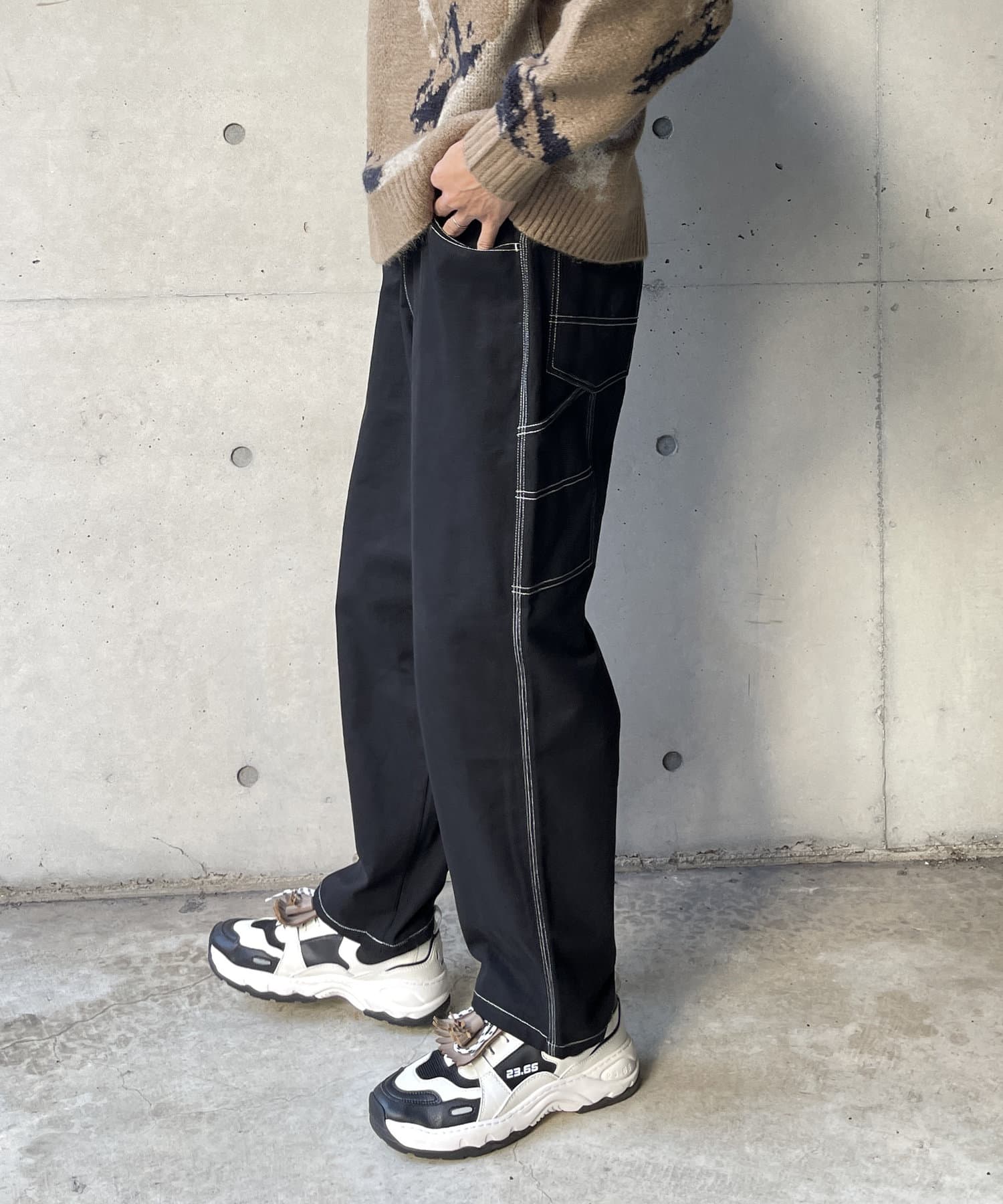 配色を効かせたステッチや、ハンマーループなど細部までこだわりの詰まったペイインターパンツ。