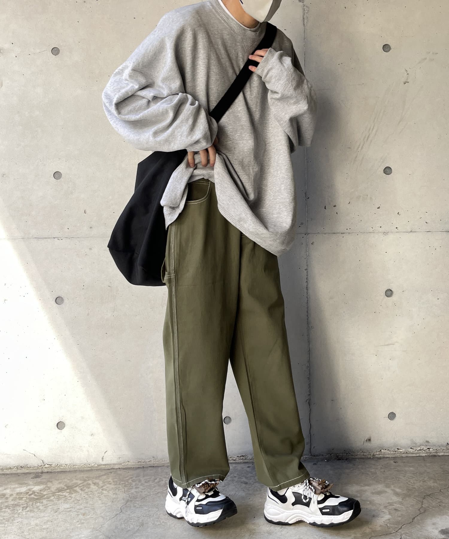 シャツやスウェット、カーディガンなどの羽織と合わせたリラックス感あるコーディネートがおすすめ。