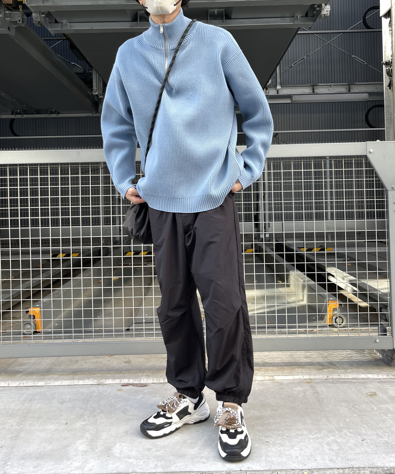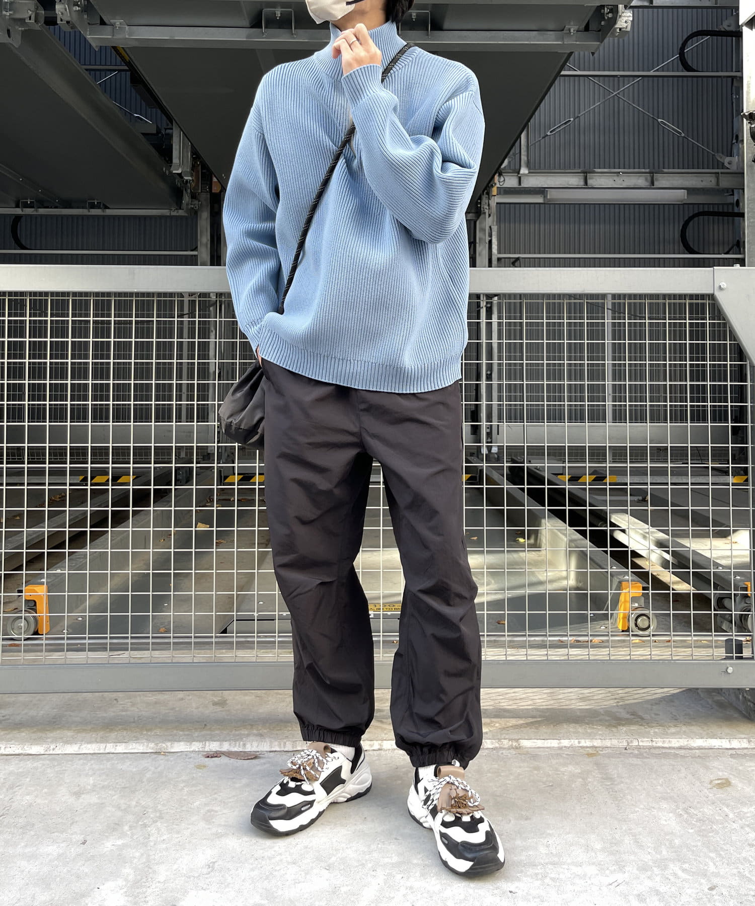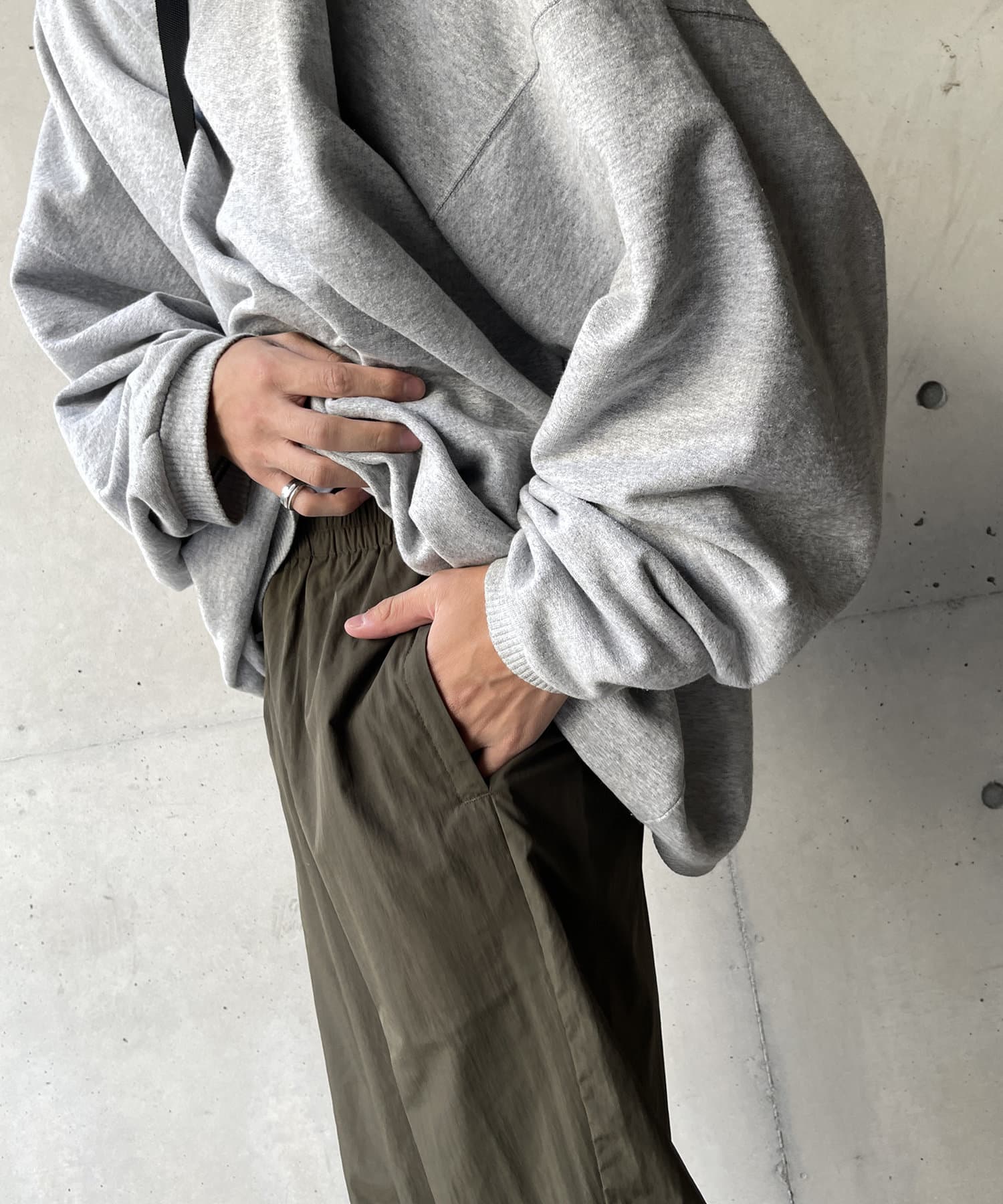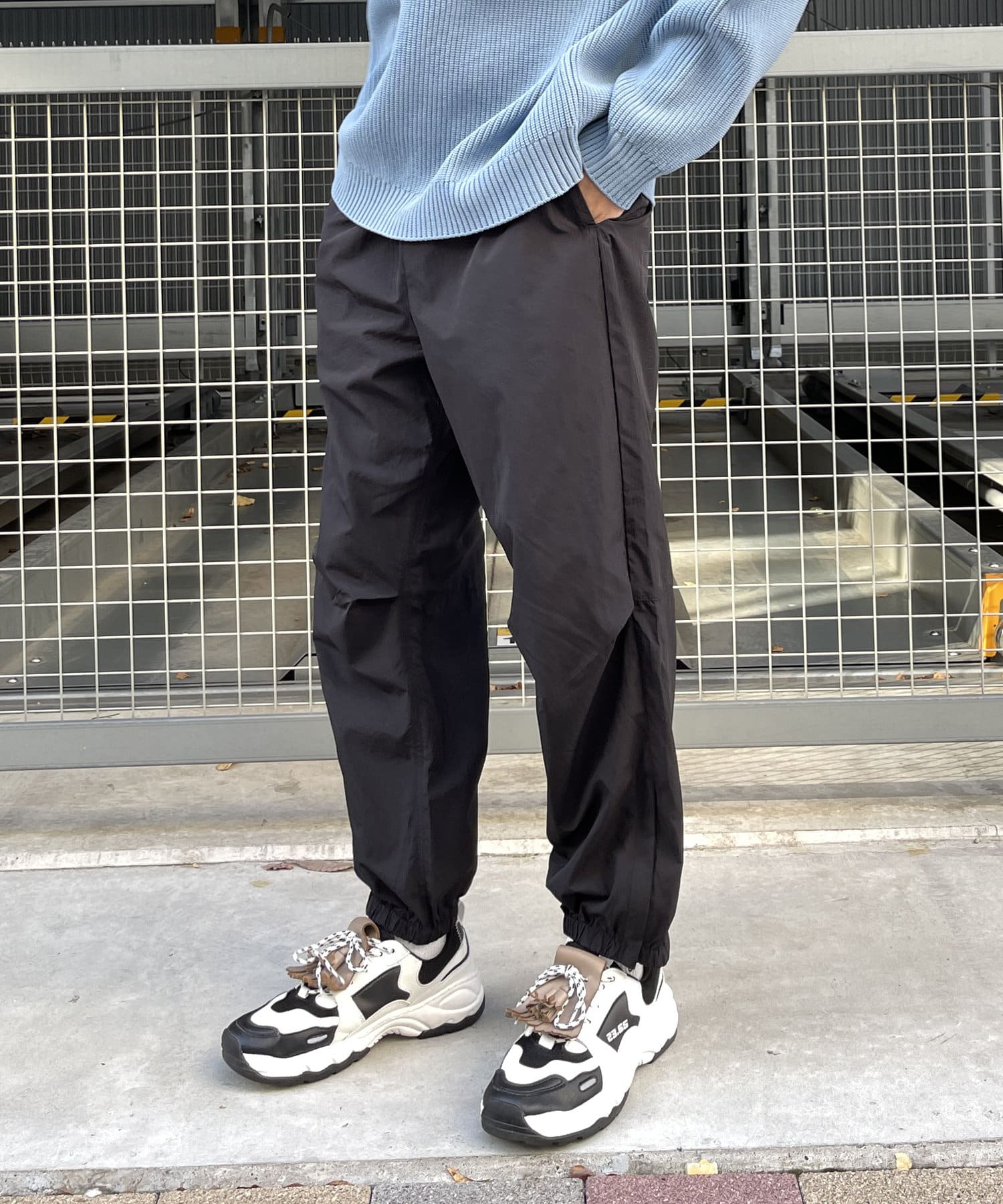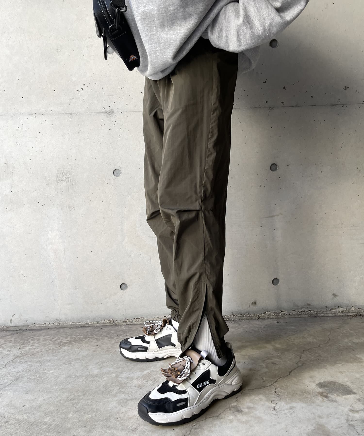 ベーシックなナイロンパンツはロンTやスウェット、ニットなど幅広いトップスと好相性。