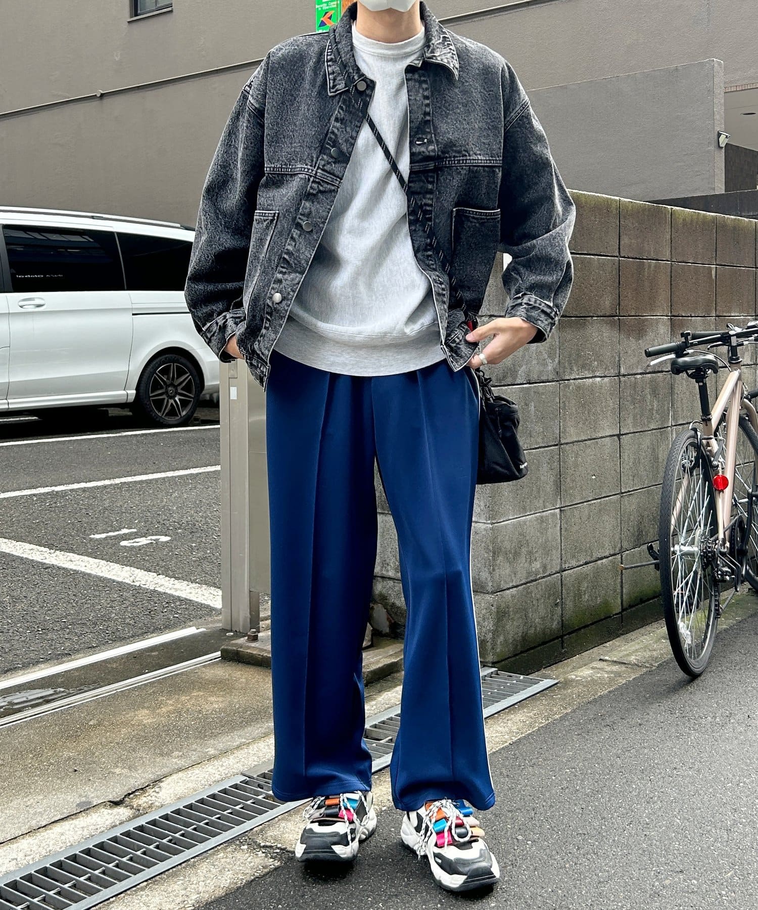 デニムジャケットやモッズコート、ダウンジャケットなどアウター選びにも困らず、こなれ見えしながら楽に着られるトラックパンツはワードローブに持っておきたいアイテムの一つです。