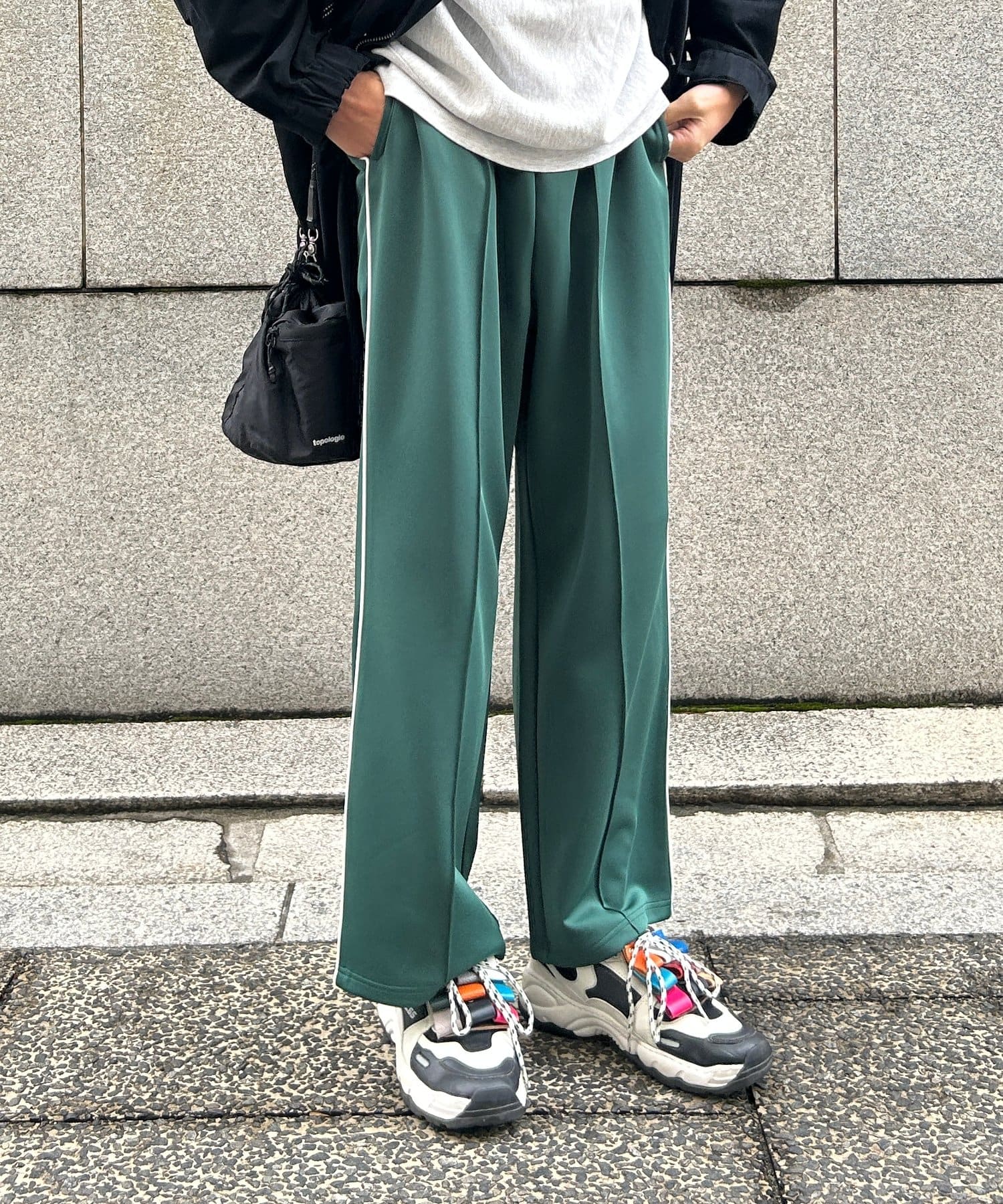 トレンド感あふれるスポーティーな配色トラックパンツ