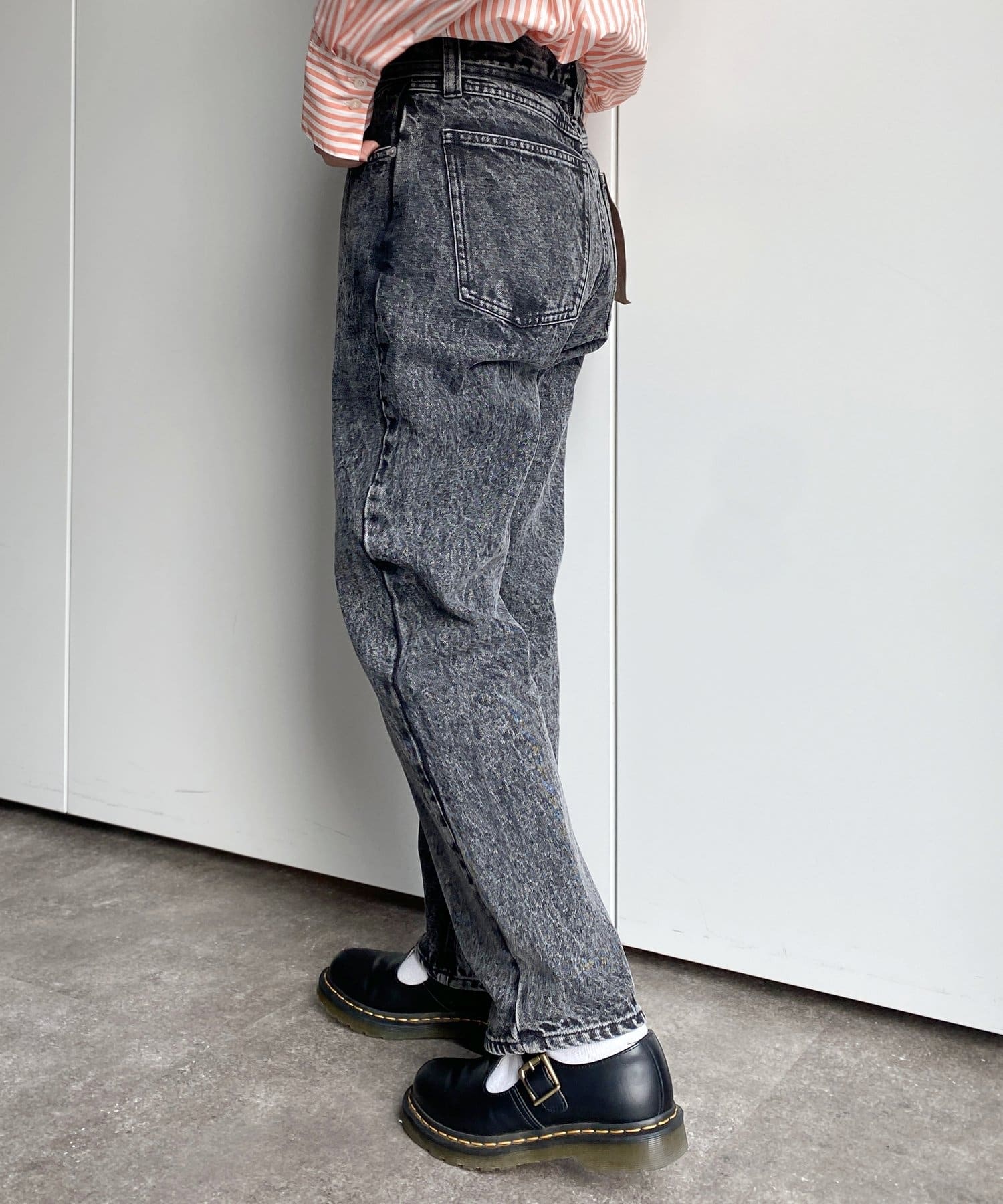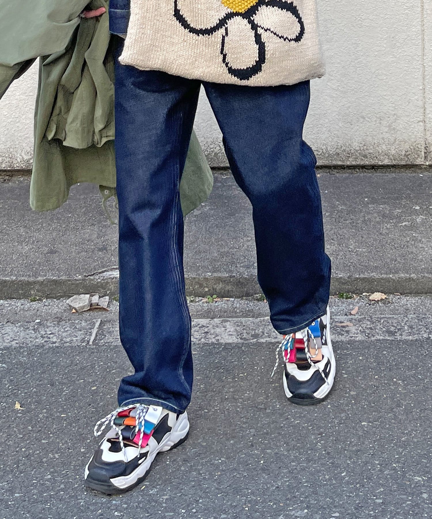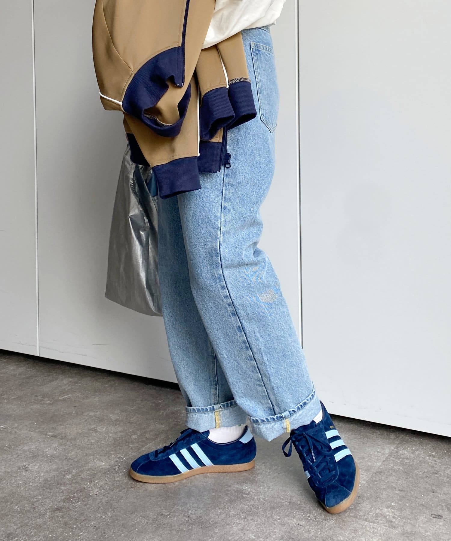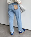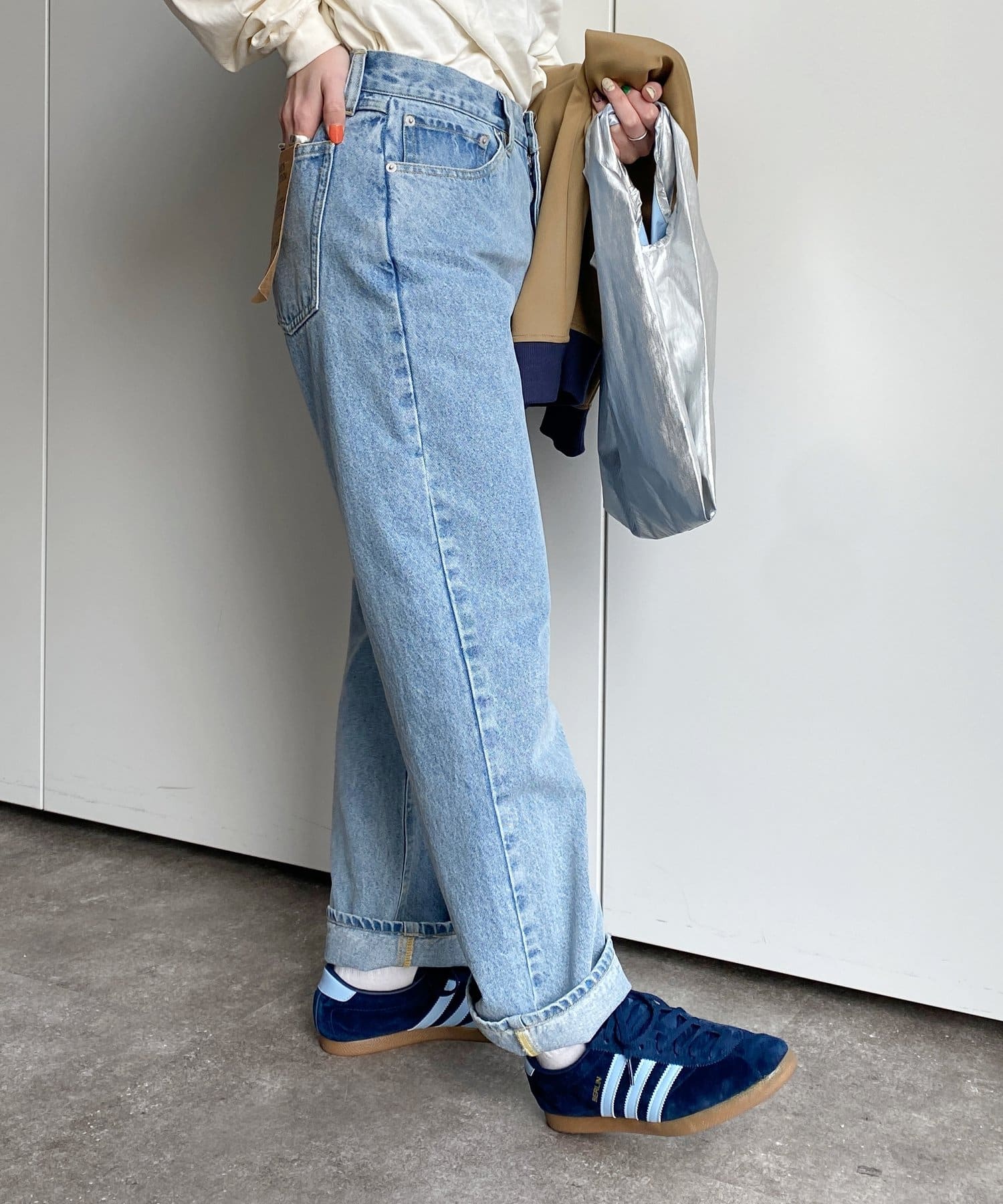 脚のラインを拾わないワイドテーパードで、上品ながらもリラクシーな印象を与えてくれるデニムパンツ。