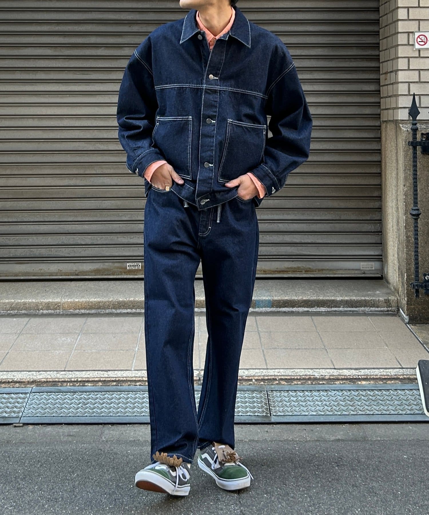 同素材のデニムジャケットと合わせてセットアップがおすすめです。