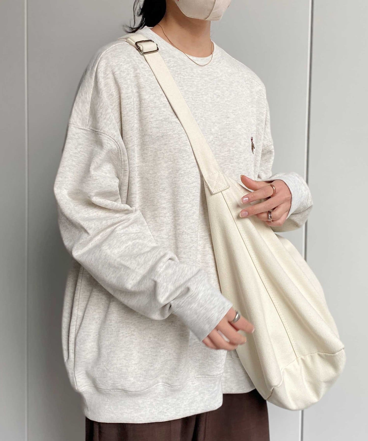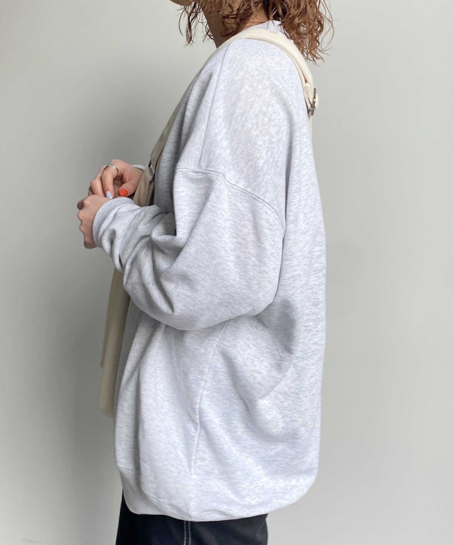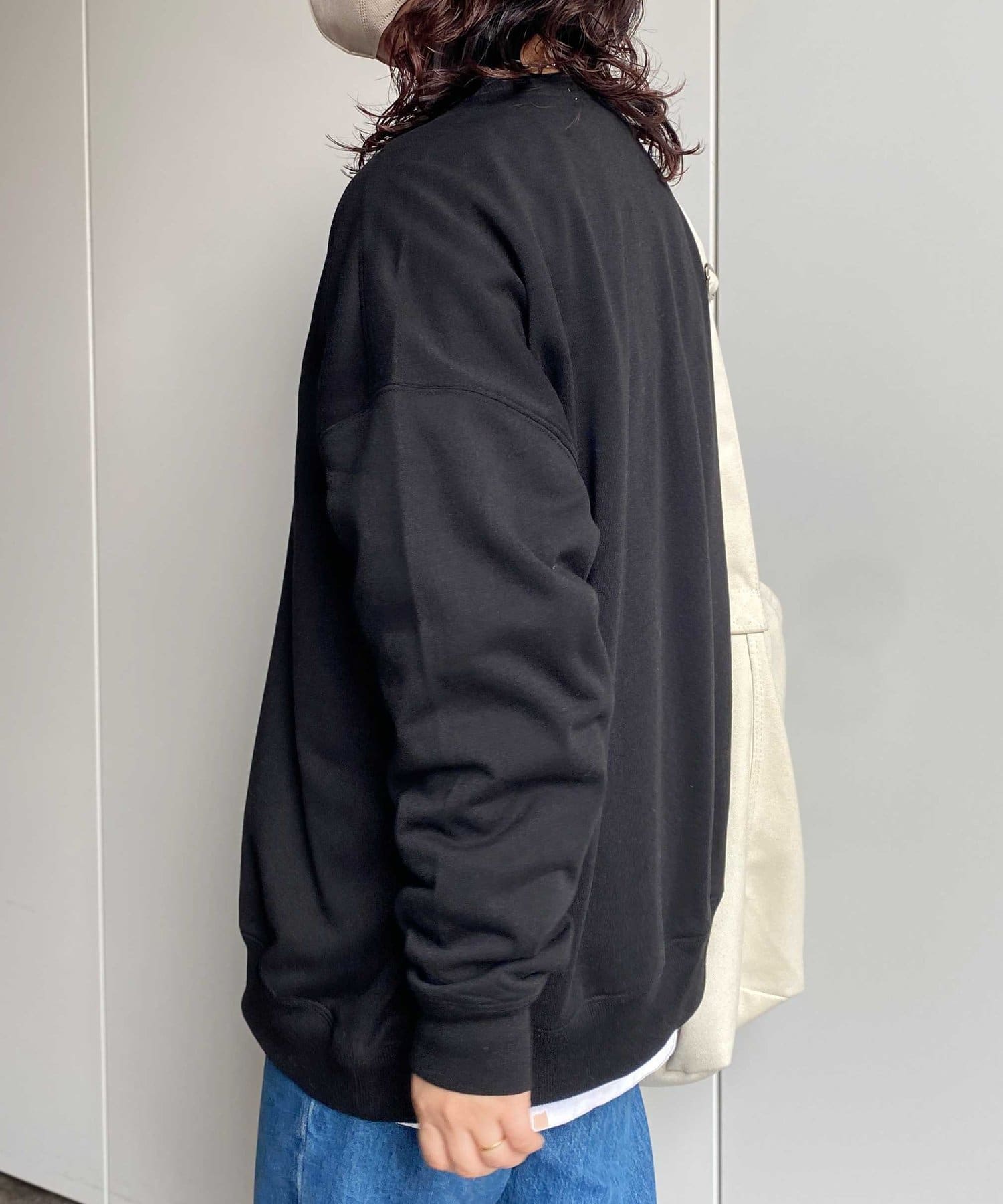 ・ドロップショルダーにオーバーサイズで、今どきらしいトレンド感のあるシルエットスタイル。
