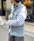 色味を合わせたデニムでセットアップ風に着て頂いたり、チノパンやカーゴパンツなどカジュアルアイテムとも良くマッチします。