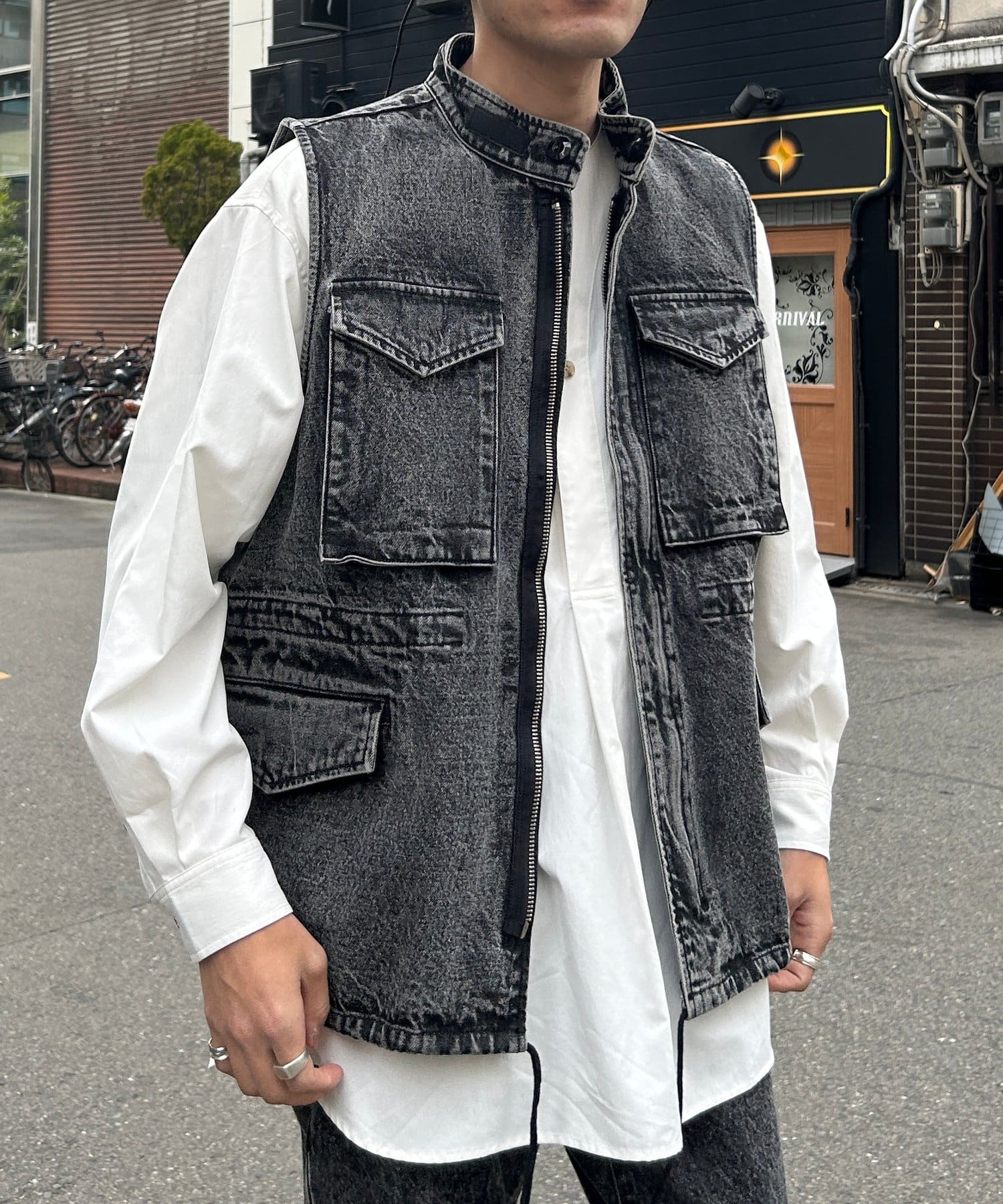 羽織るだけで存在感抜群のデニムベスト。
