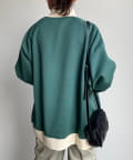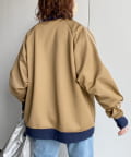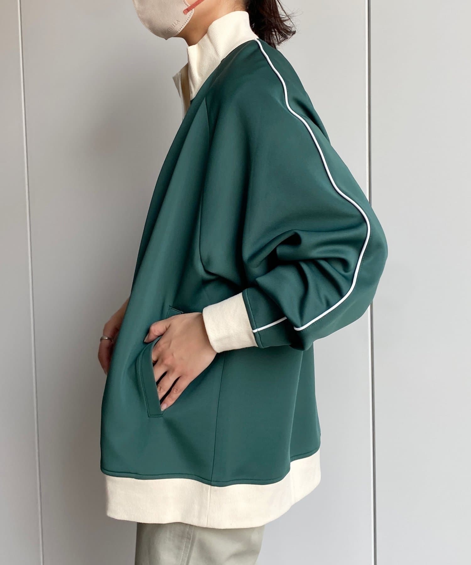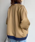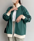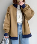 ・配色パイピング&リブ切替でこなれた印象。
