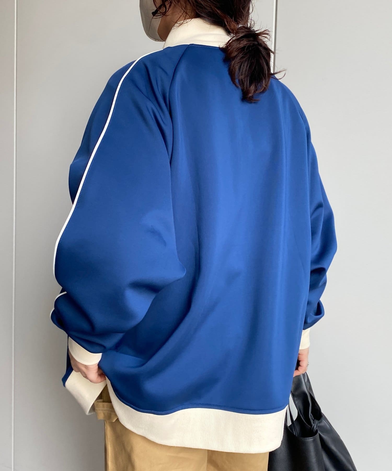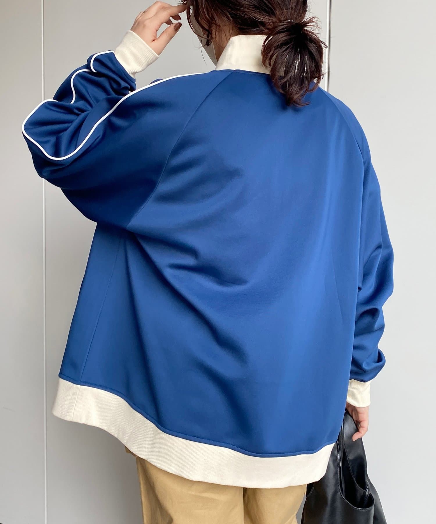 配色切替とパイピングデザインがポイントのトラックジャケット。