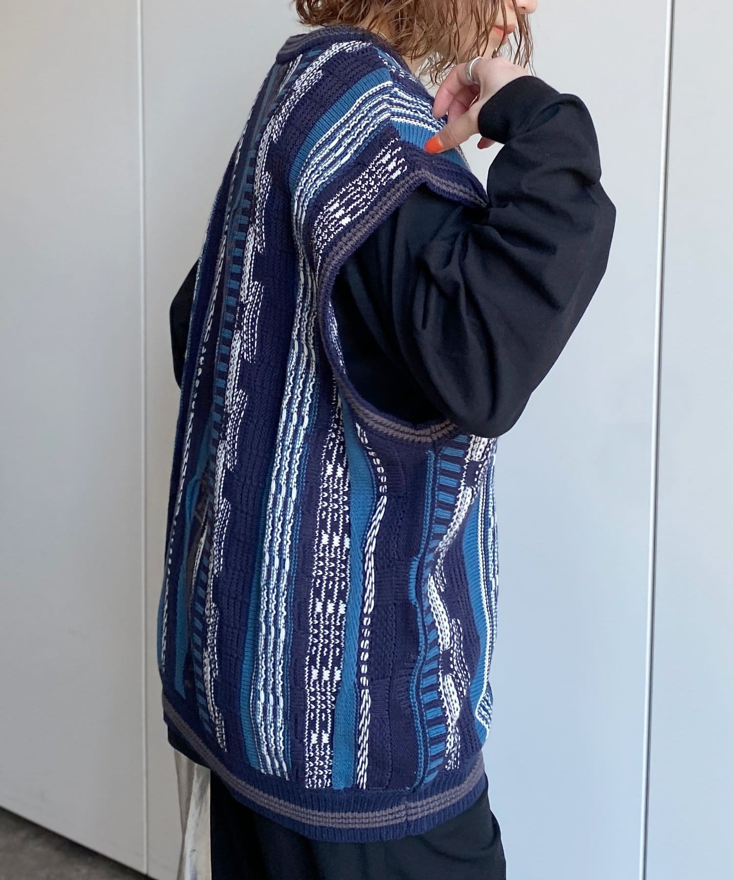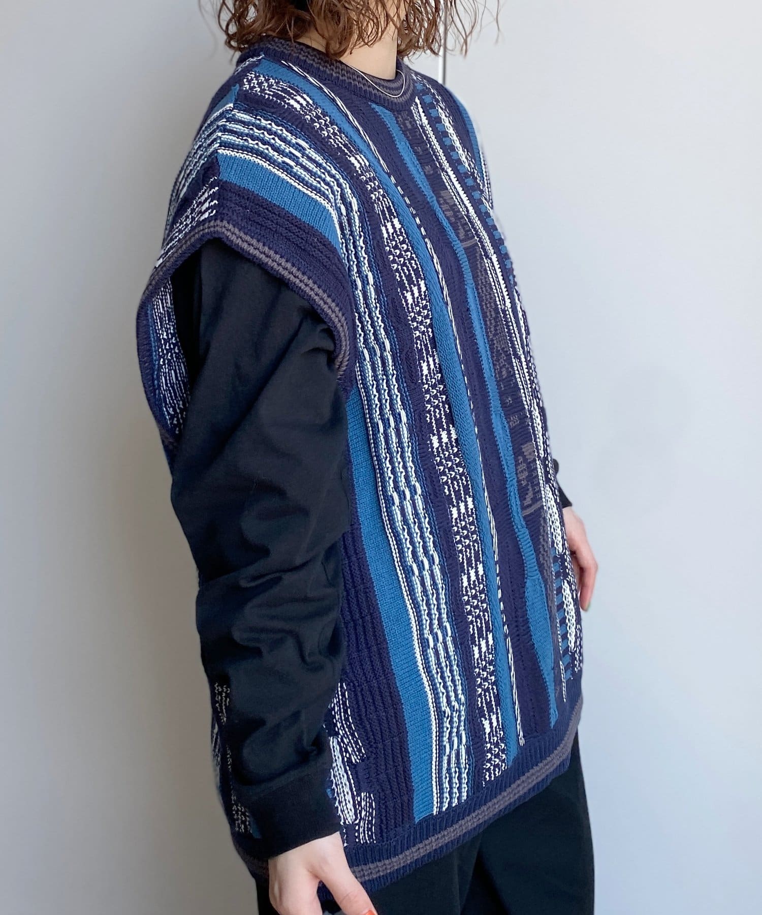 3Dニットをベースに現代風にアップーデートしたニットベスト