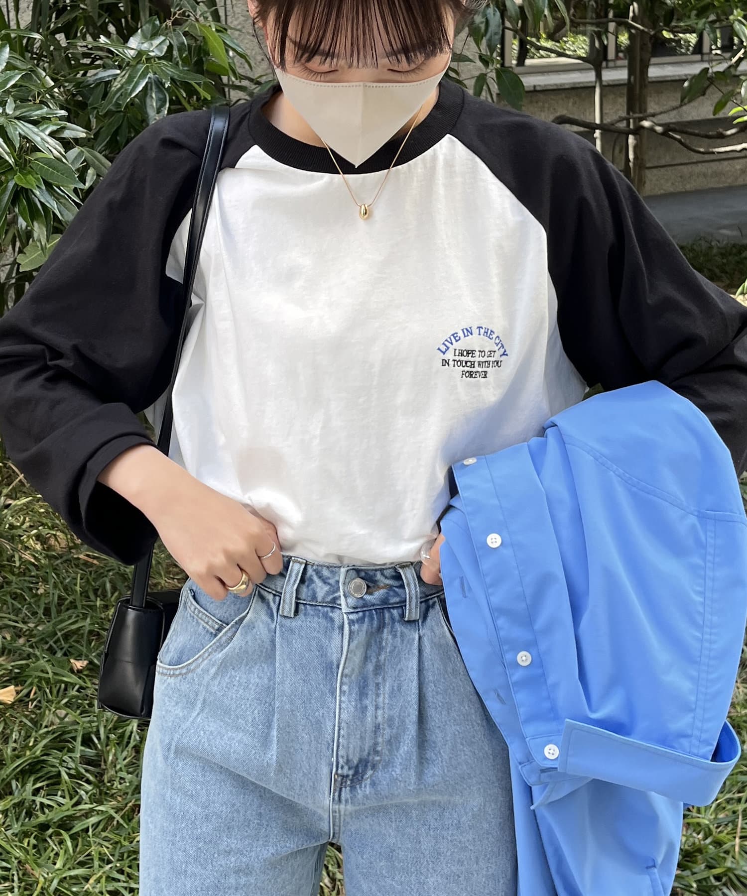 スカートとも好相性で、タックインするとメリハリの付いたスタイリングに仕上がります。