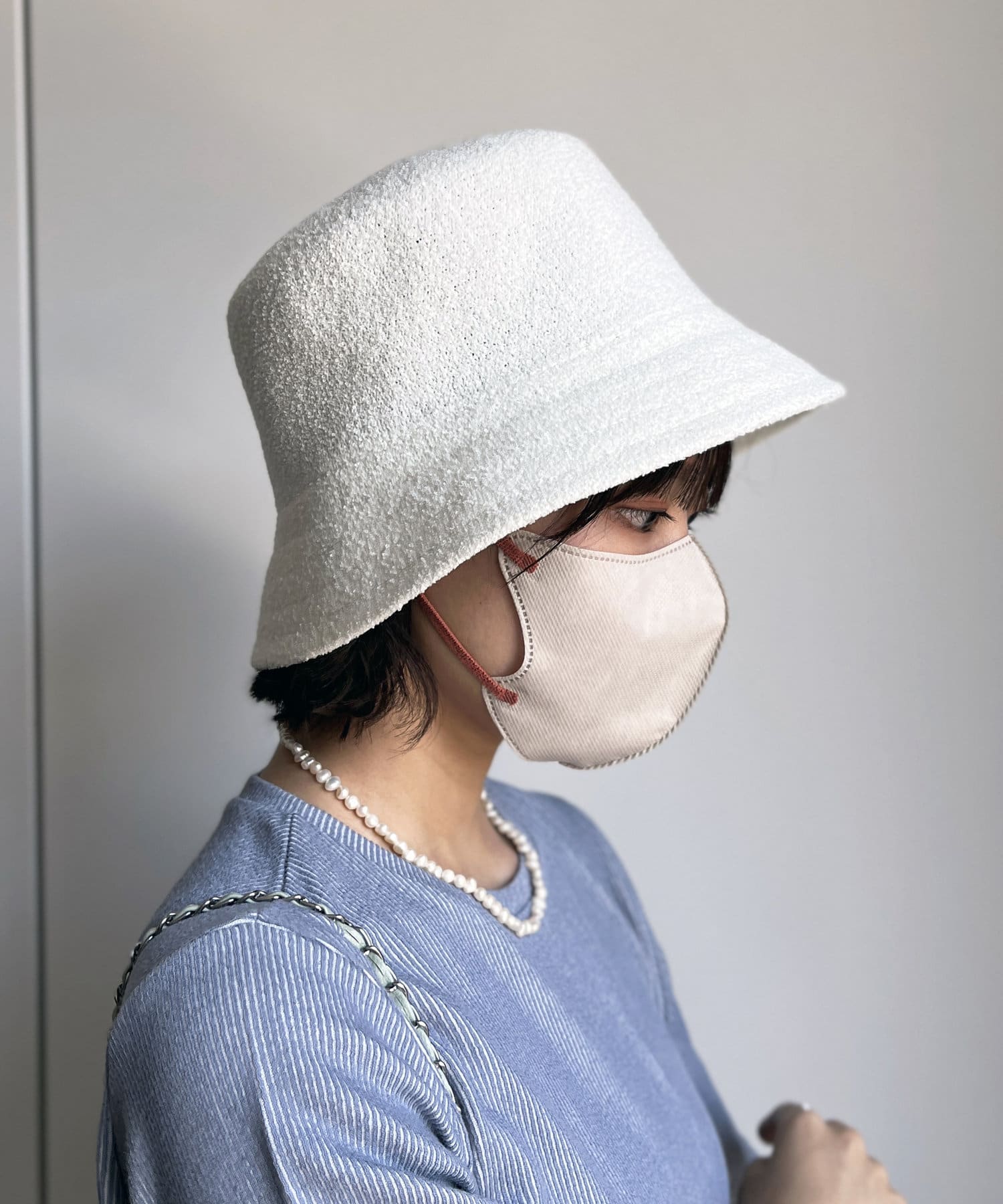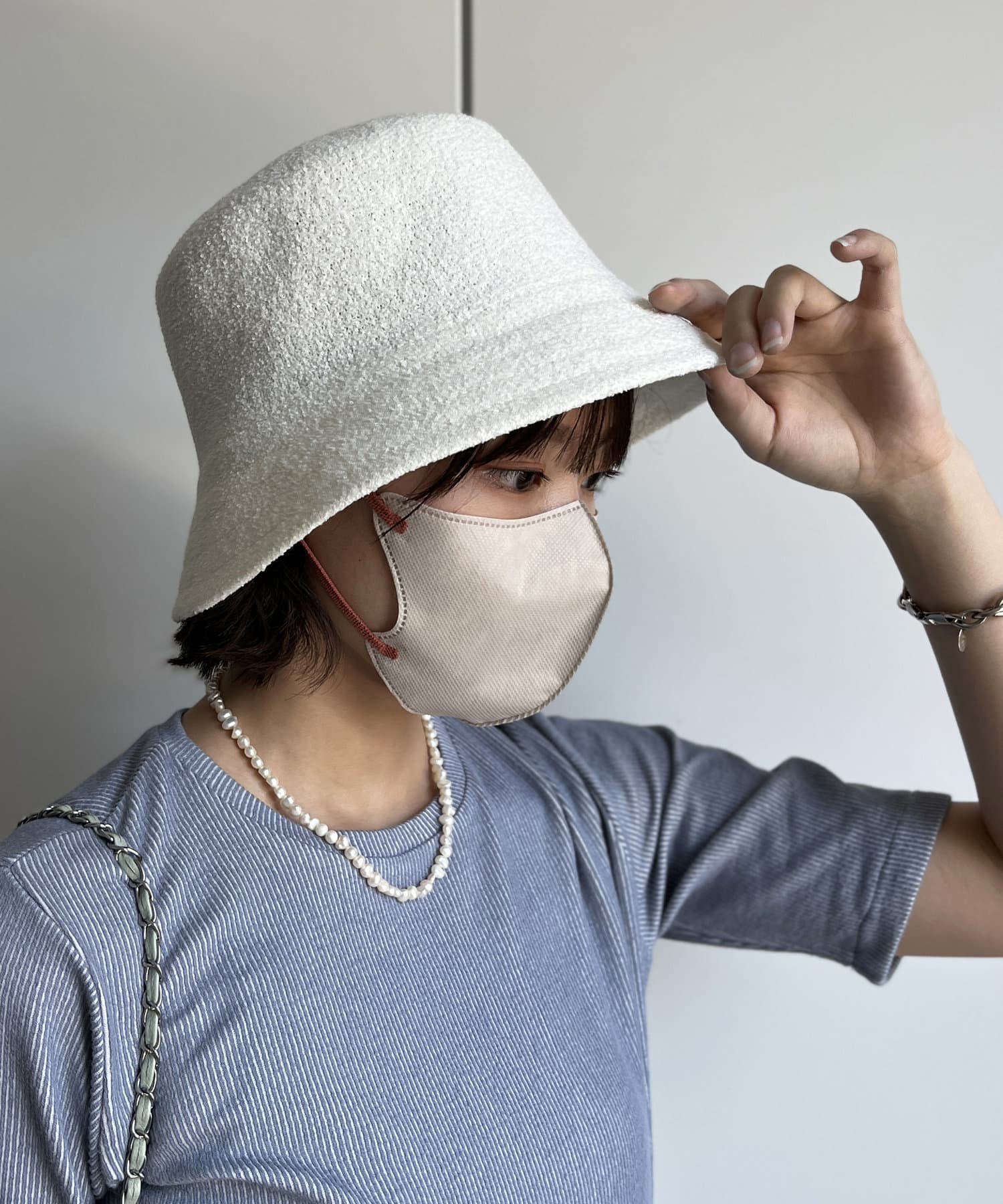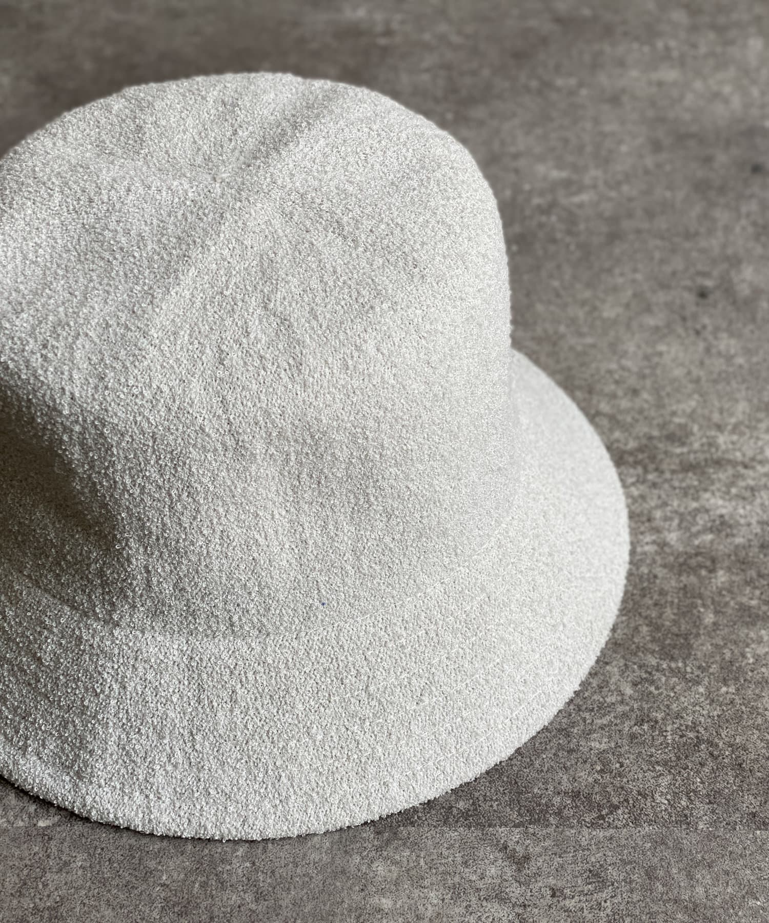肌触りのよいパイル素材を採用し、軽量で被りやすいバケットハット。