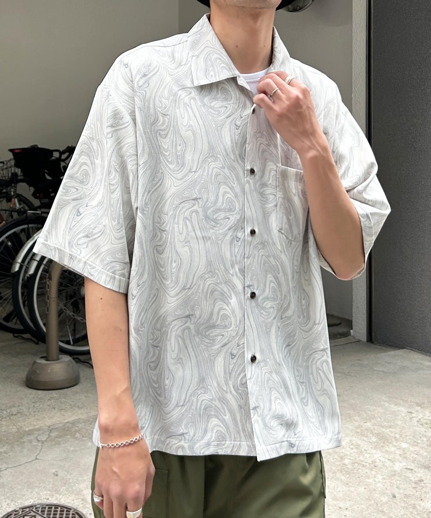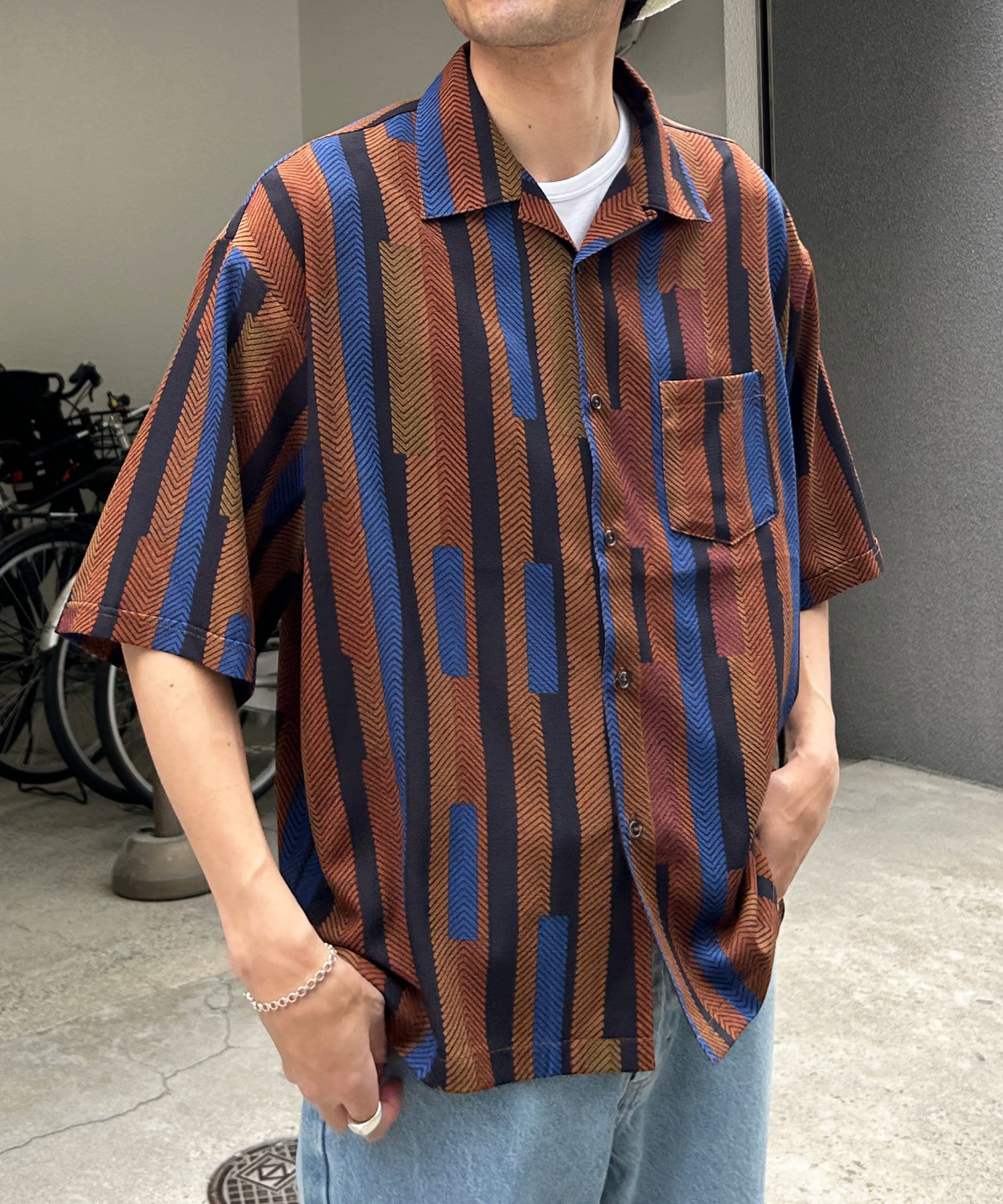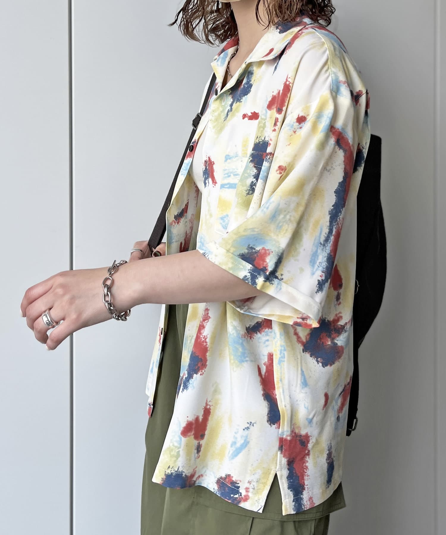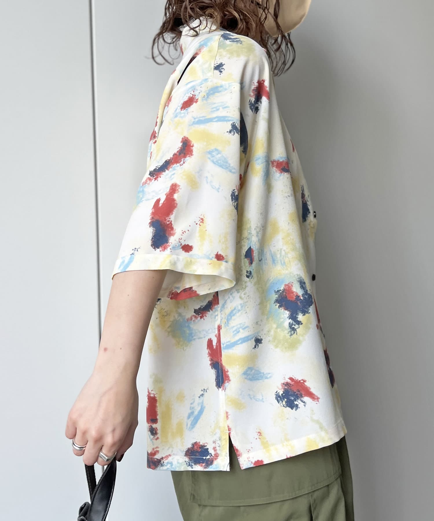 高級感のあるサラッとした素材のシャツです、トップスの主役としてコーデのアクセントにぴったりな総柄開襟シャツです。