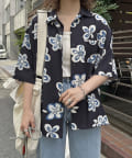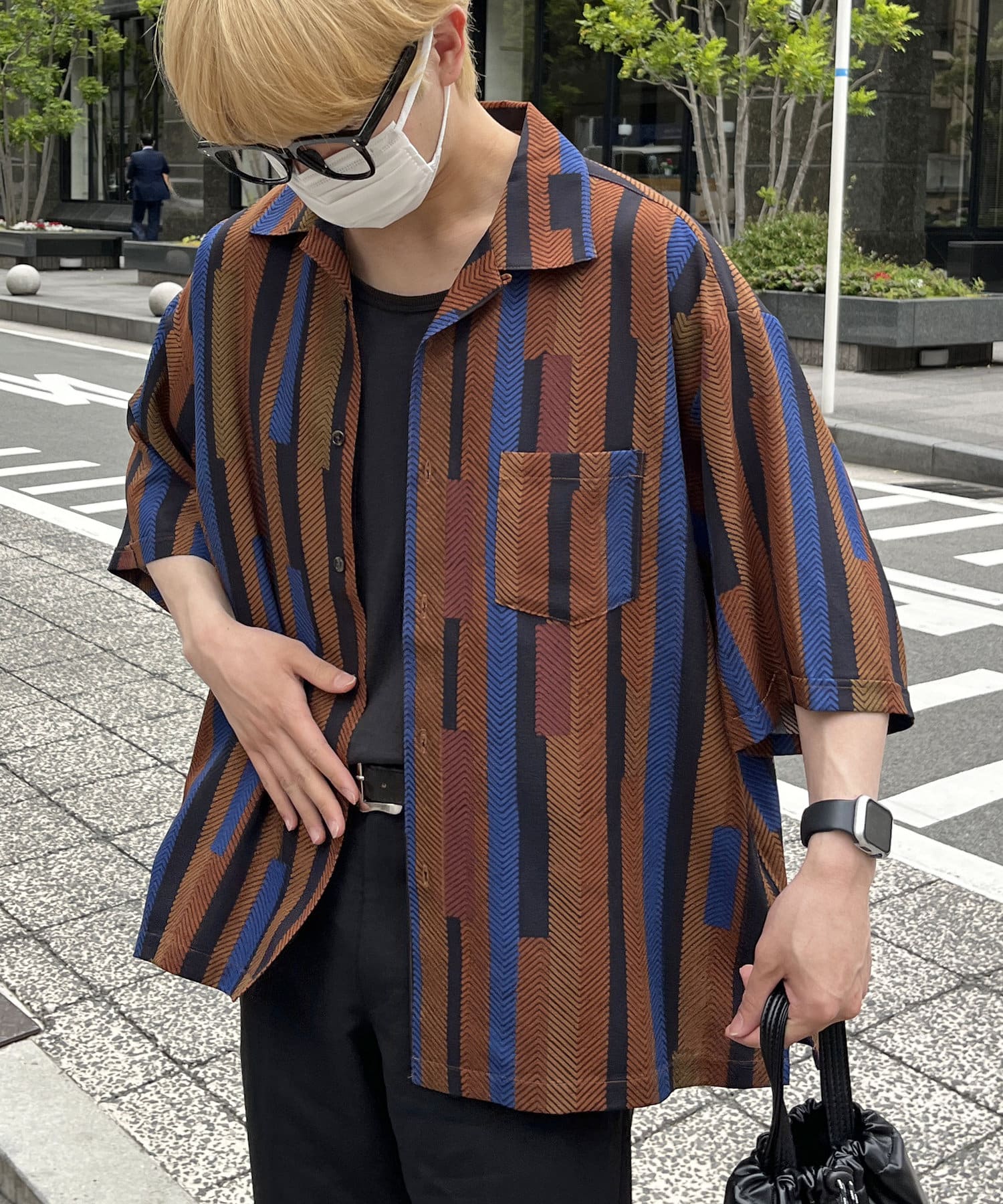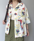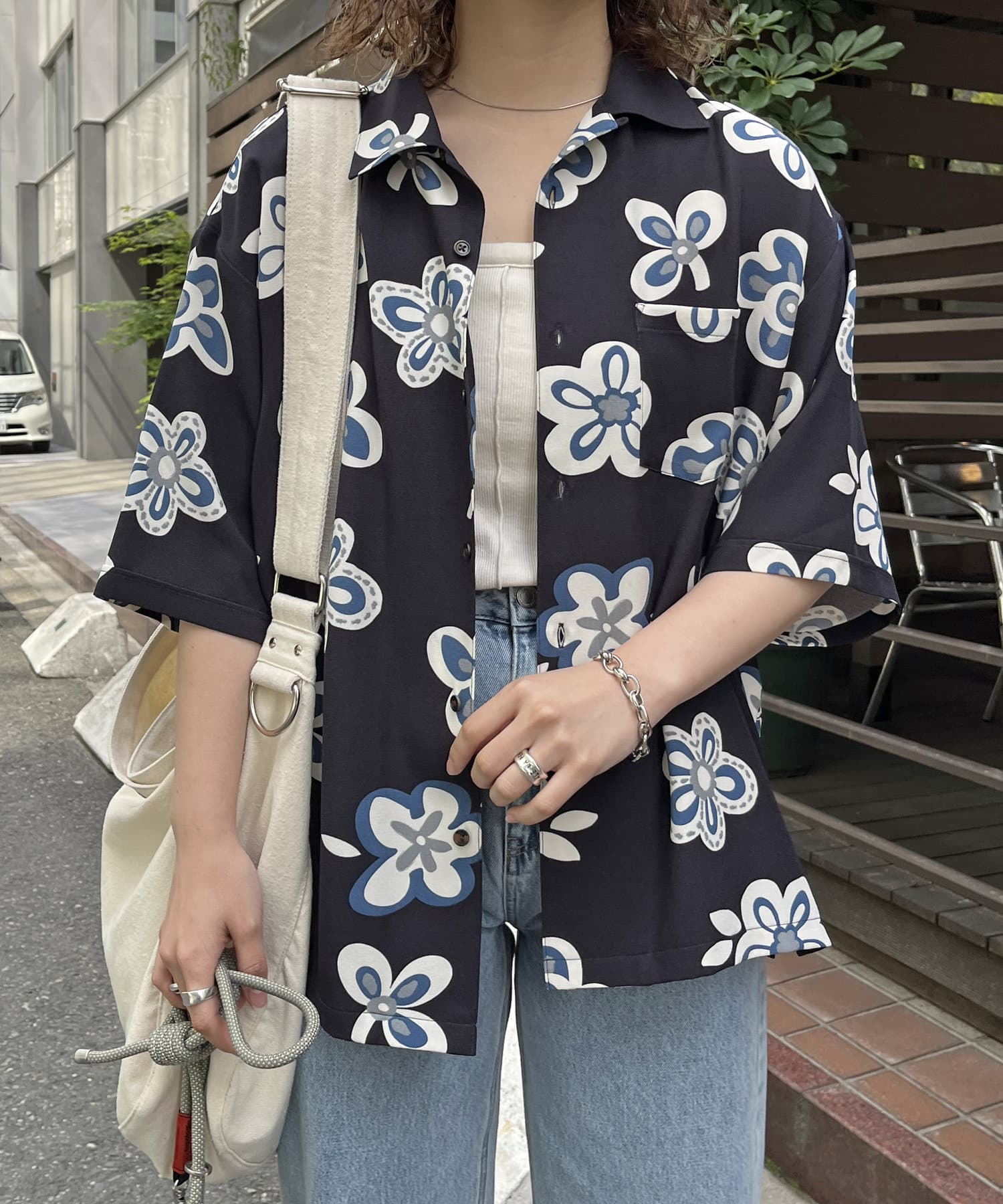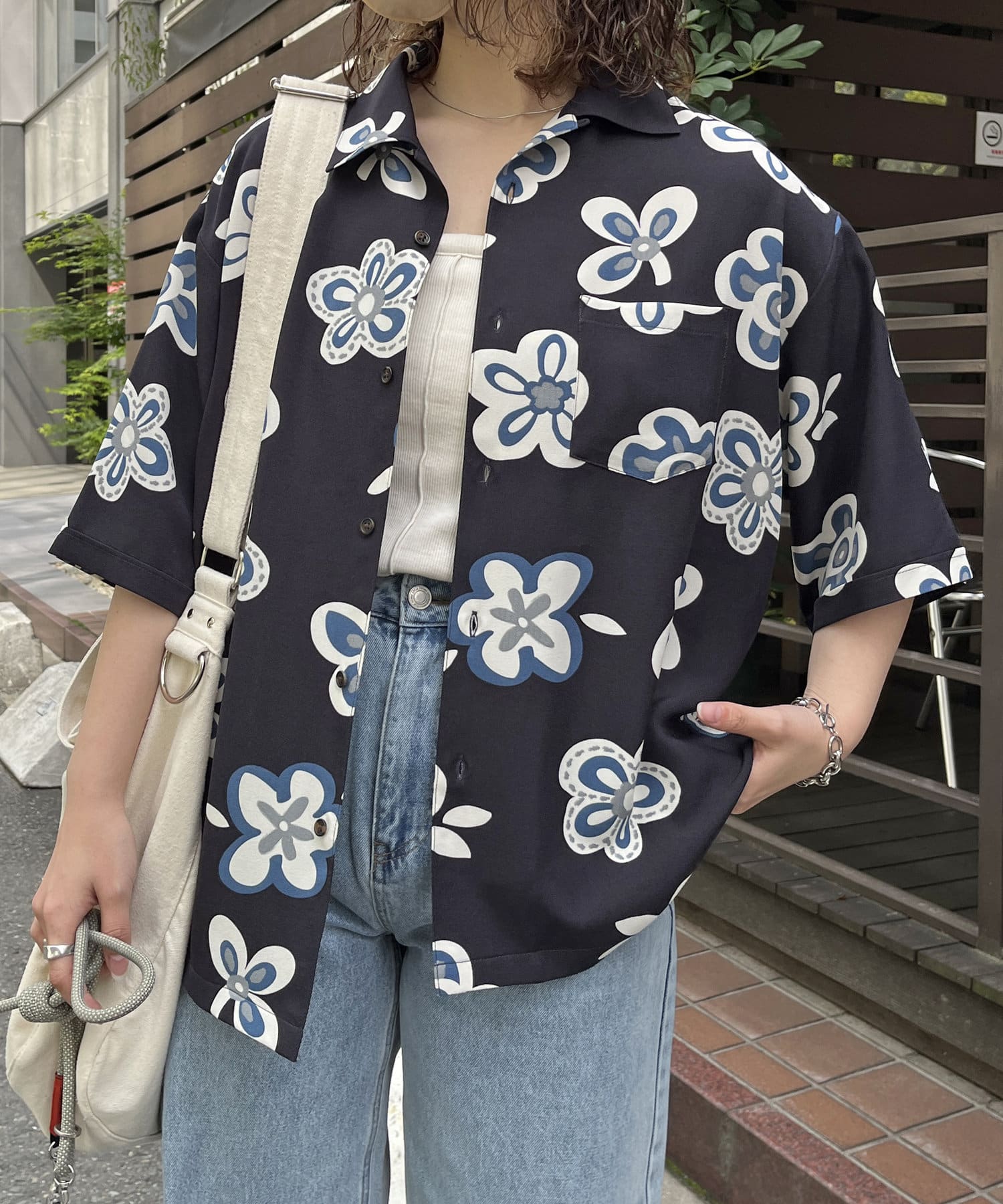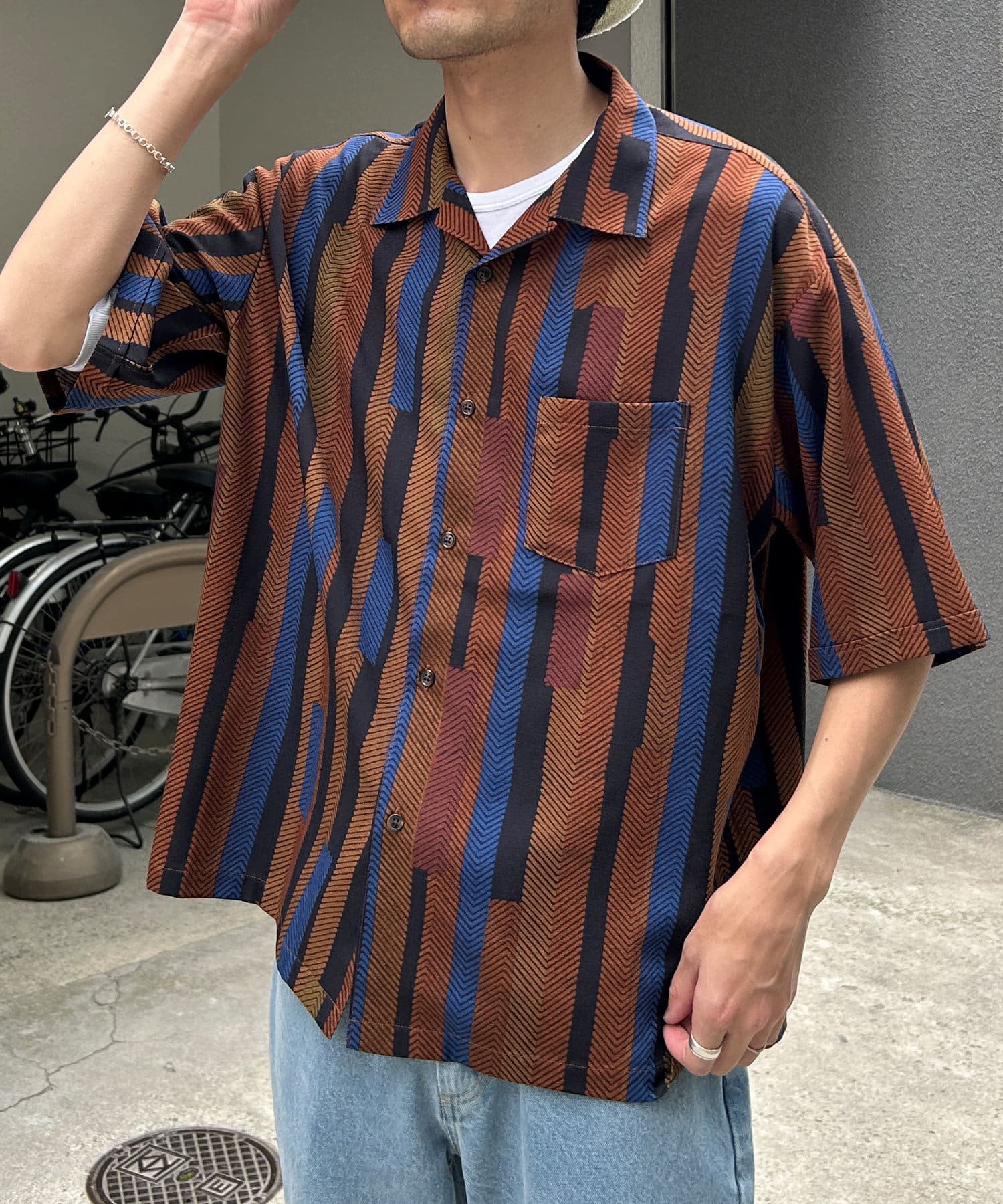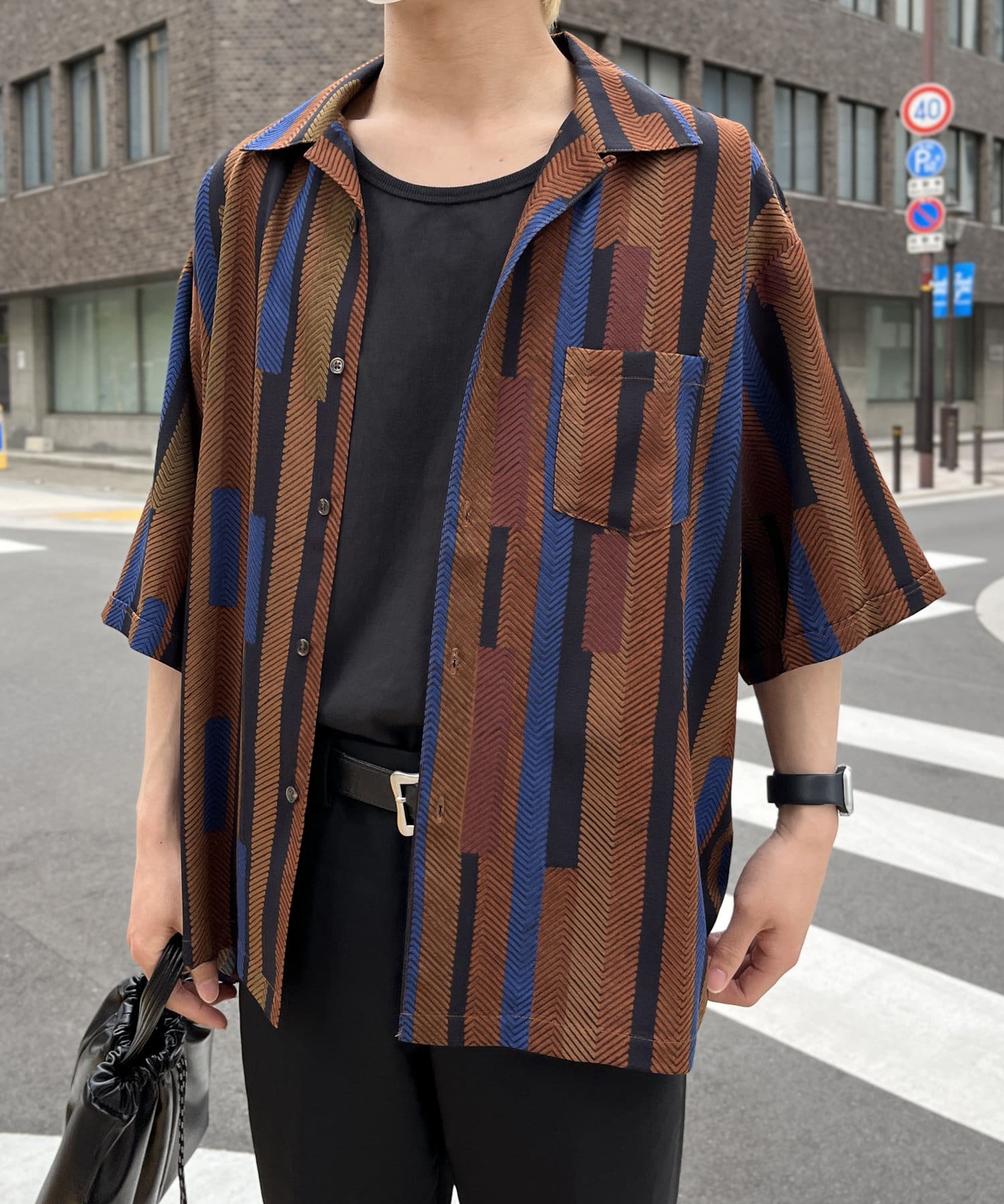 高級感のあるサラッとした素材のシャツです、トップスの主役としてコーデのアクセントにぴったりな総柄開襟シャツです。