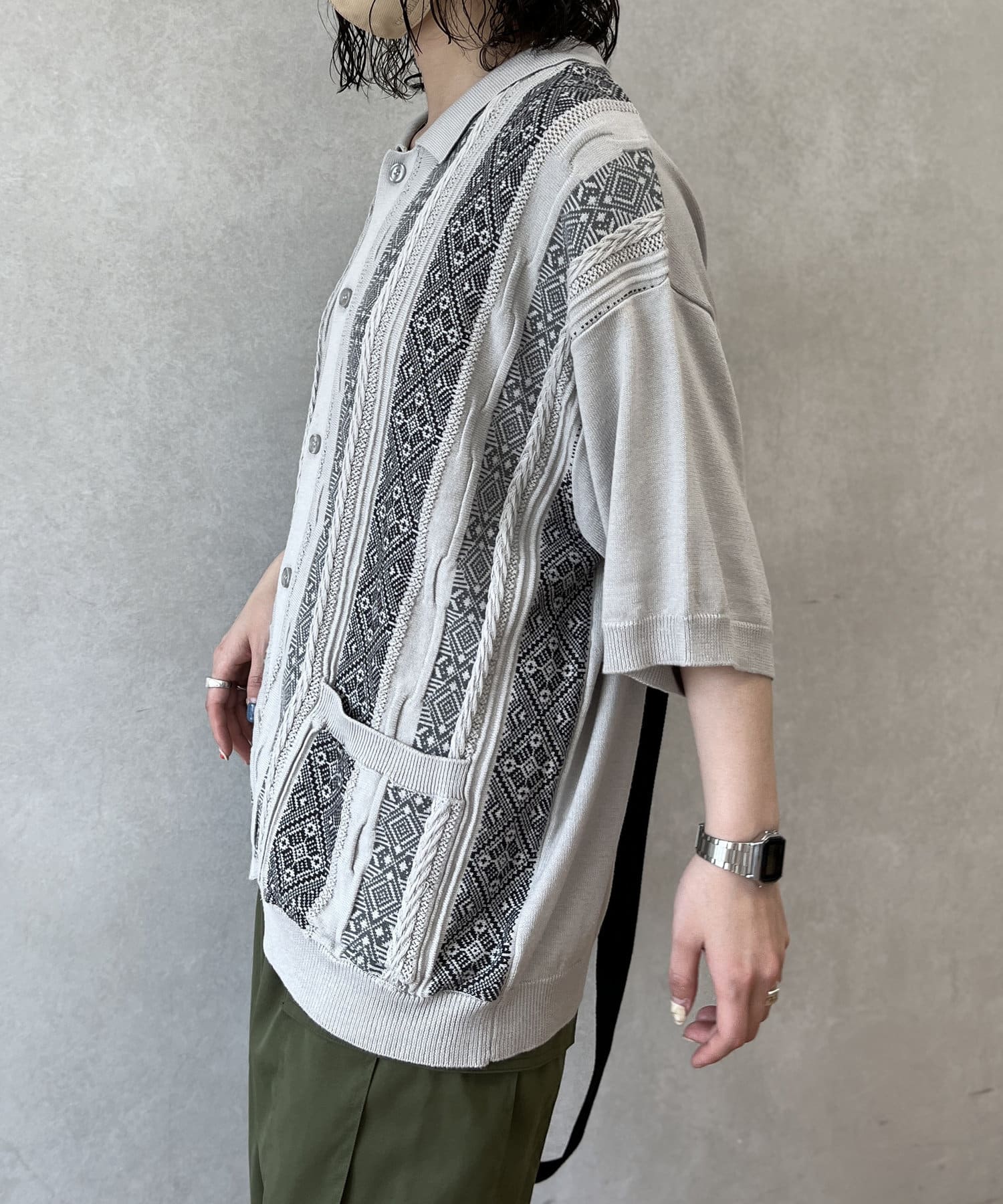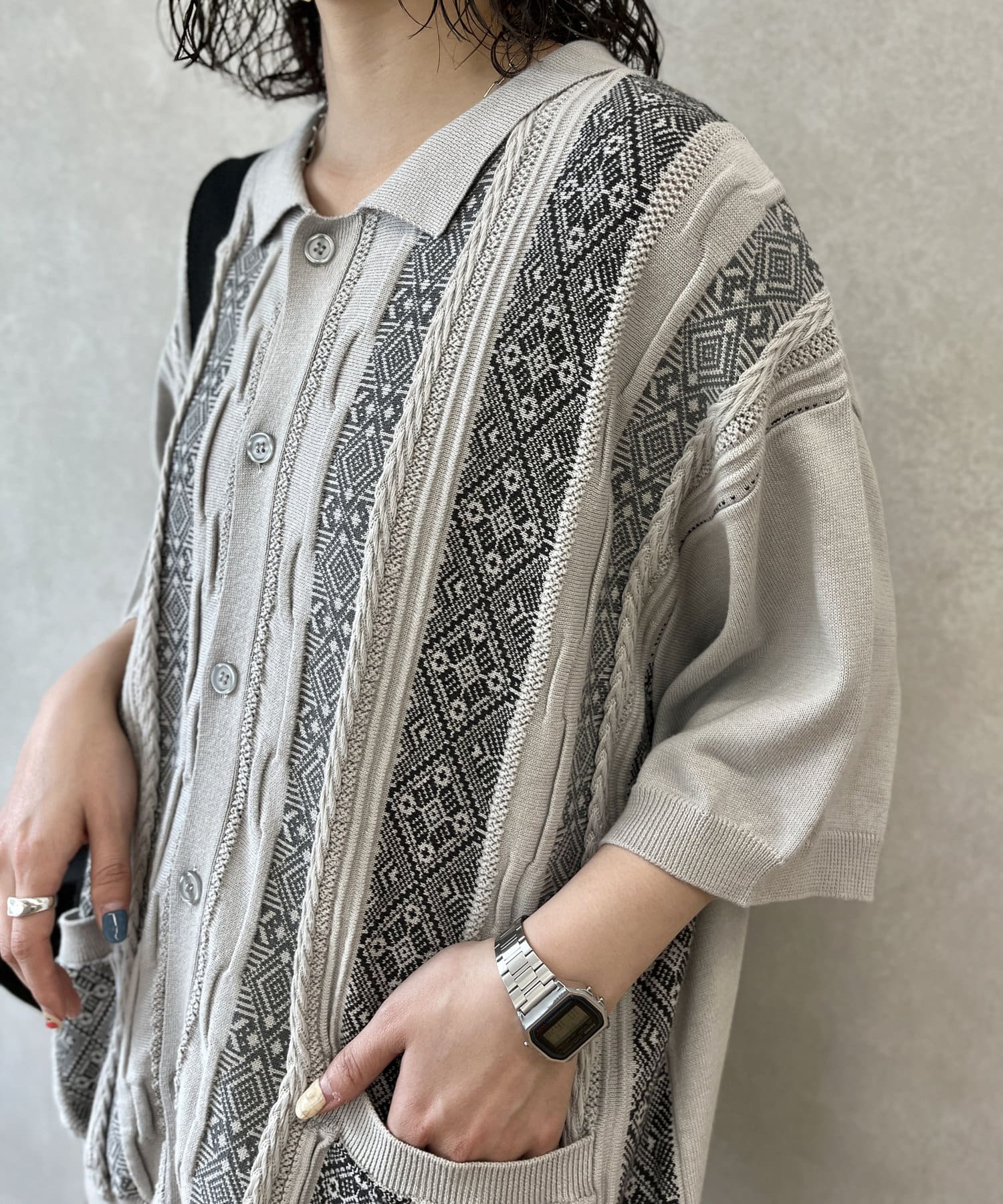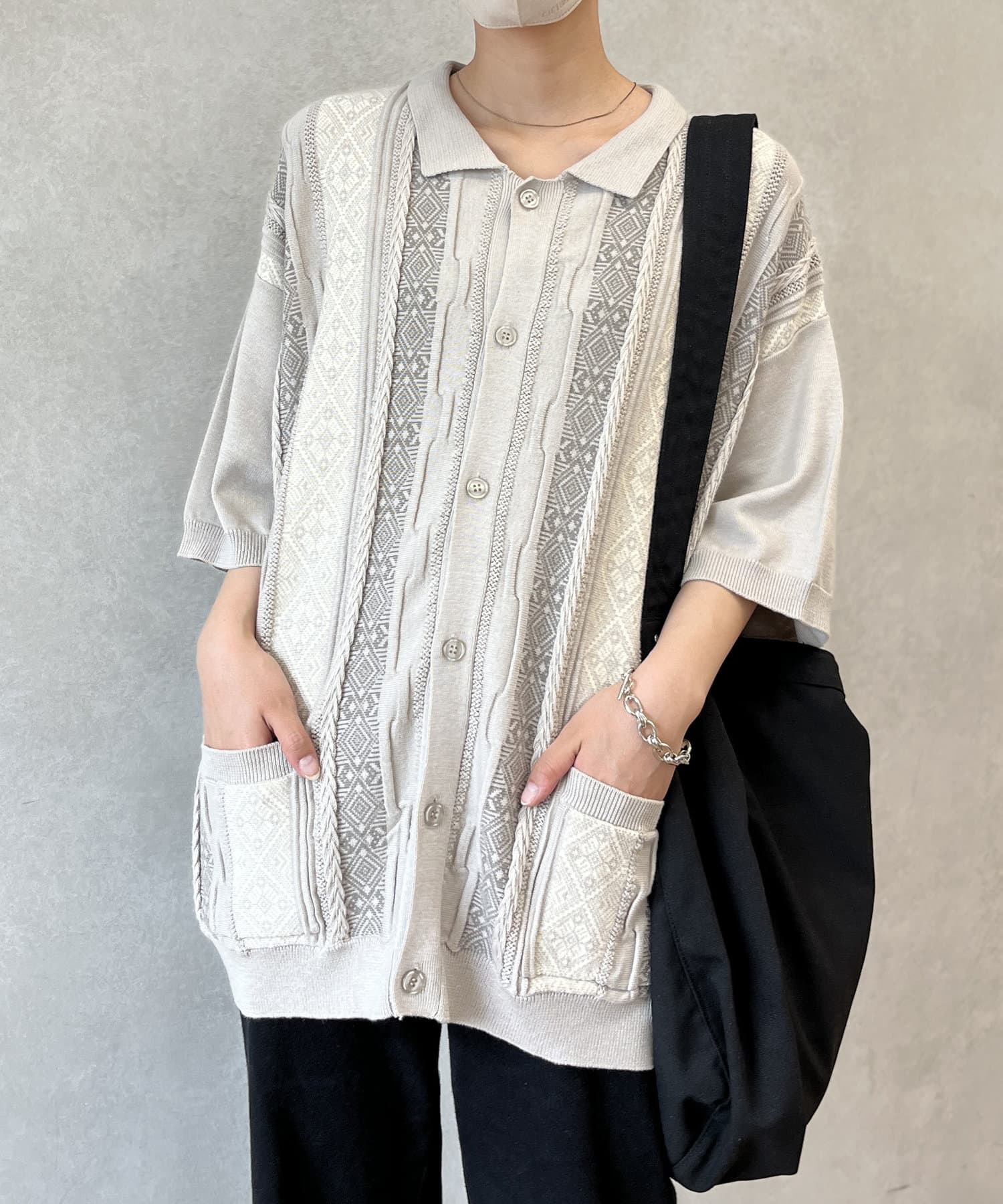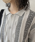 ・ジャガード柄に仕上げたデザイン性のあるニットポロカーデ。