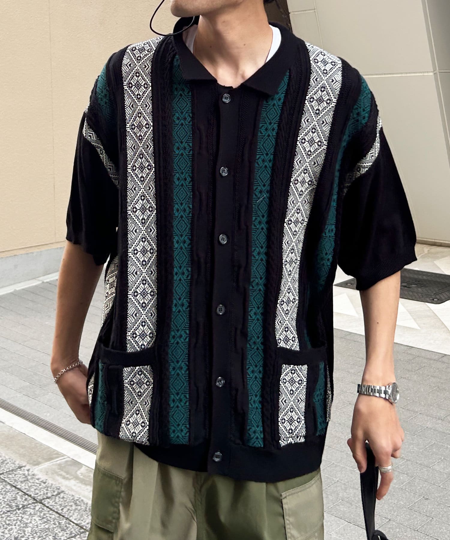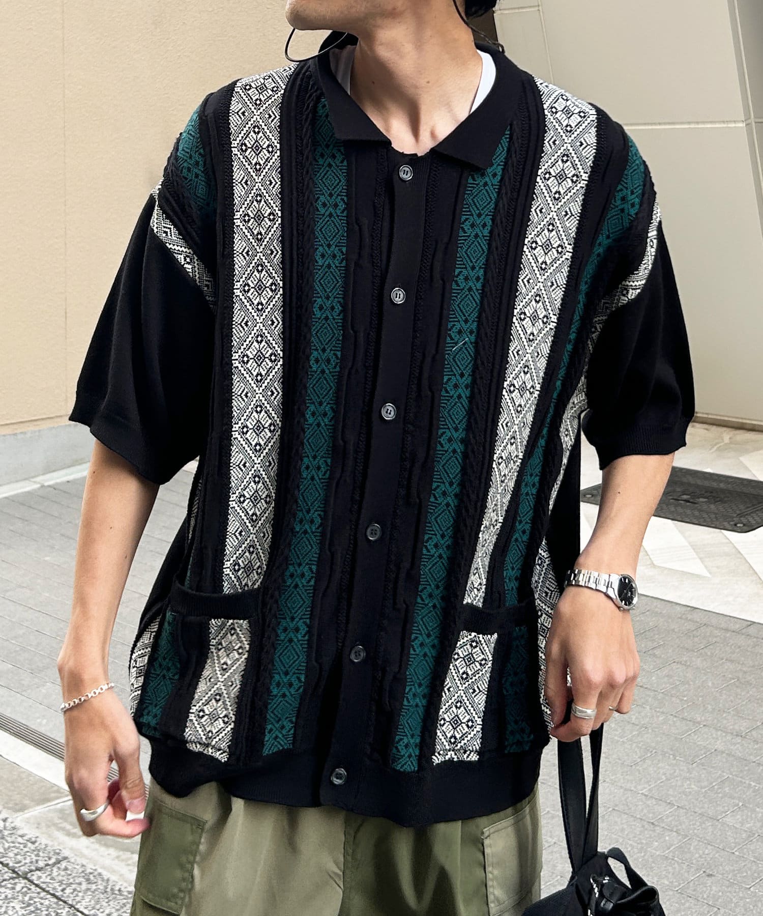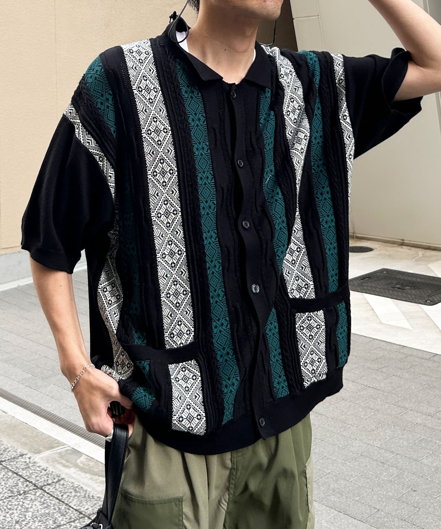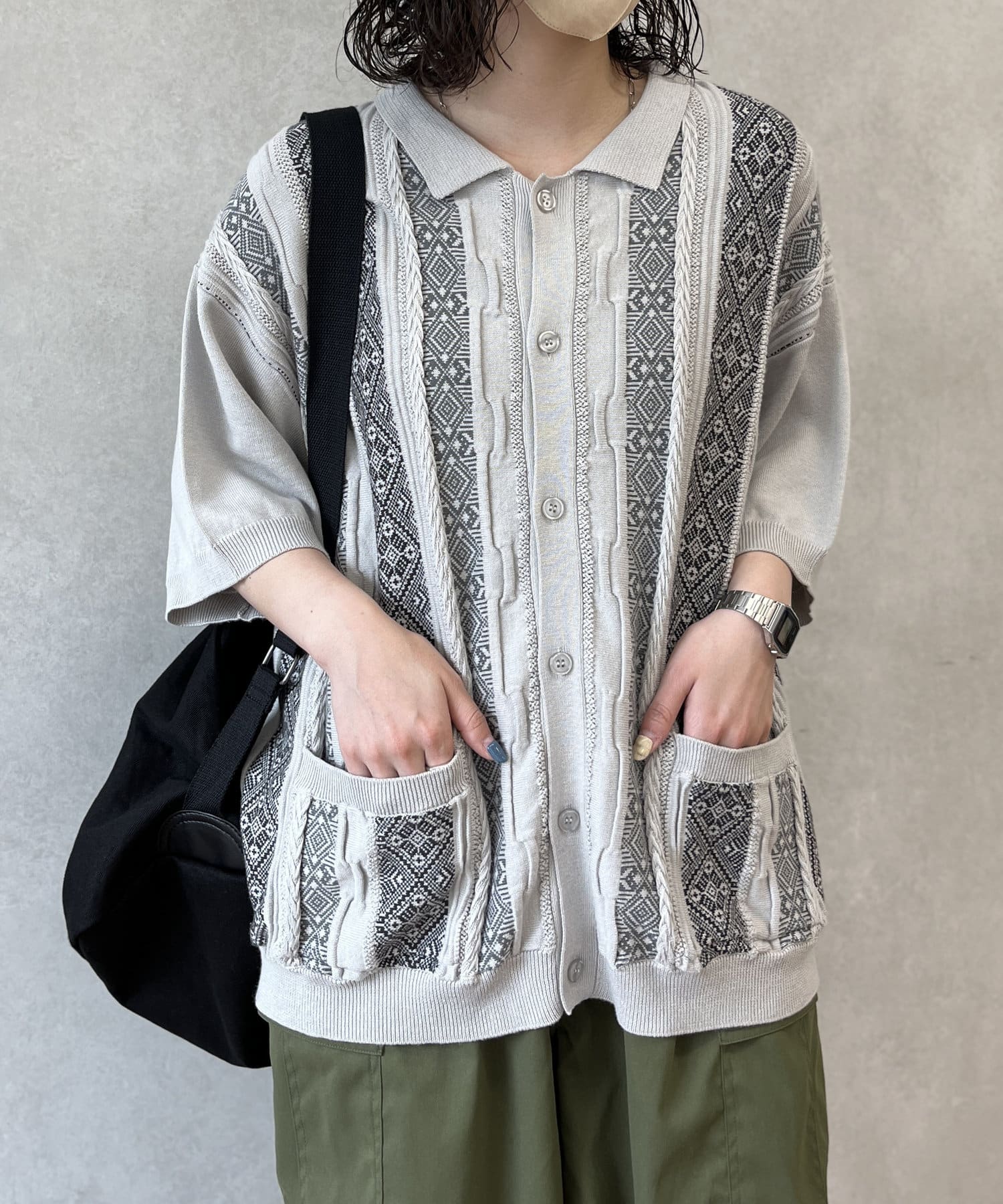 古着ライクなジャガード編みがユニセックスでおすすめです。