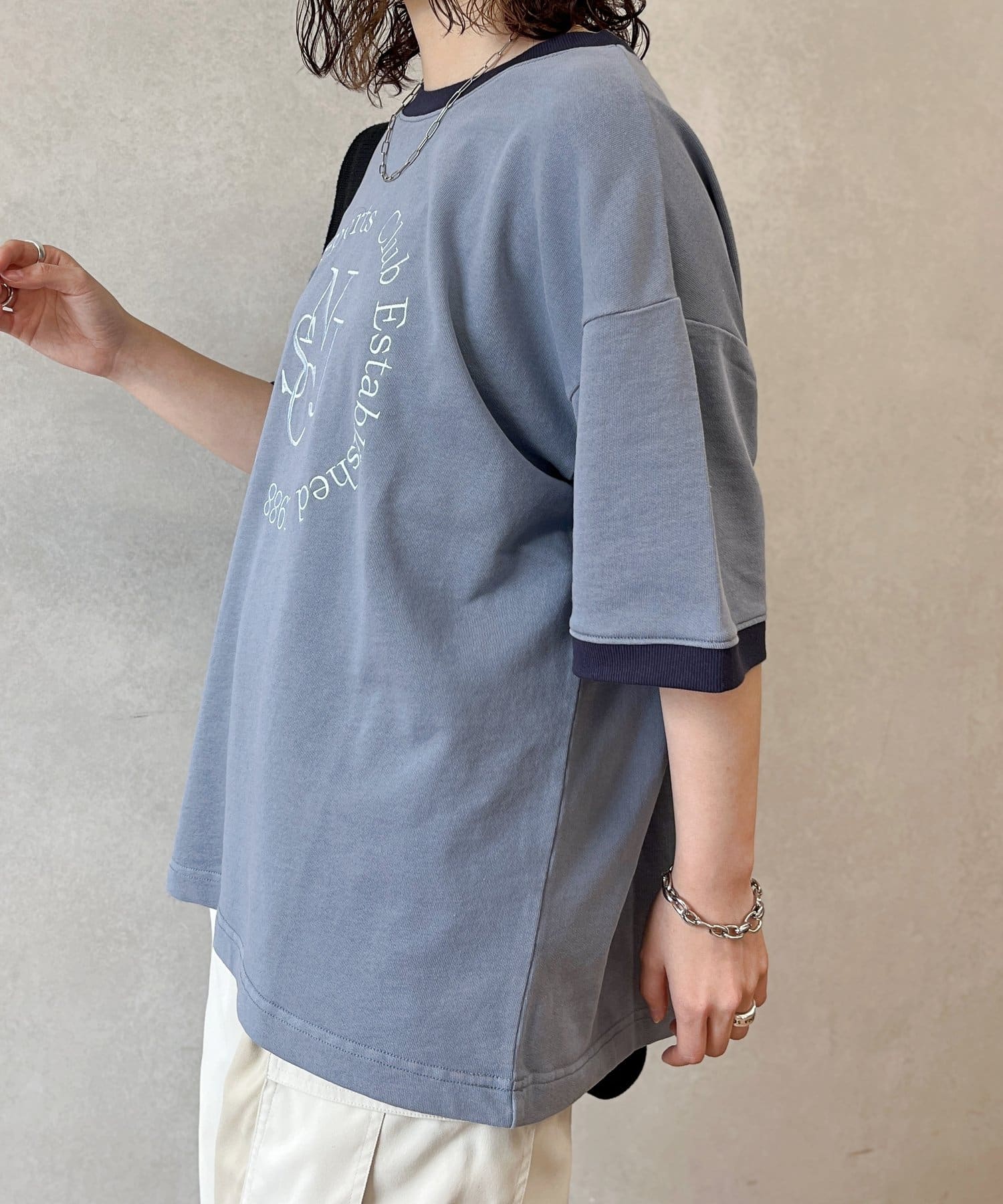 ピグメントミニ裏毛刺繍半袖スウェット