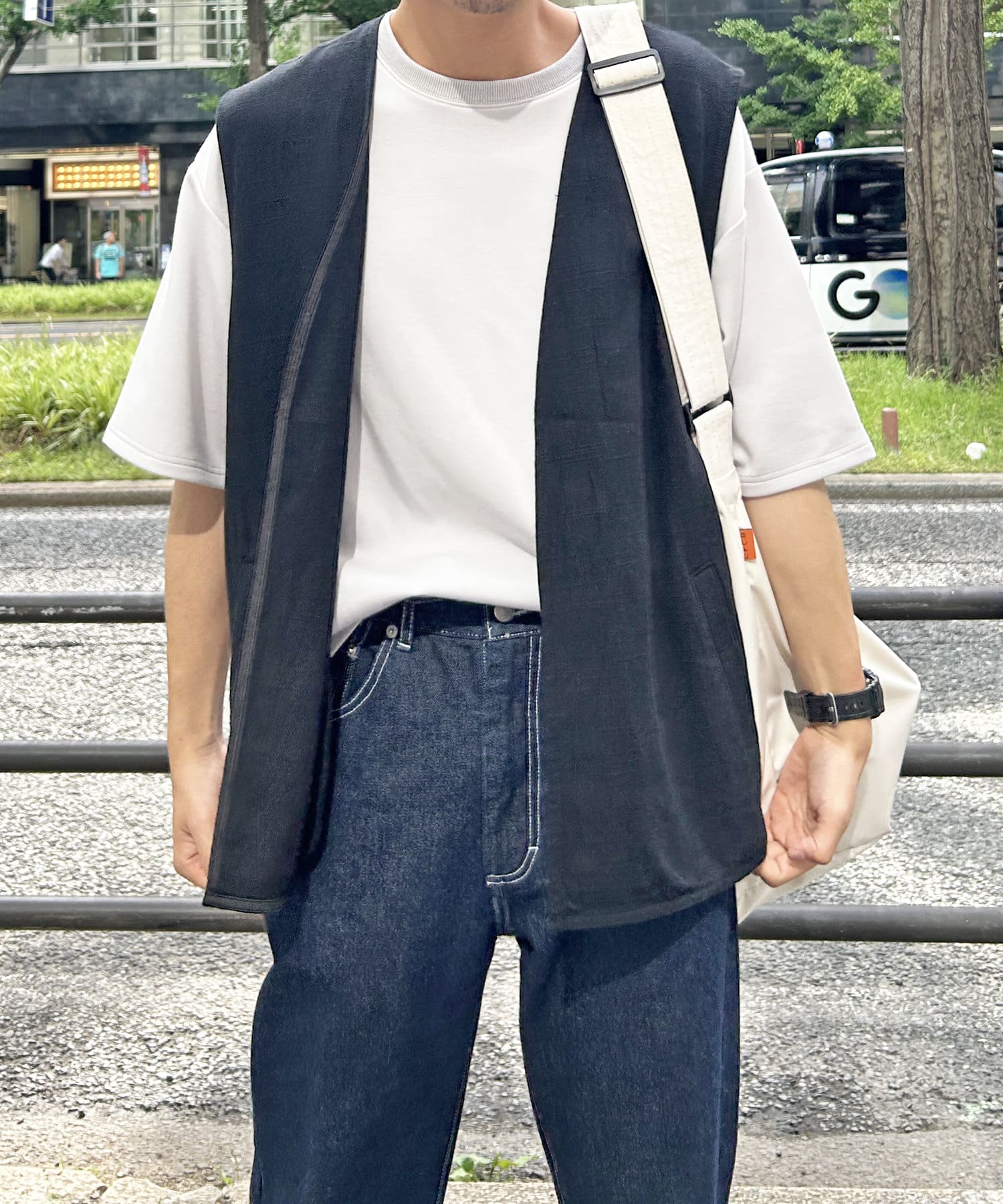 ・夏のレイヤードコーデにピッタリな綿麻素材。
