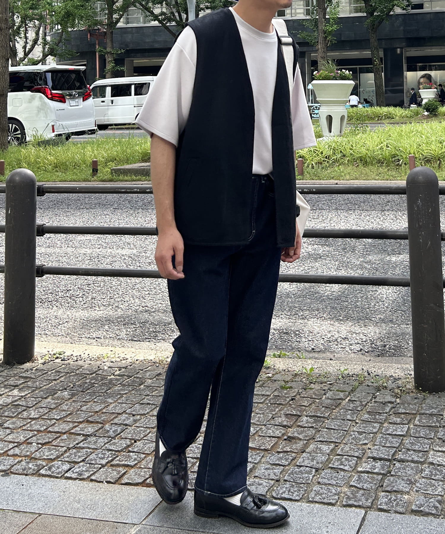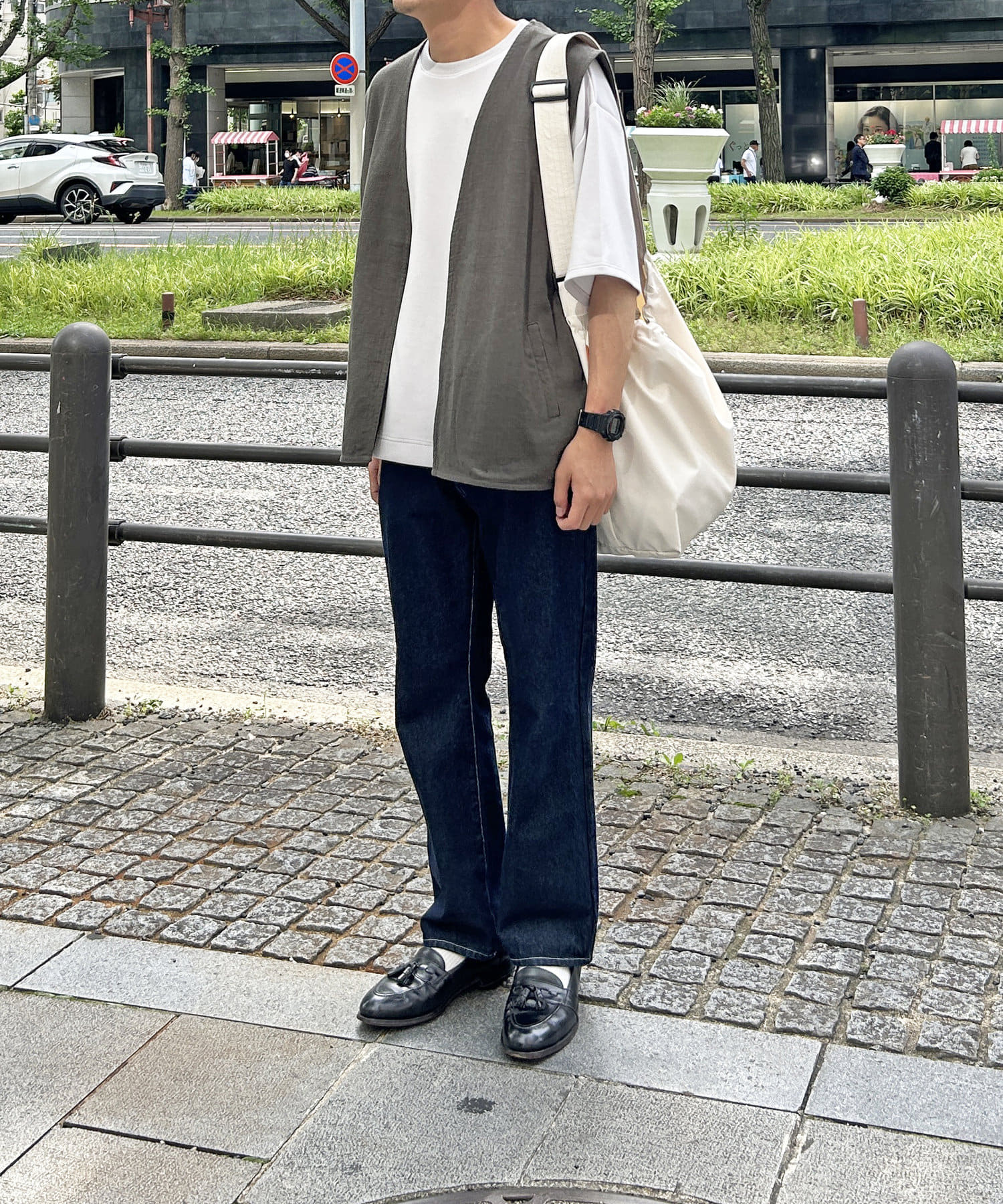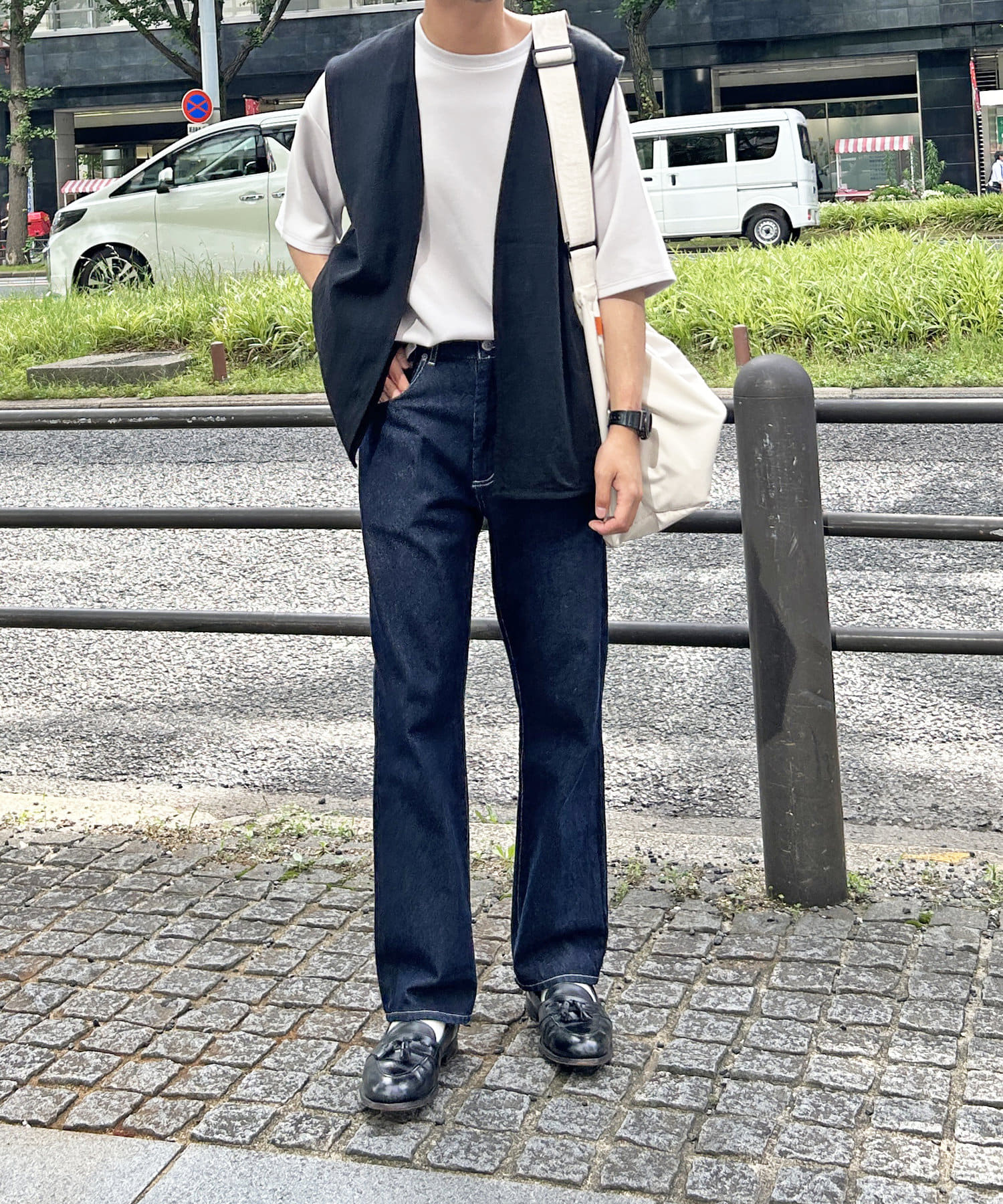 デニムやカーゴパンツ、スラックスなど様々なボトムと好相性◎