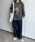 ゆとりのあるサイズ感なので、カーゴパンツやデニムパンツなどのカジュアルなアイテムと合わせやすいです。