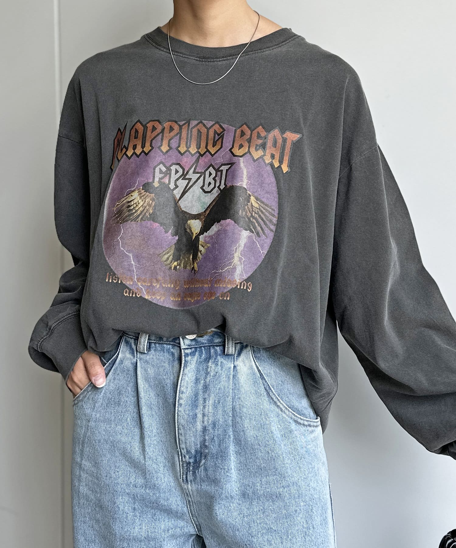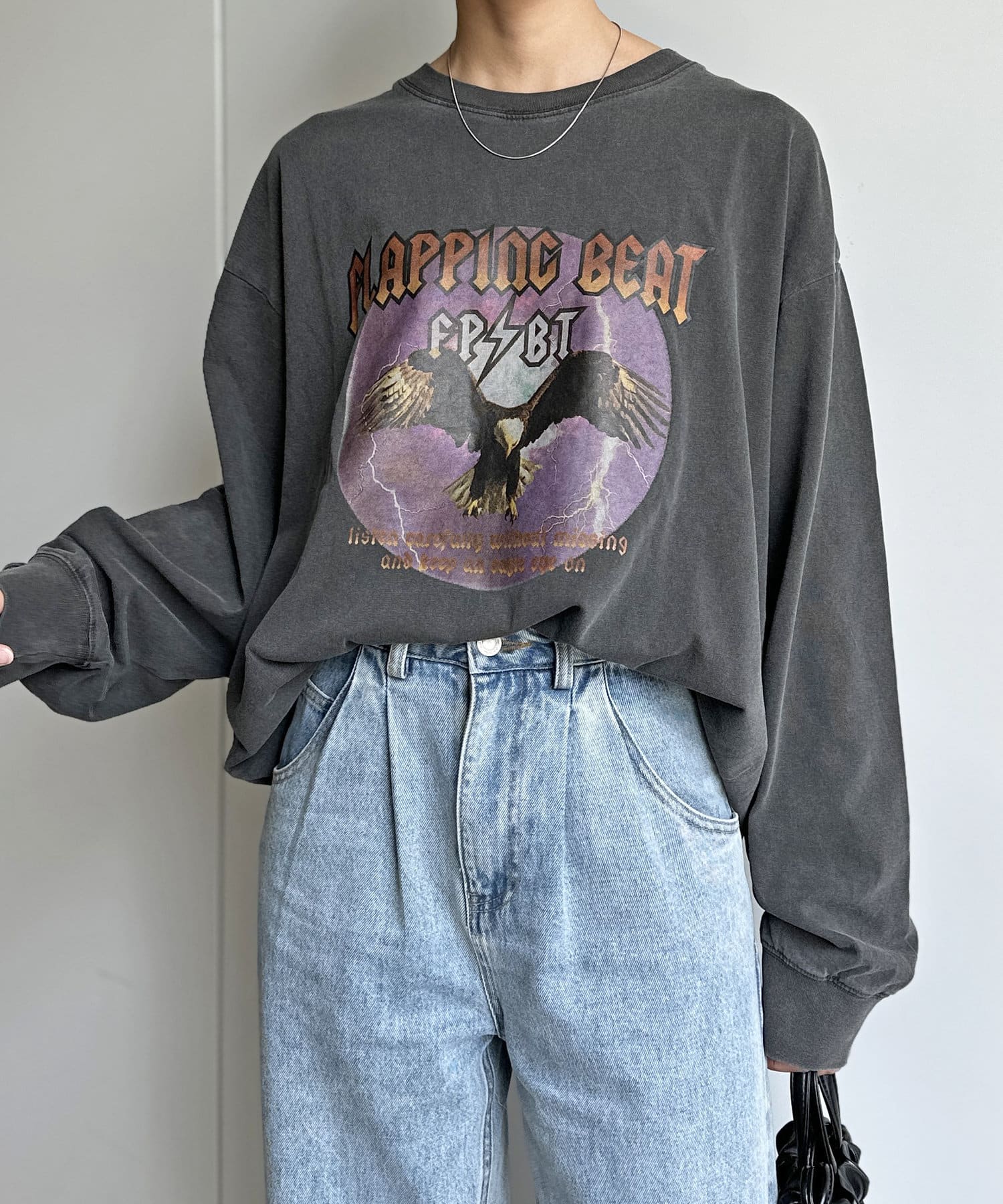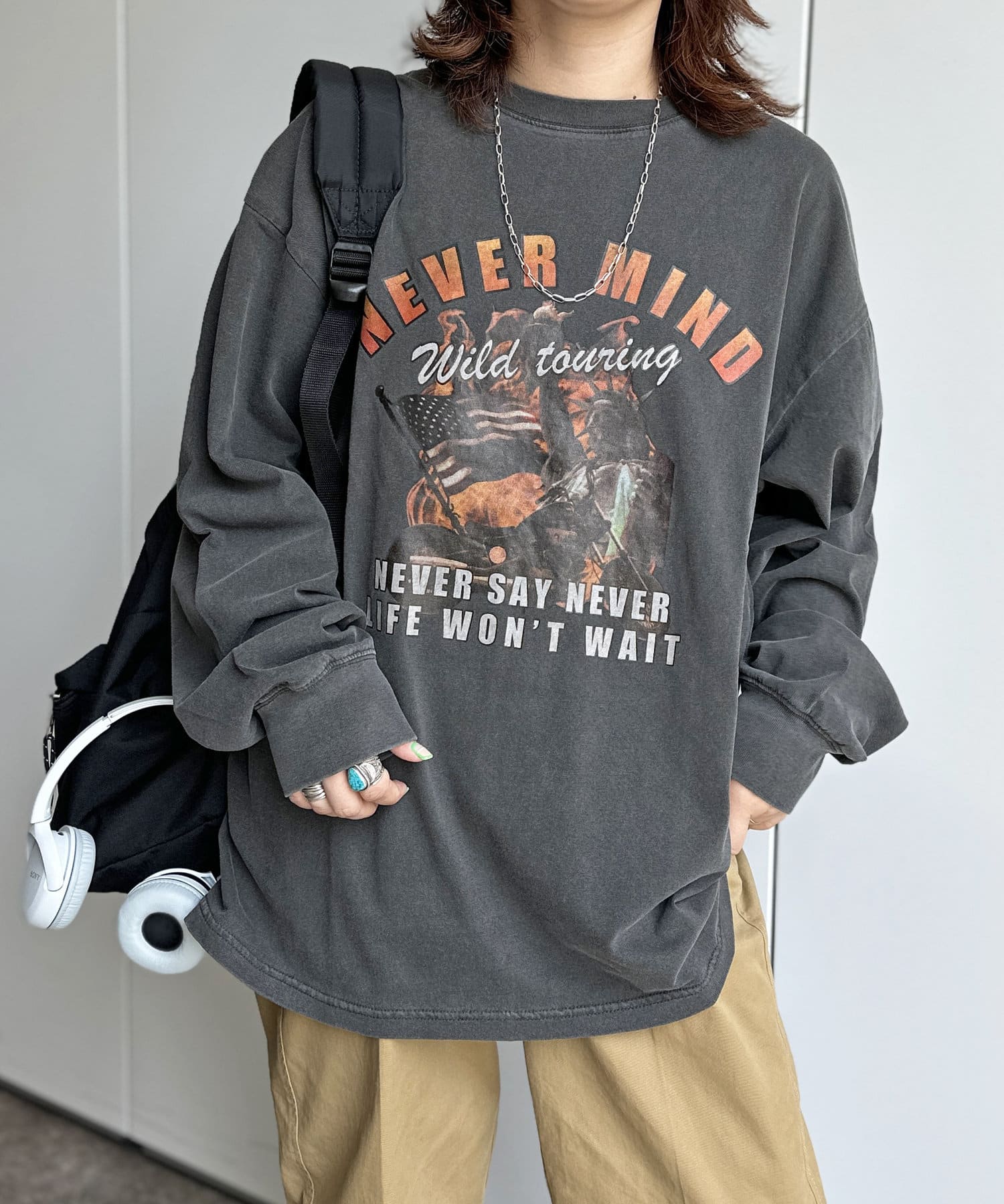 古着ライクなロックプリントが目を惹くロンTが登場。