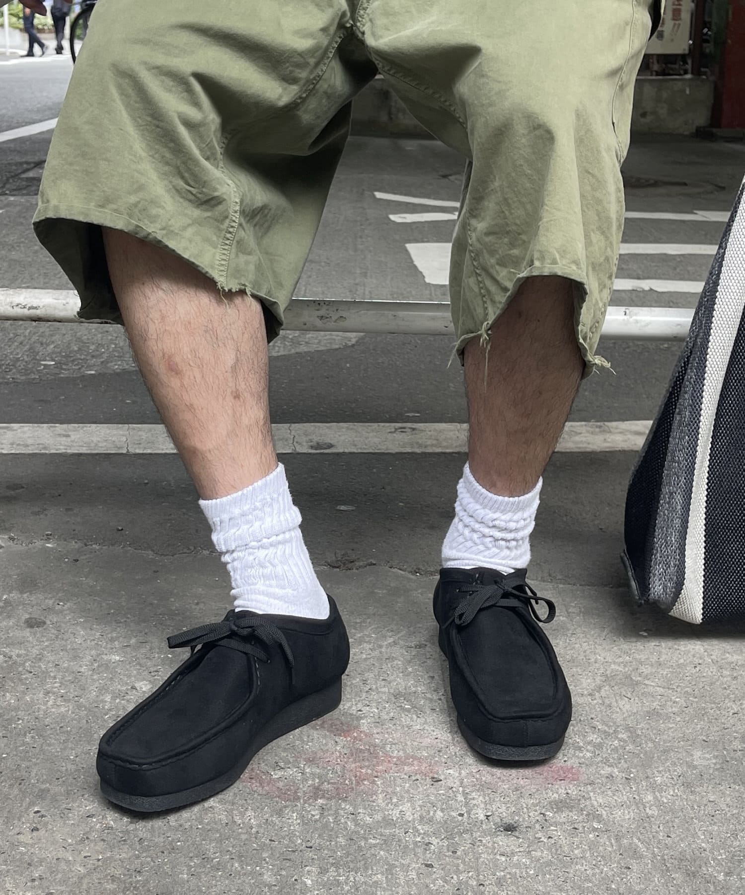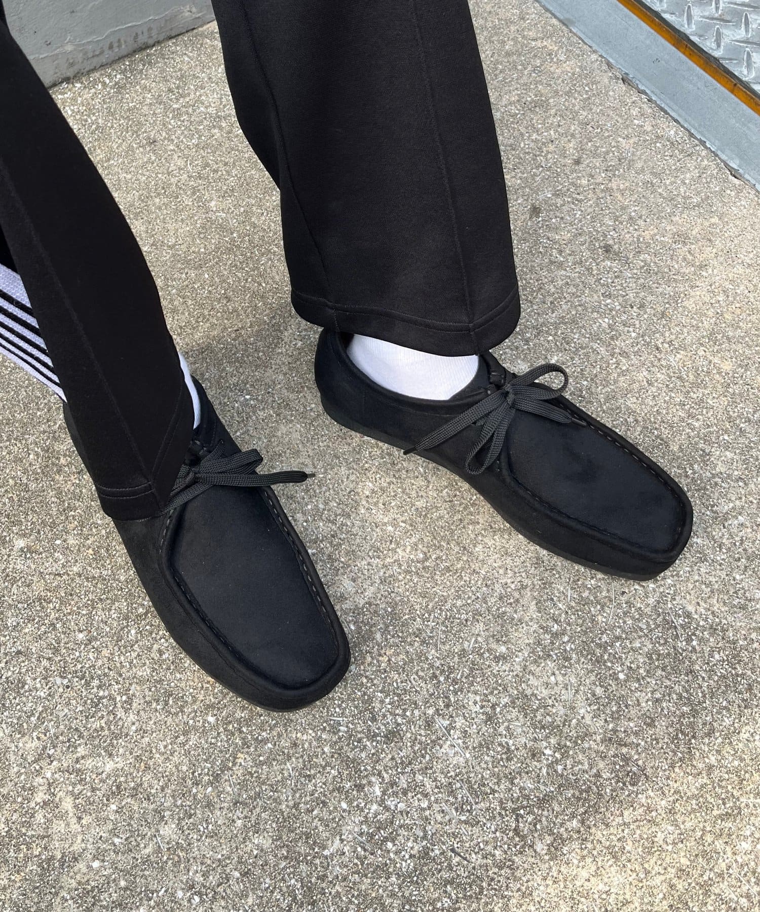 スニーカーに比べて落ち着いた雰囲気にまとまります。