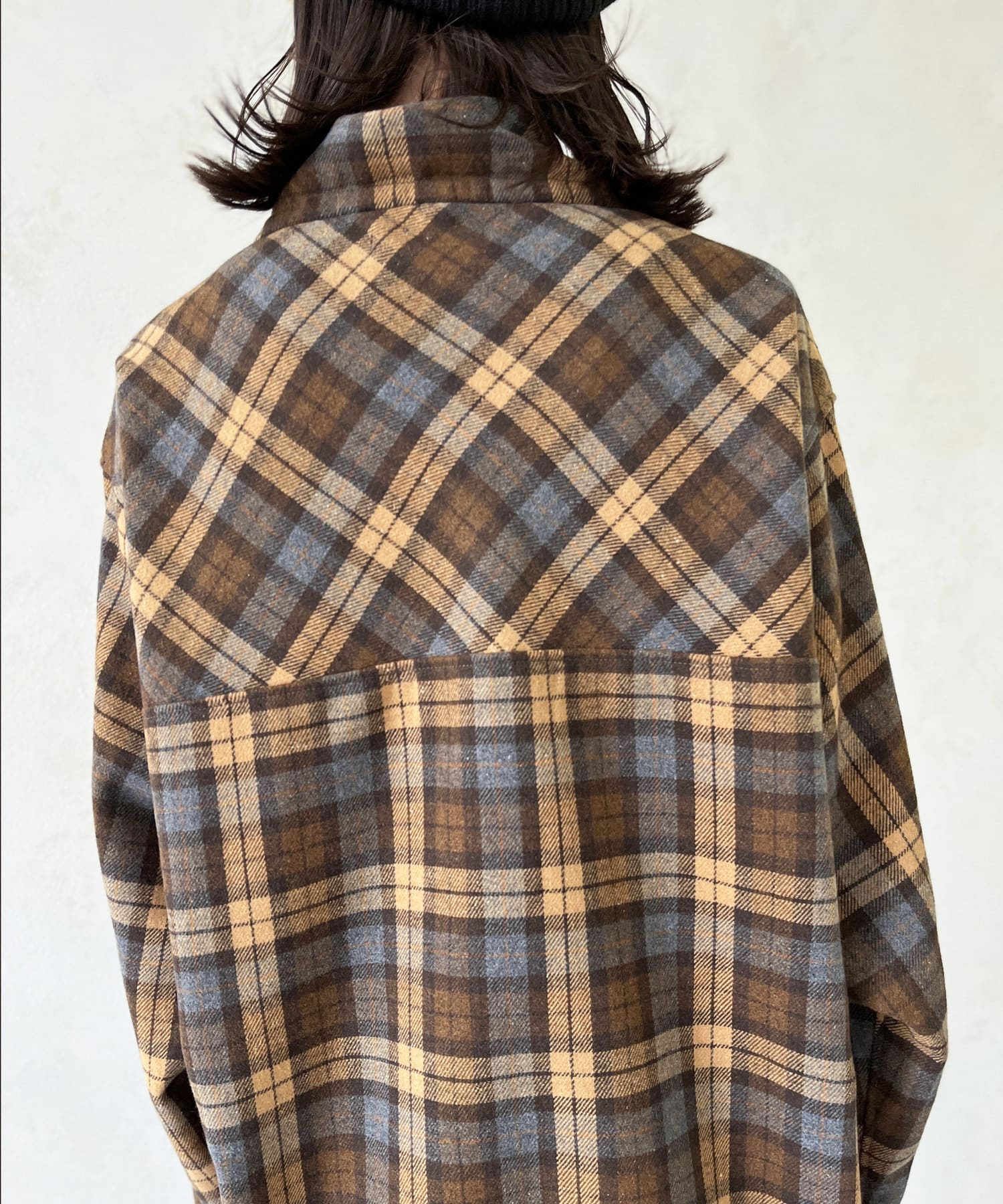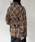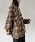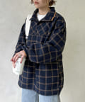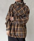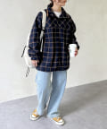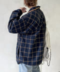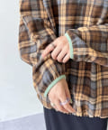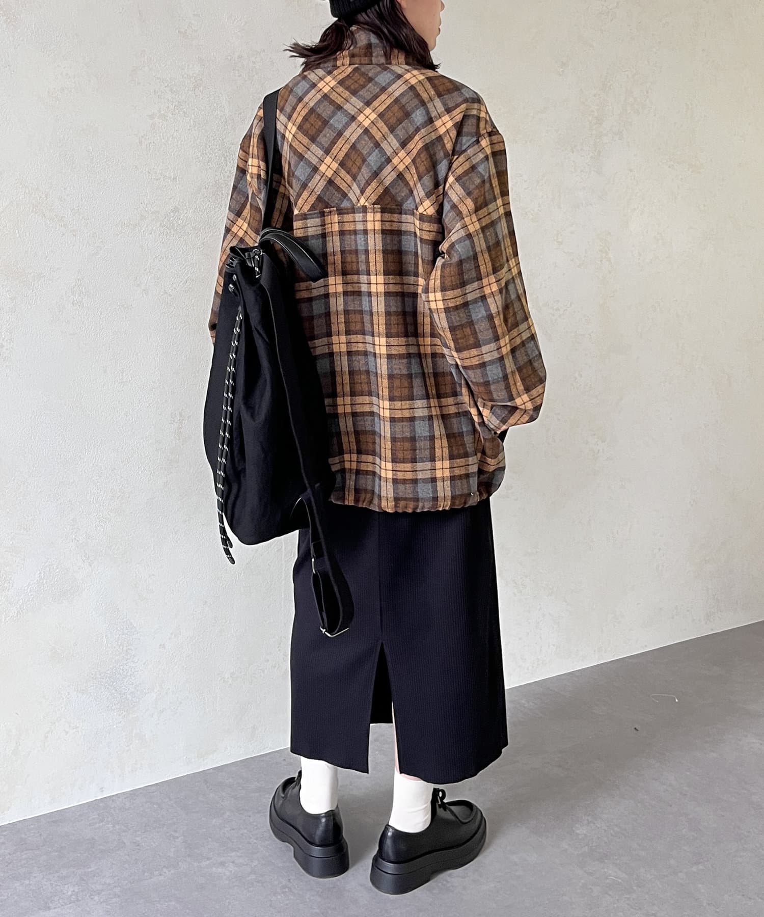 スタンドネックのチェックシャツなので、スラックスなどのきれいめなアイテムと合わせるとスタイリッシュな印象になります。