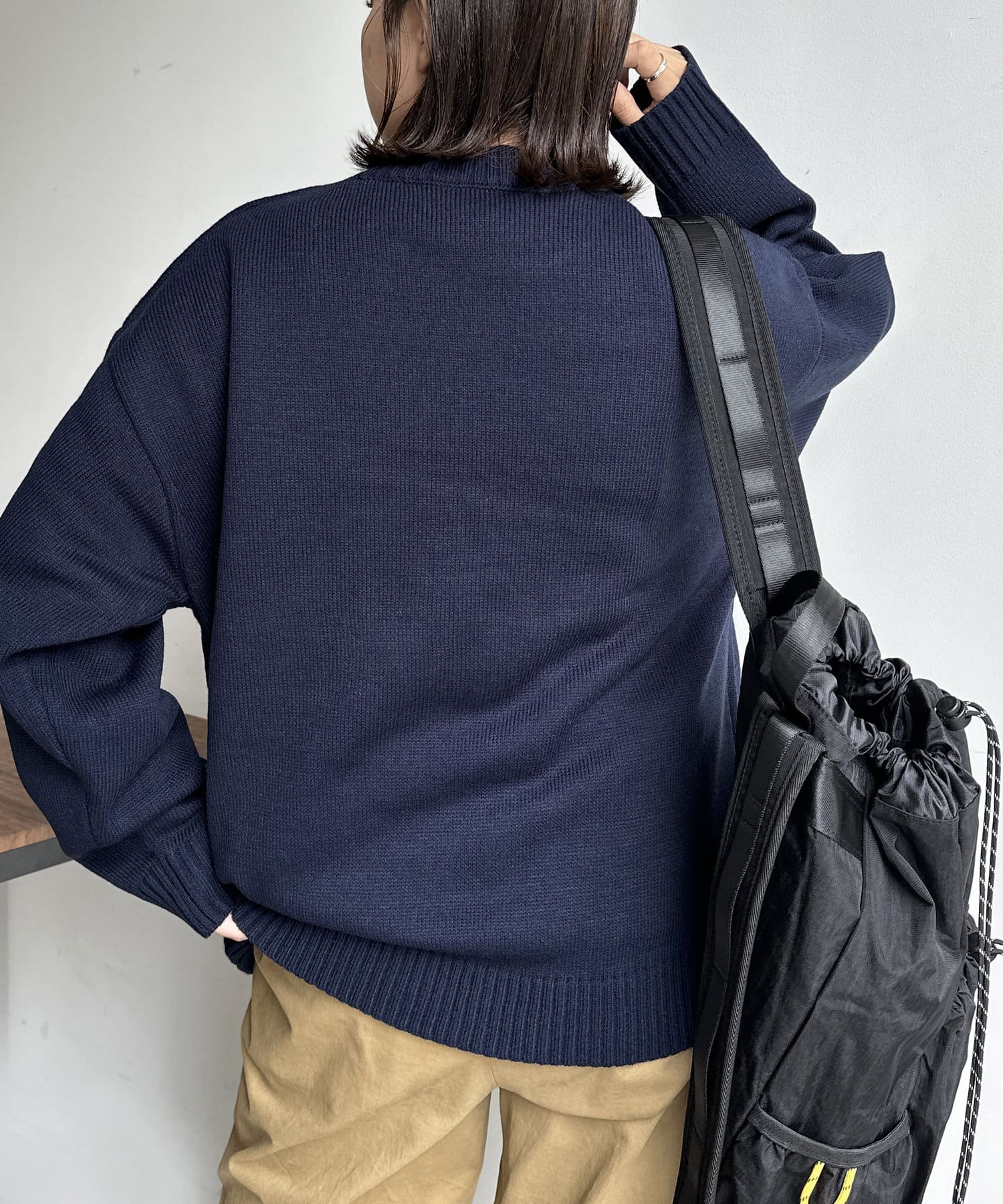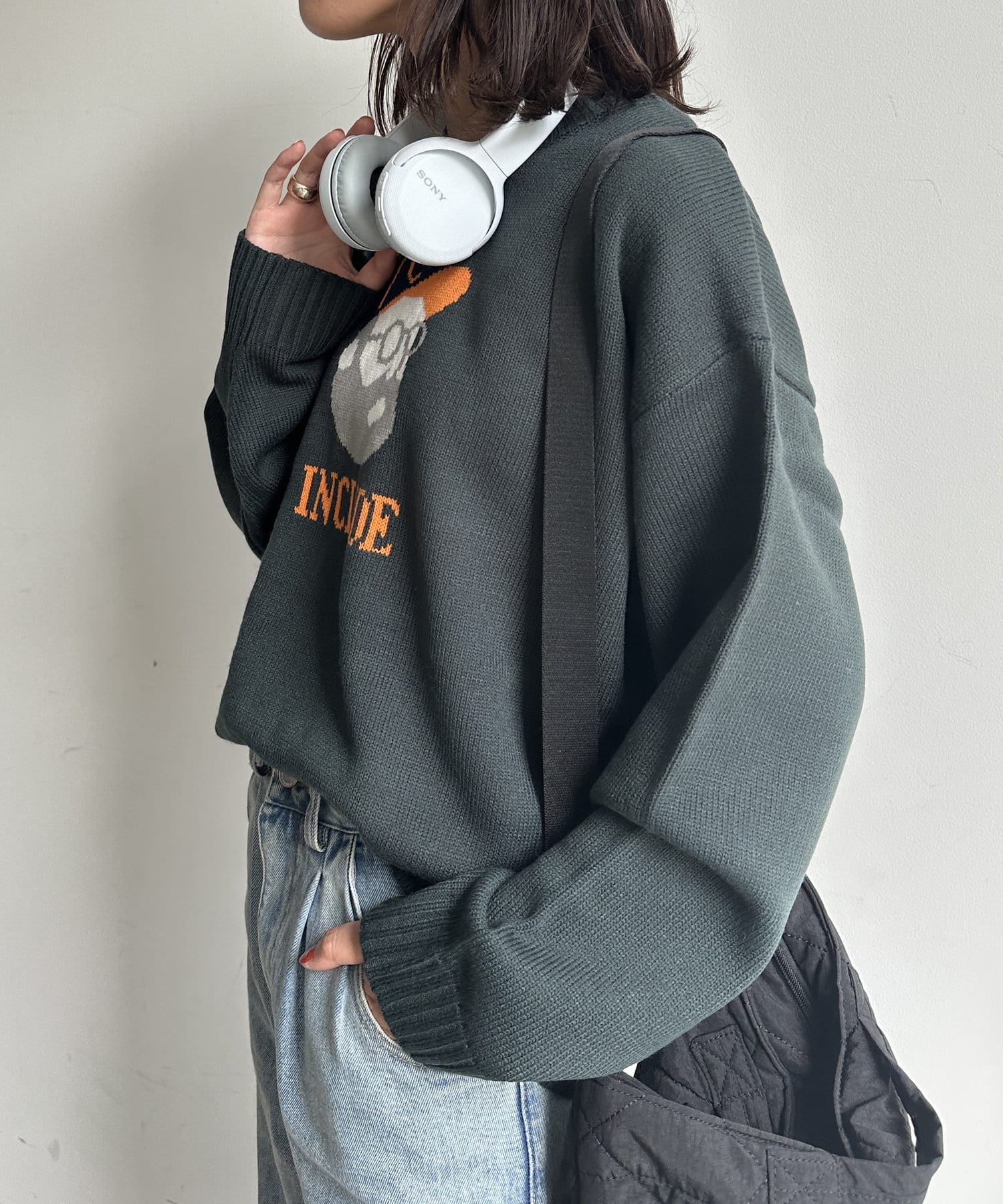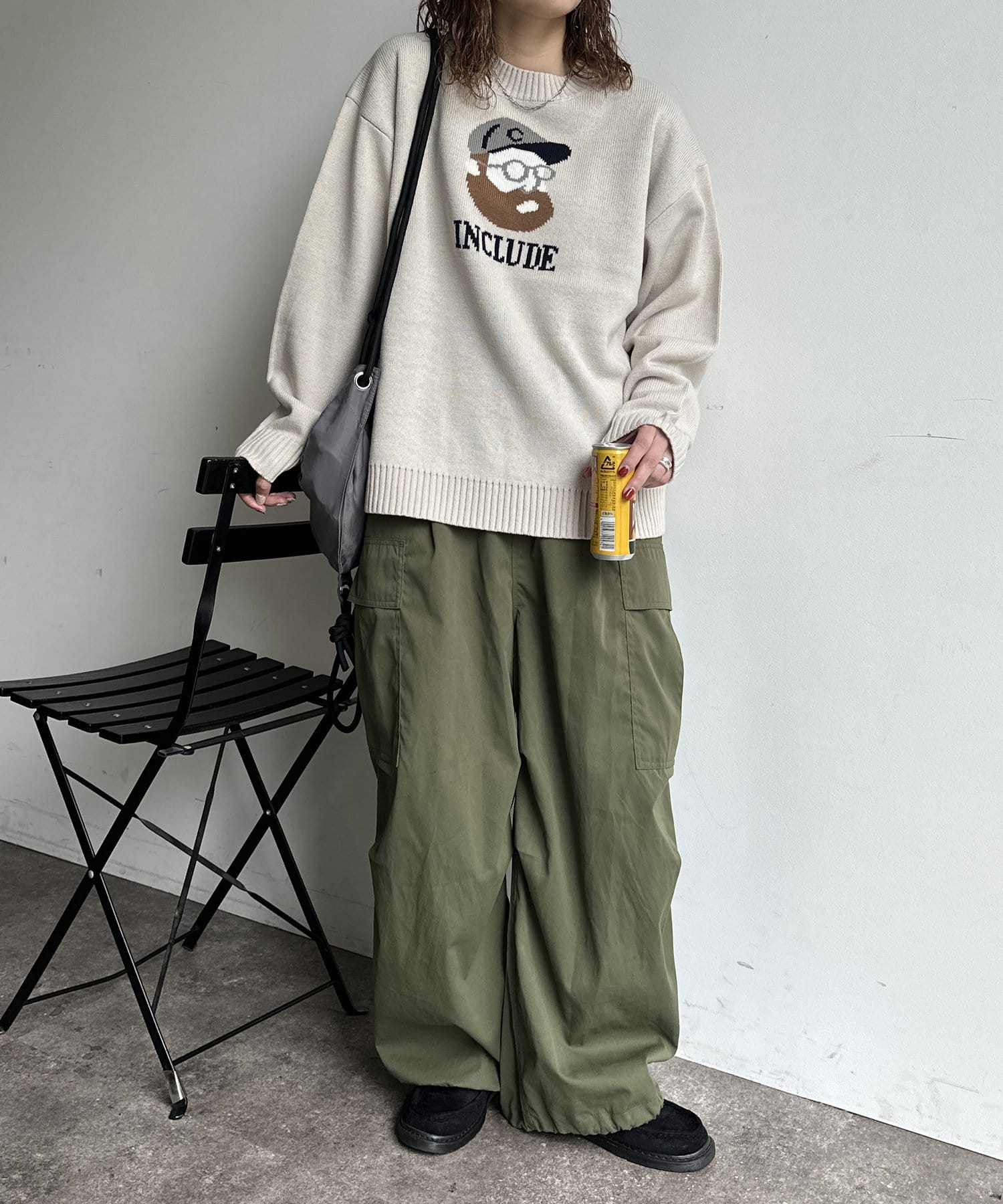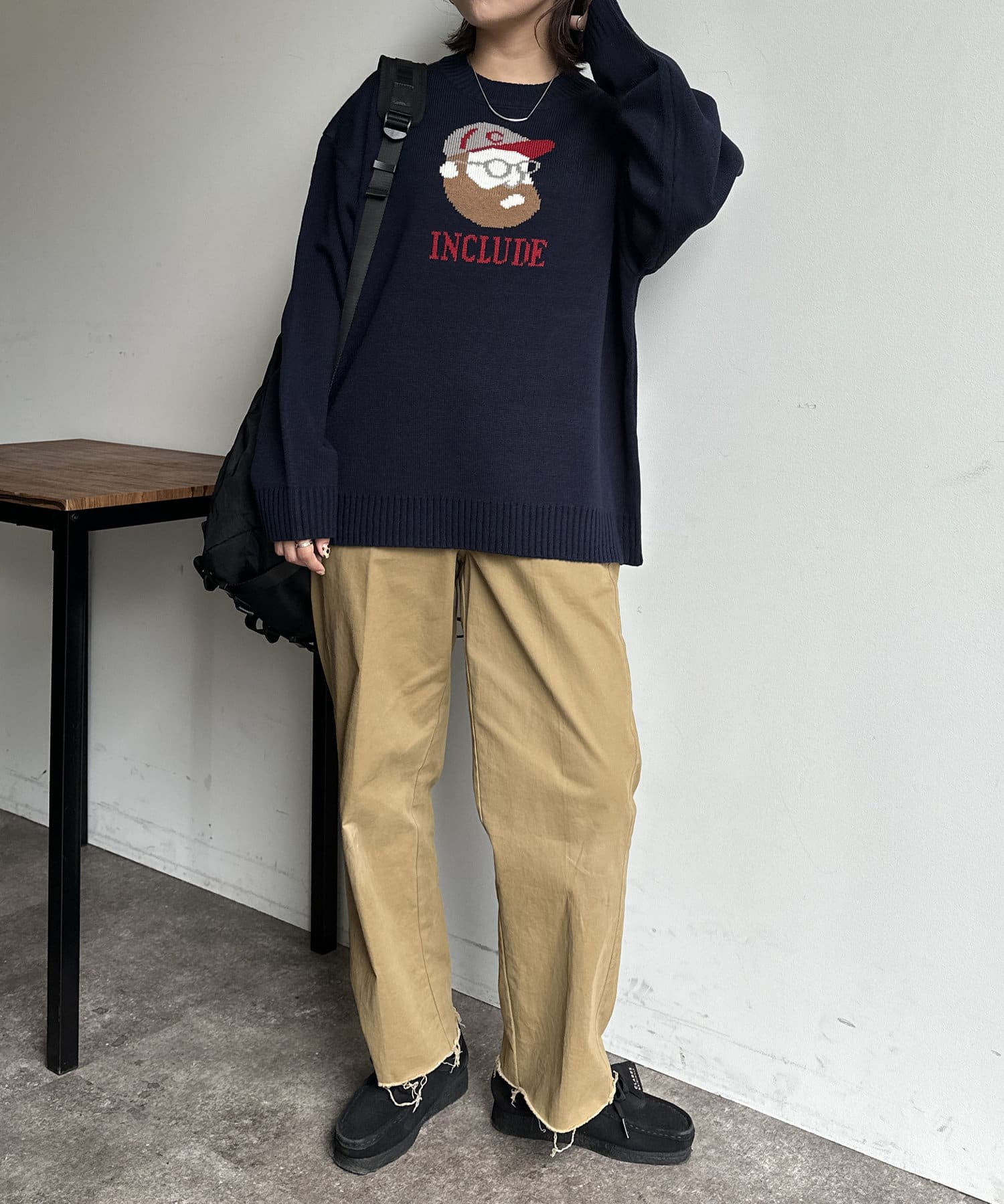 ニット自体はベーシック、ゆったり目の作りになっているので様々なアイテムとの相性抜群です。