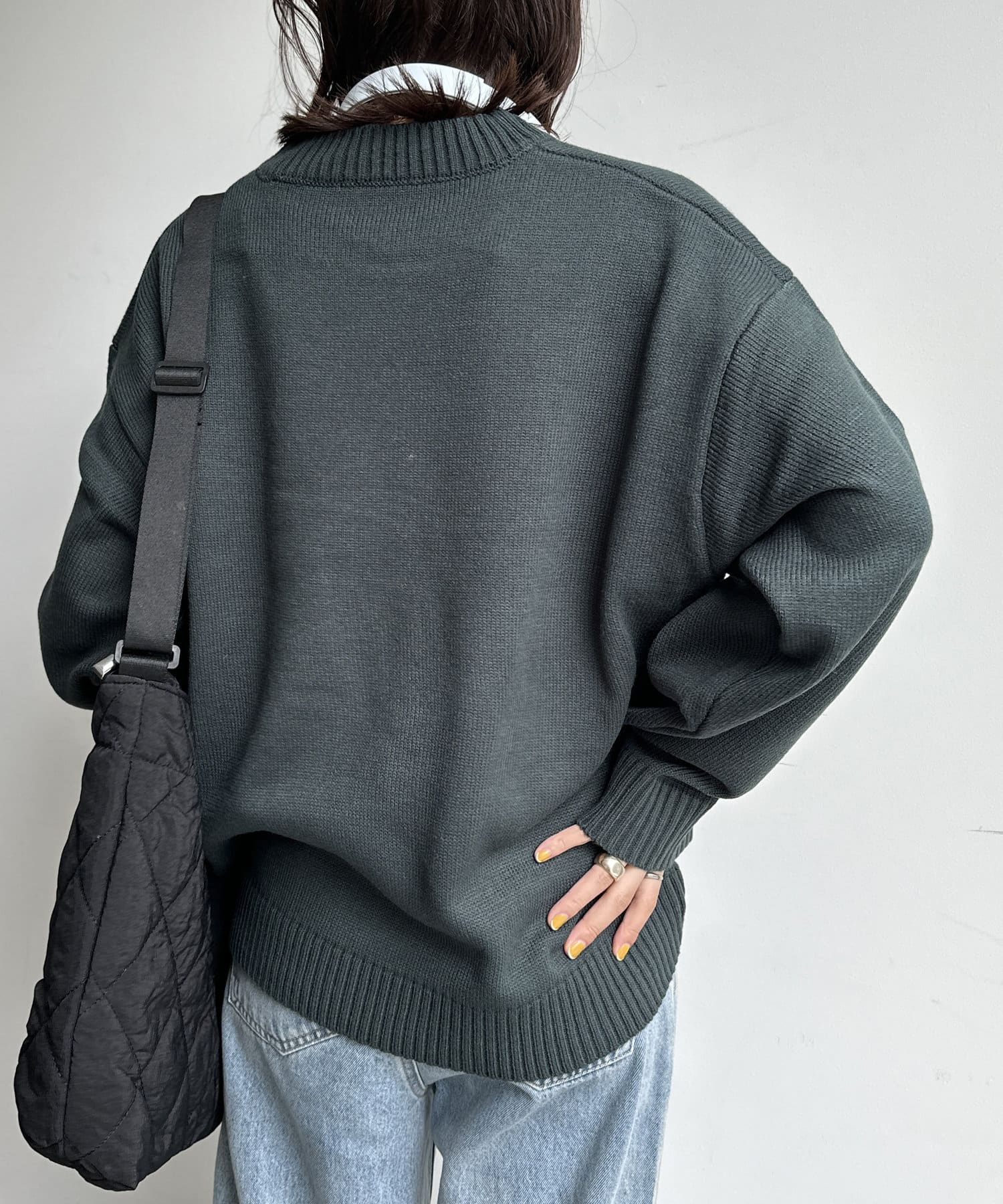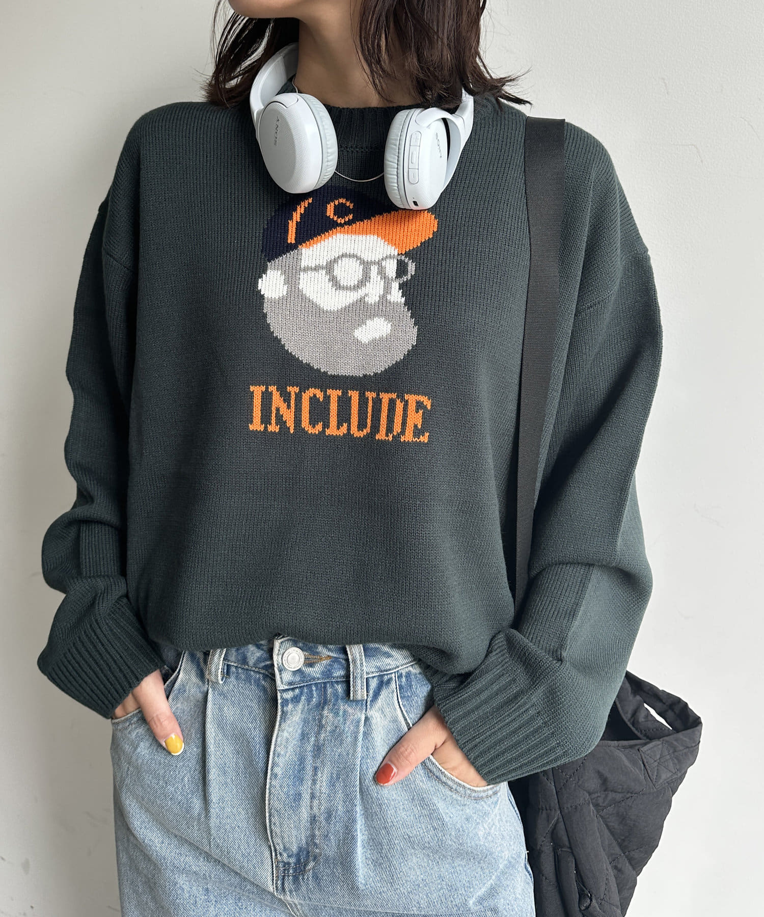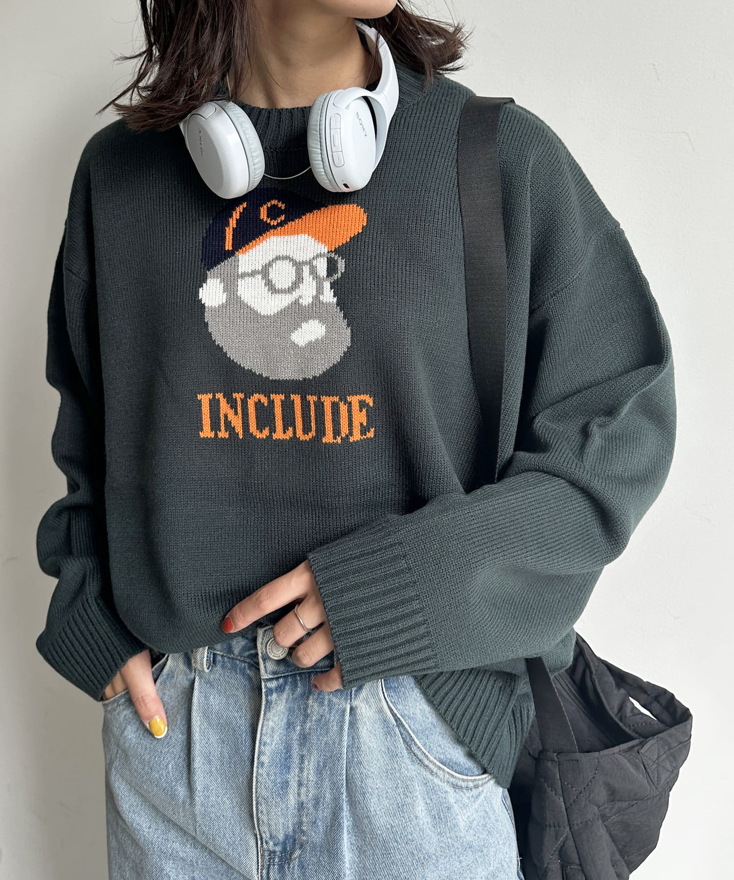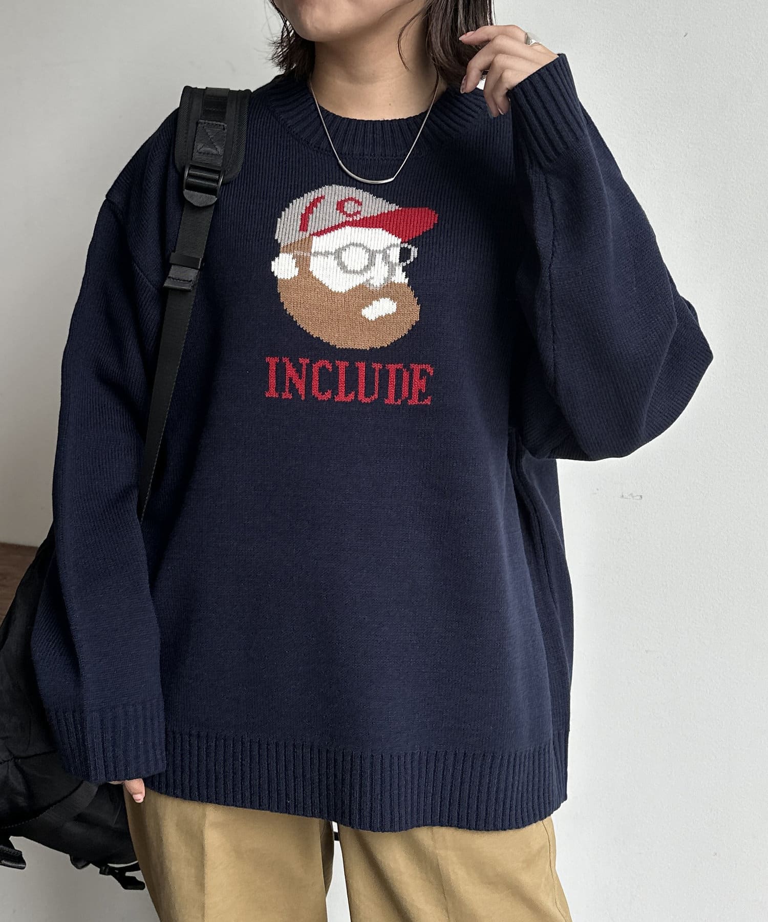 ニット自体はベーシック、ゆったり目の作りになっているので様々なアイテムとの相性抜群です。