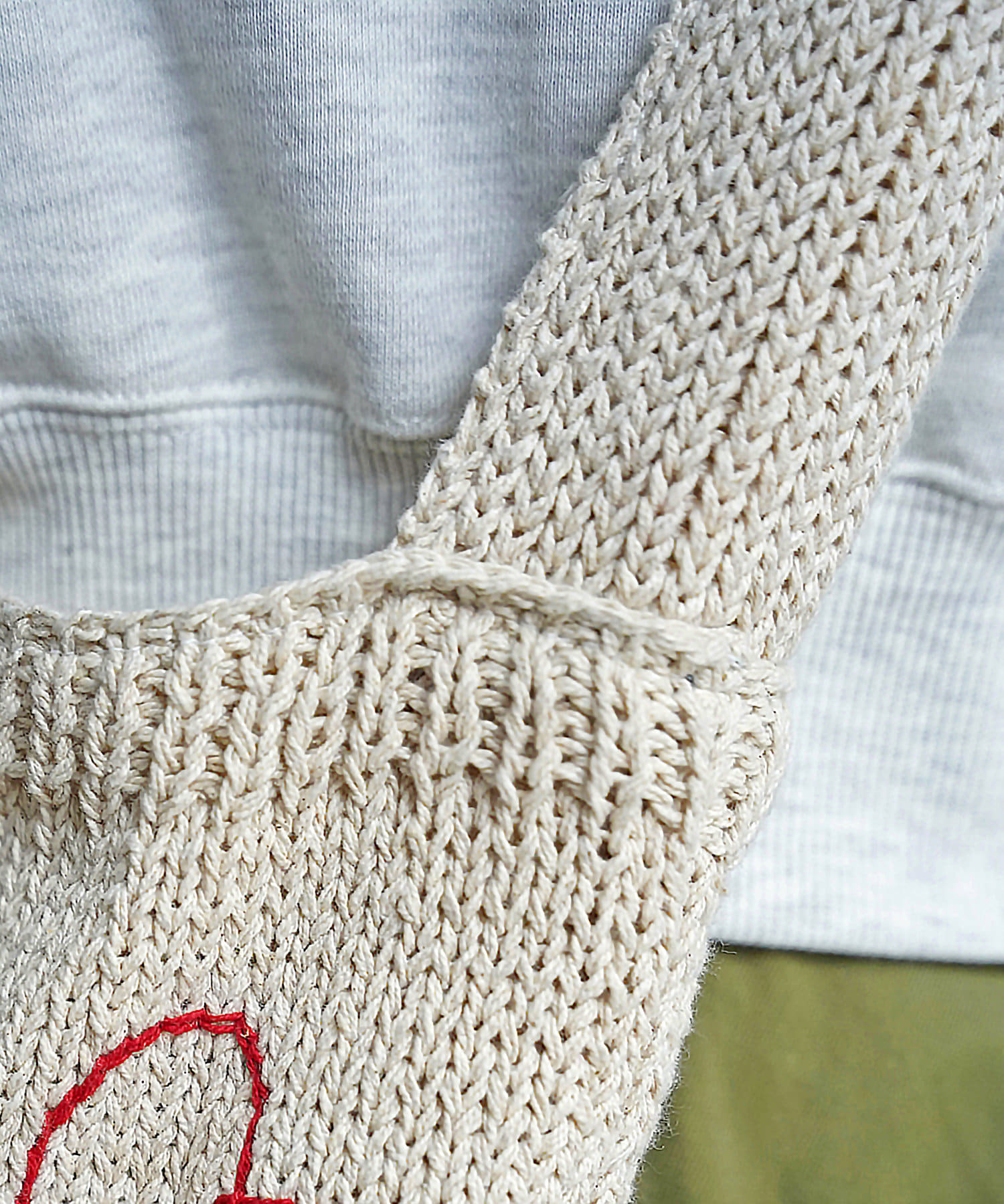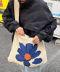 フロントに大きく描かれたフラワー柄がコーディネートのアクセントになる、ニットバッグが登場!