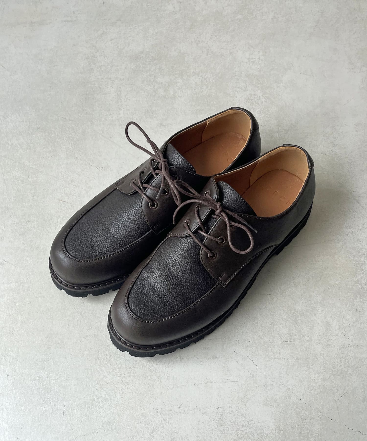 Uチップデザインでカジュアルからキレイめまで幅広くテイストに馴染む一足。