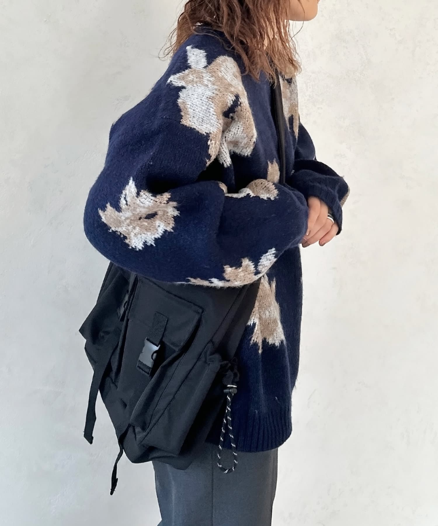 大きめのニットで、おしゃれになります。