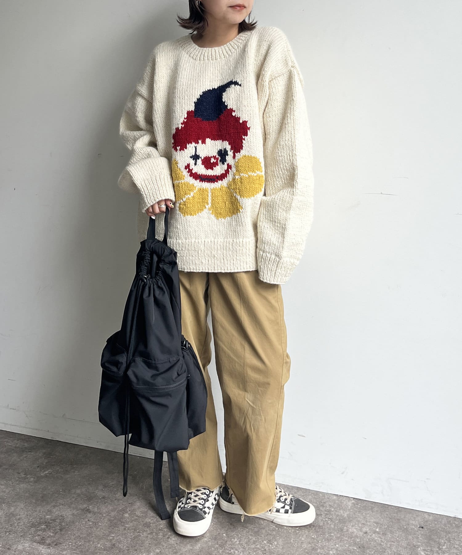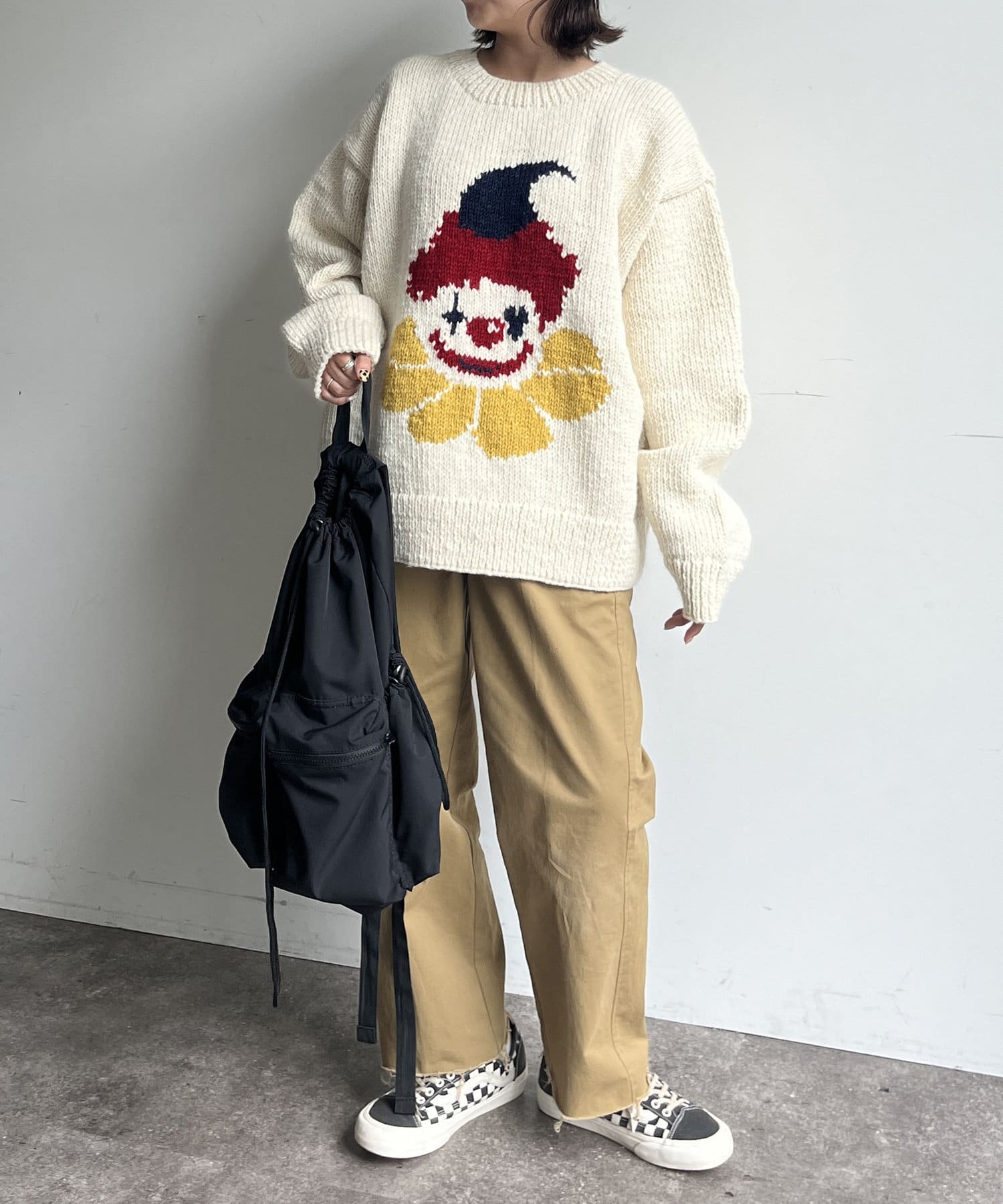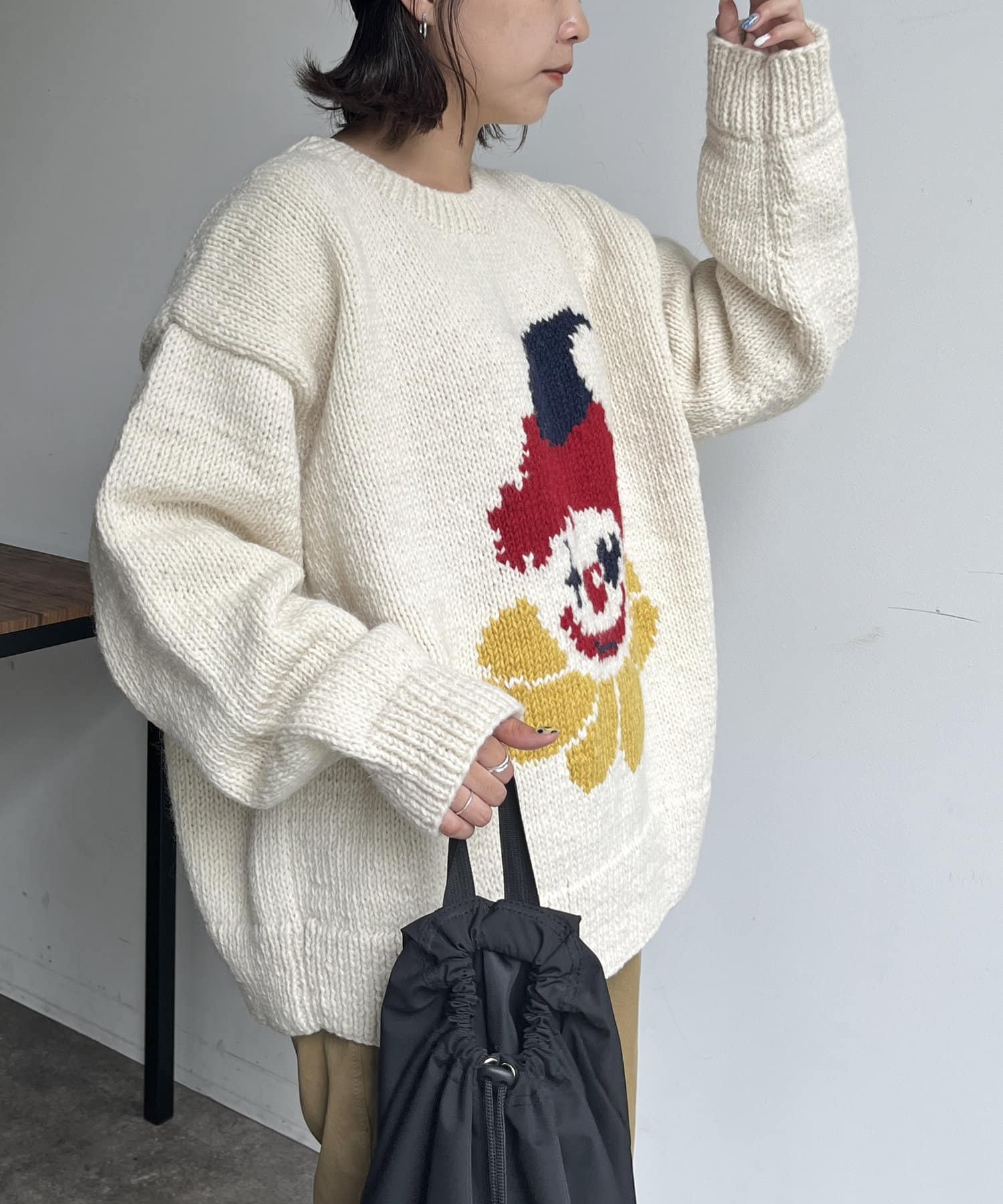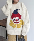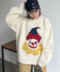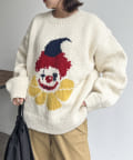 あっという間に視線を釘付けにする可愛いピエロ柄のニットです。